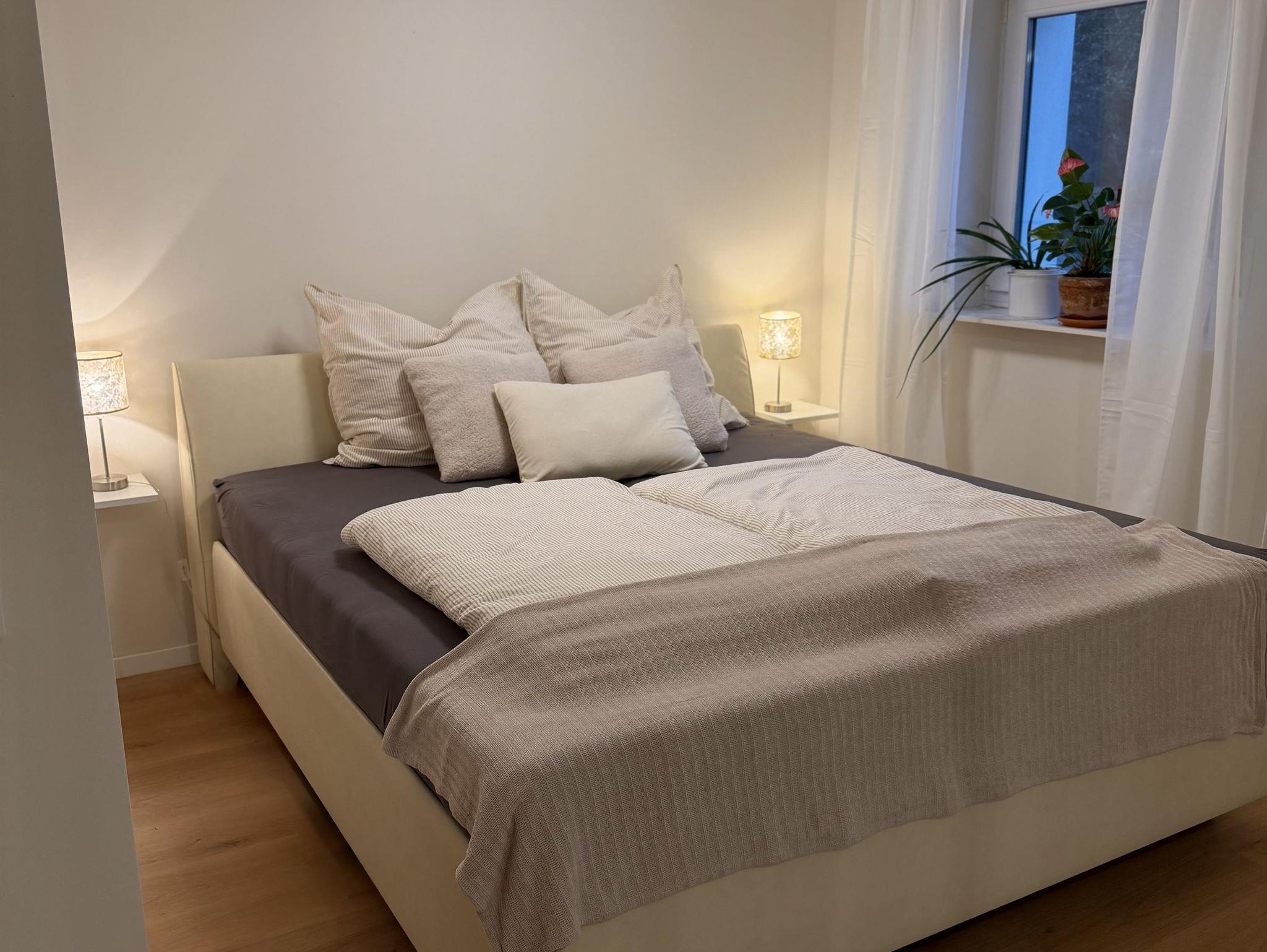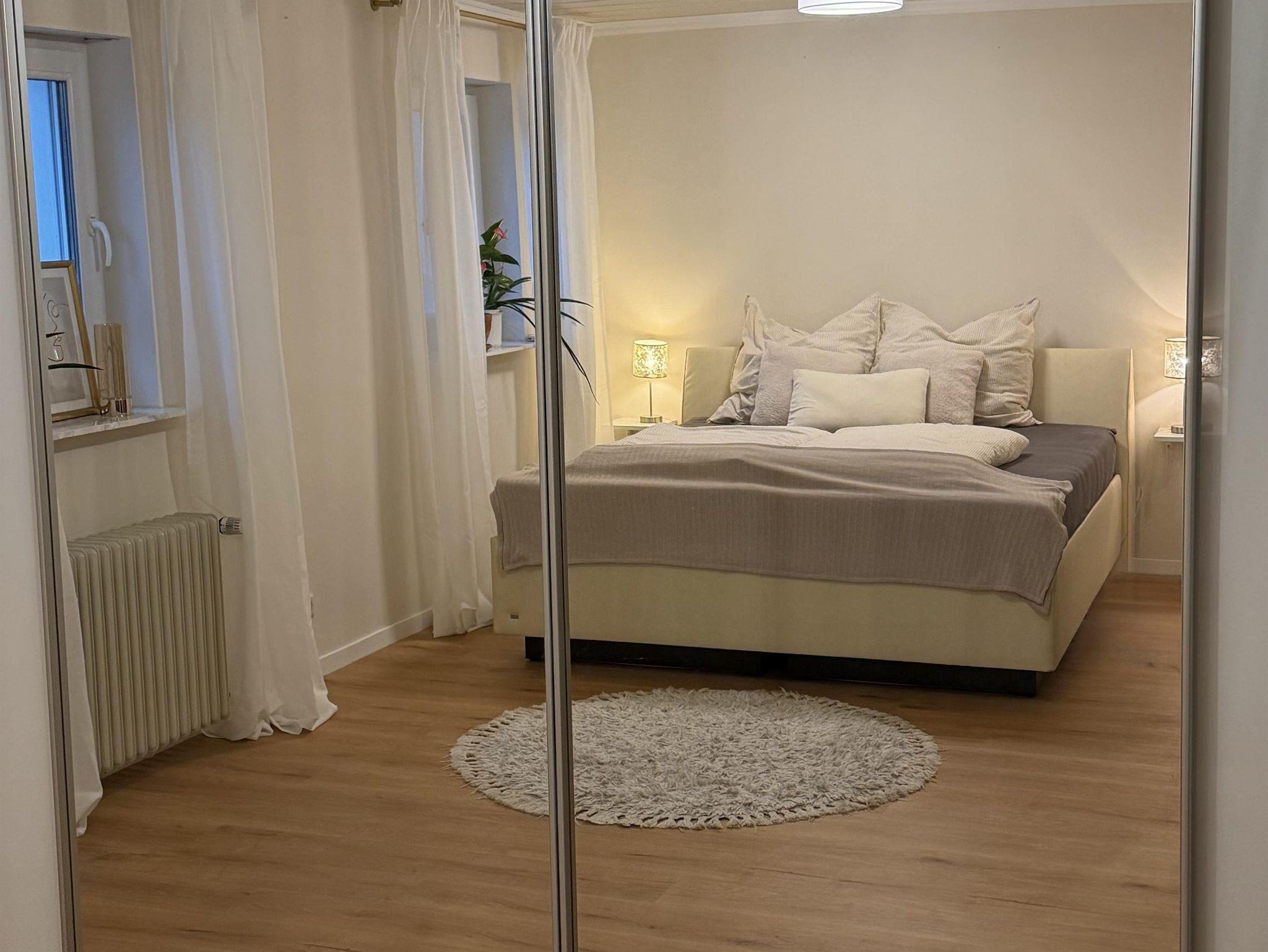 • Schlafzimmer 1: Ein Rückzugsort mit großem Doppelbett und geräumigem Kleiderschrank. Auf Wunsch stellen wir Ihnen hier gerne ein Babybett bereit.