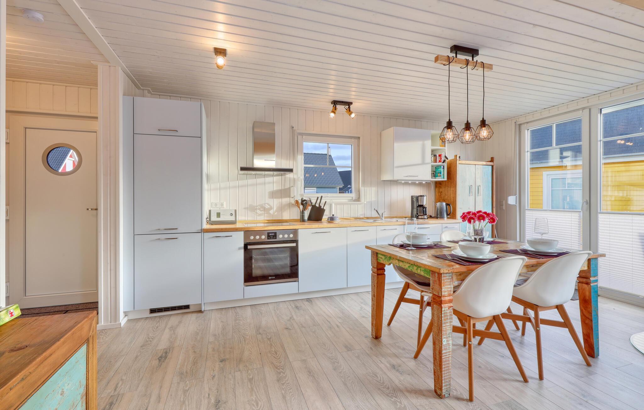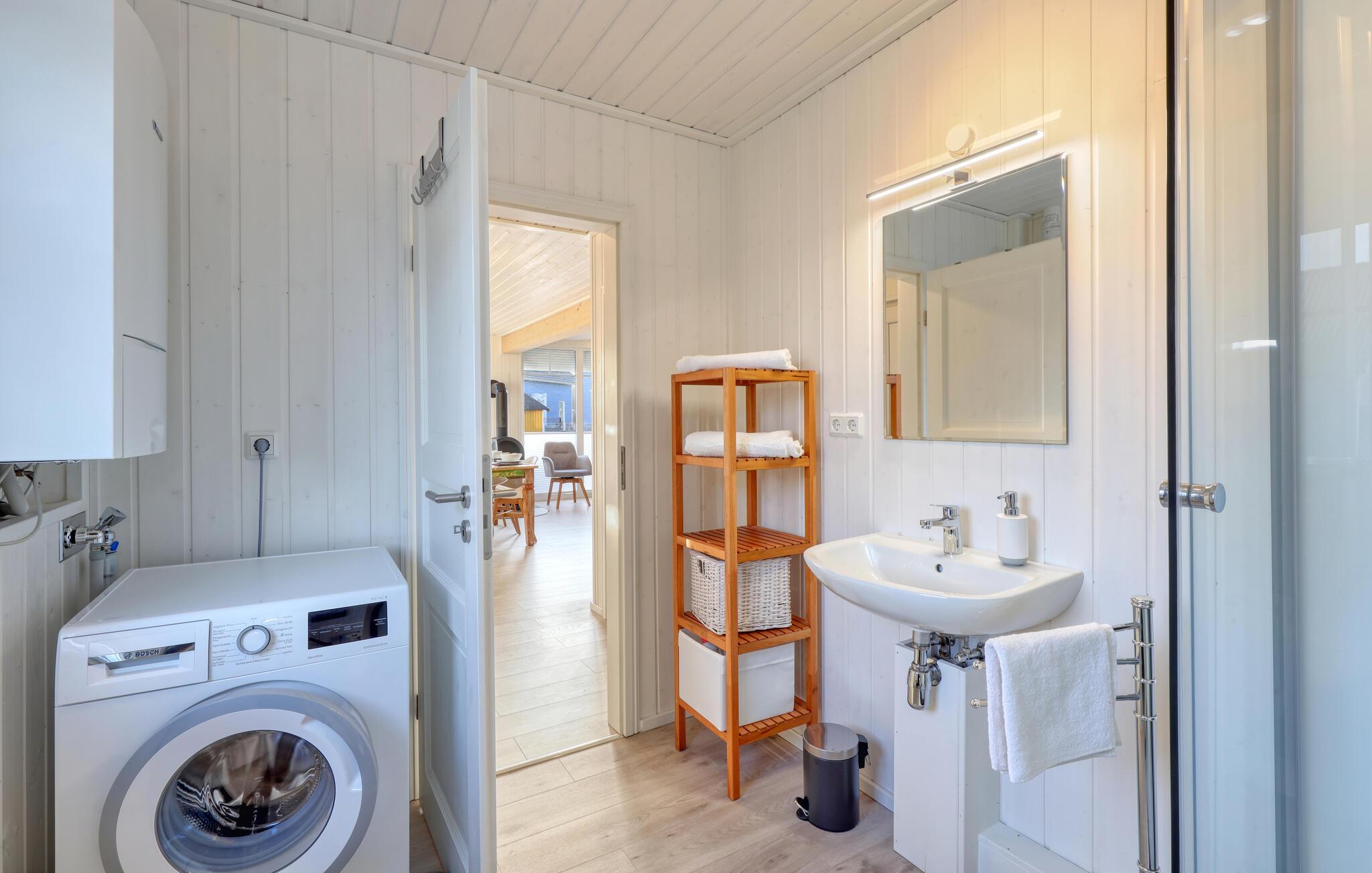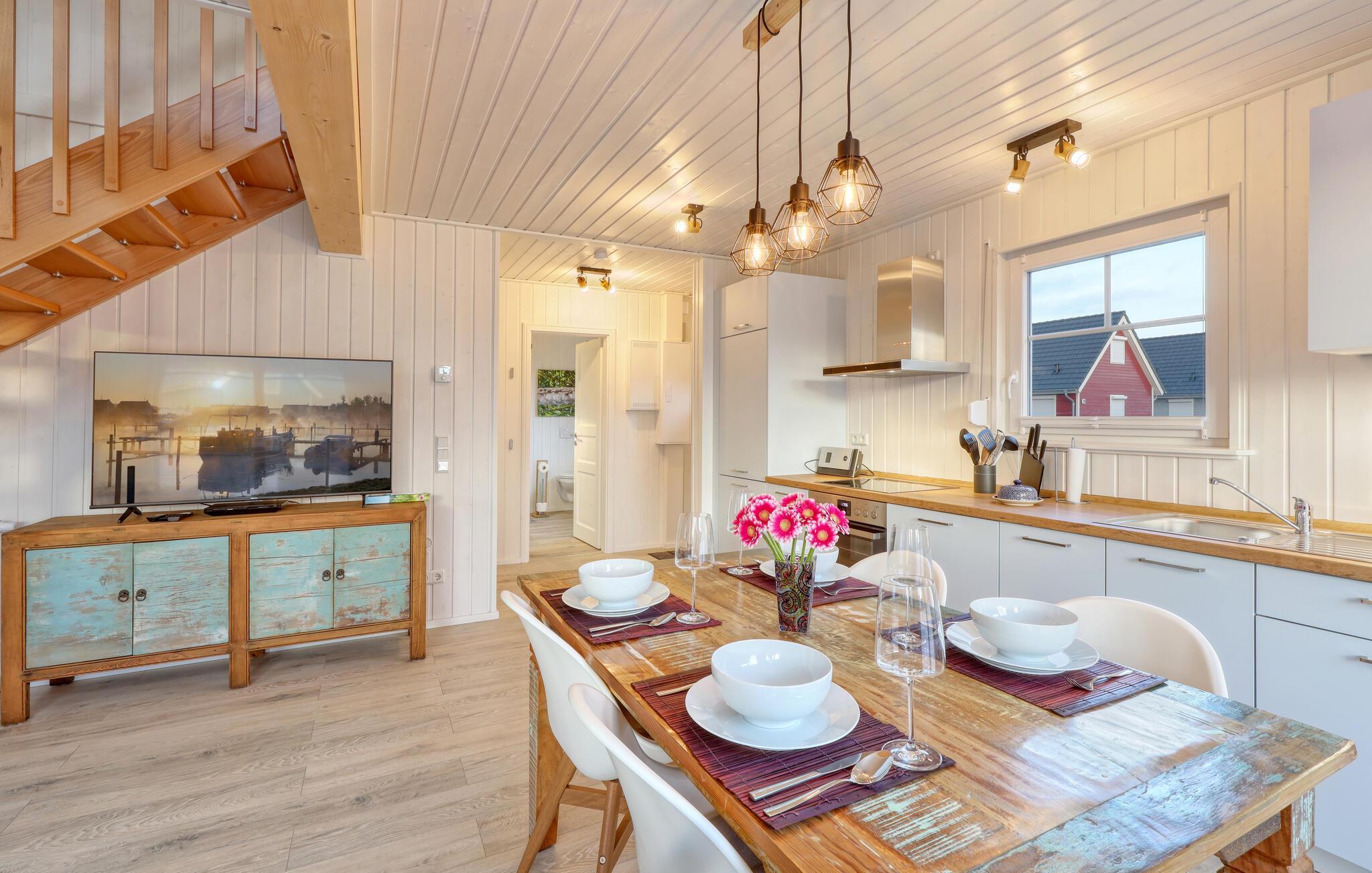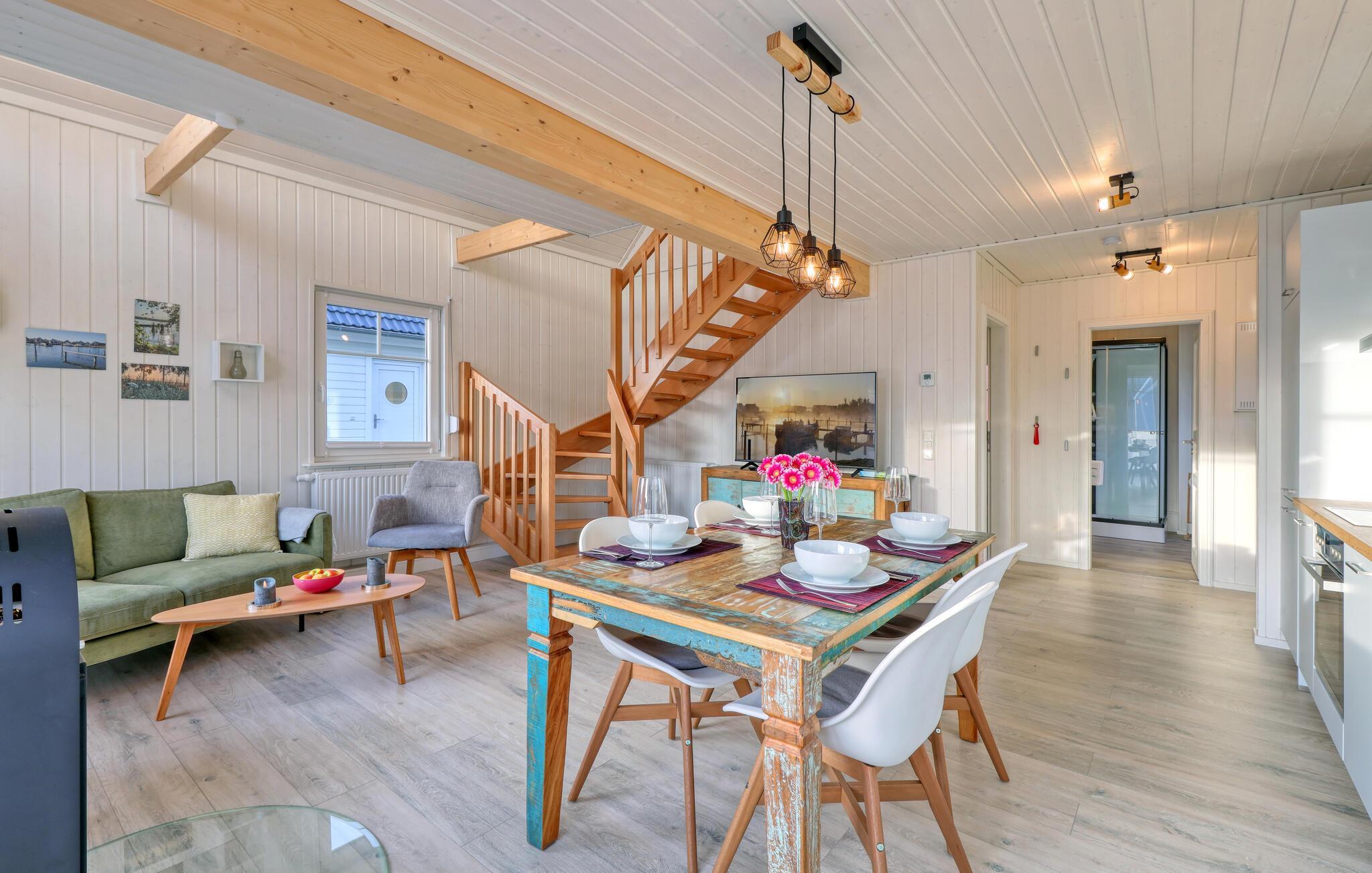 Das gemütlich und geschmackvoll eingerichtete Holzferienhaus liegt in der Nähe zum Wasser und bietet Ihnen eine herrliche Aussicht über die Landschaft. Durch die großen Panoramafenster, die sich vom Boden bis zum Dach erstrecken, fällt der Blick immer wieder und von überall her auf die bezaubernde Landschaft und die Umgebung. Zu jeder Jahreszeit können Sie es sich nach langen Tagen in der Natur im gemütlichen Wohnraum im Erdgeschoss gemütlich machen. Wenn die Temperaturen sinken, gibt es nicht behaglicheres als ein Buch zu lesen oder mit der Familie zu kochen oder Brettspiele zu spielen. Dank der hohen Decken und der offenen Galerie im 1. Stock ist das Haus besonders hell und einladend gestaltet. Hier können Sie das ganze Jahr über die Seele baumeln lassen und einmal wieder richtig durchatmen.
