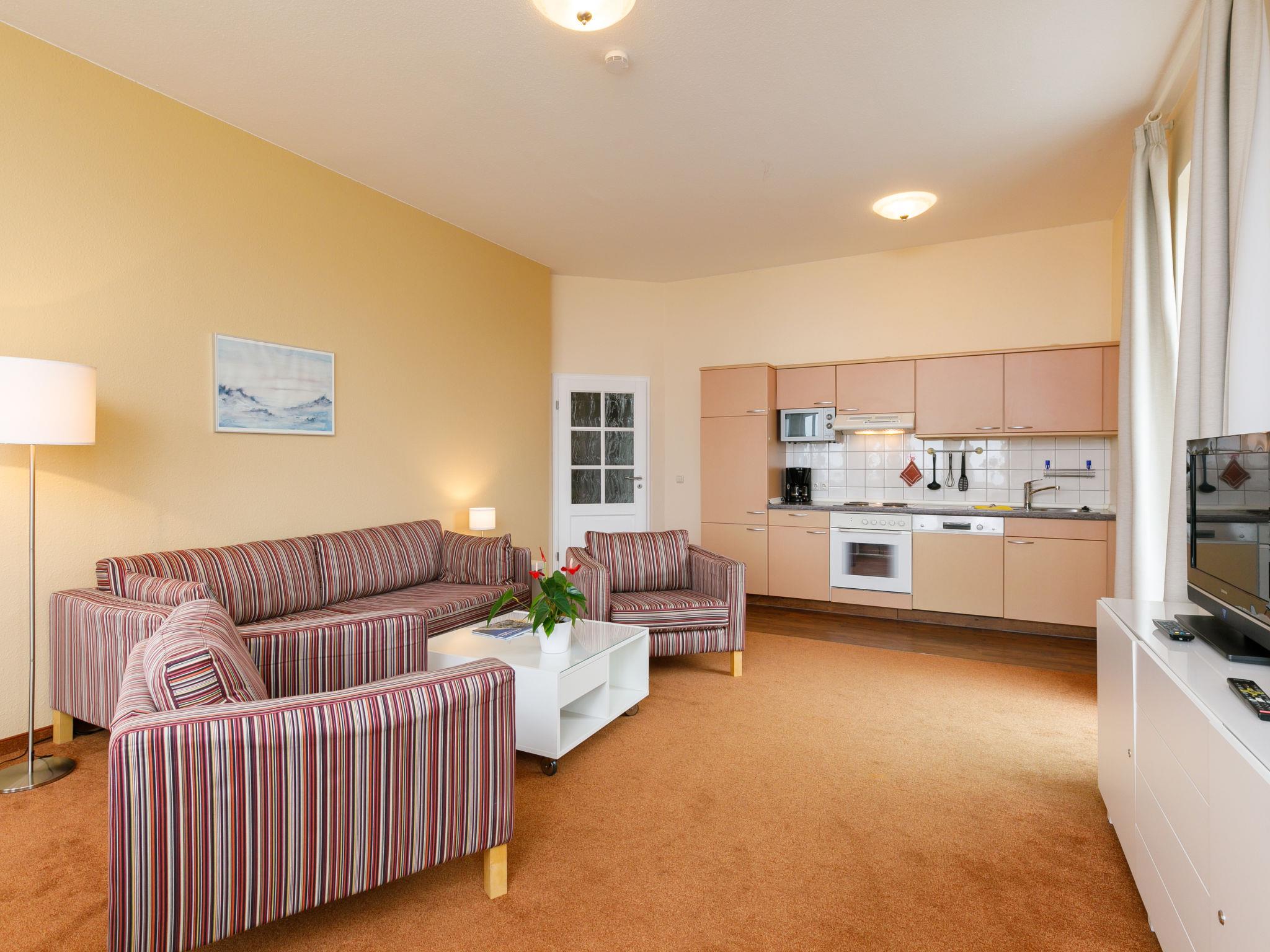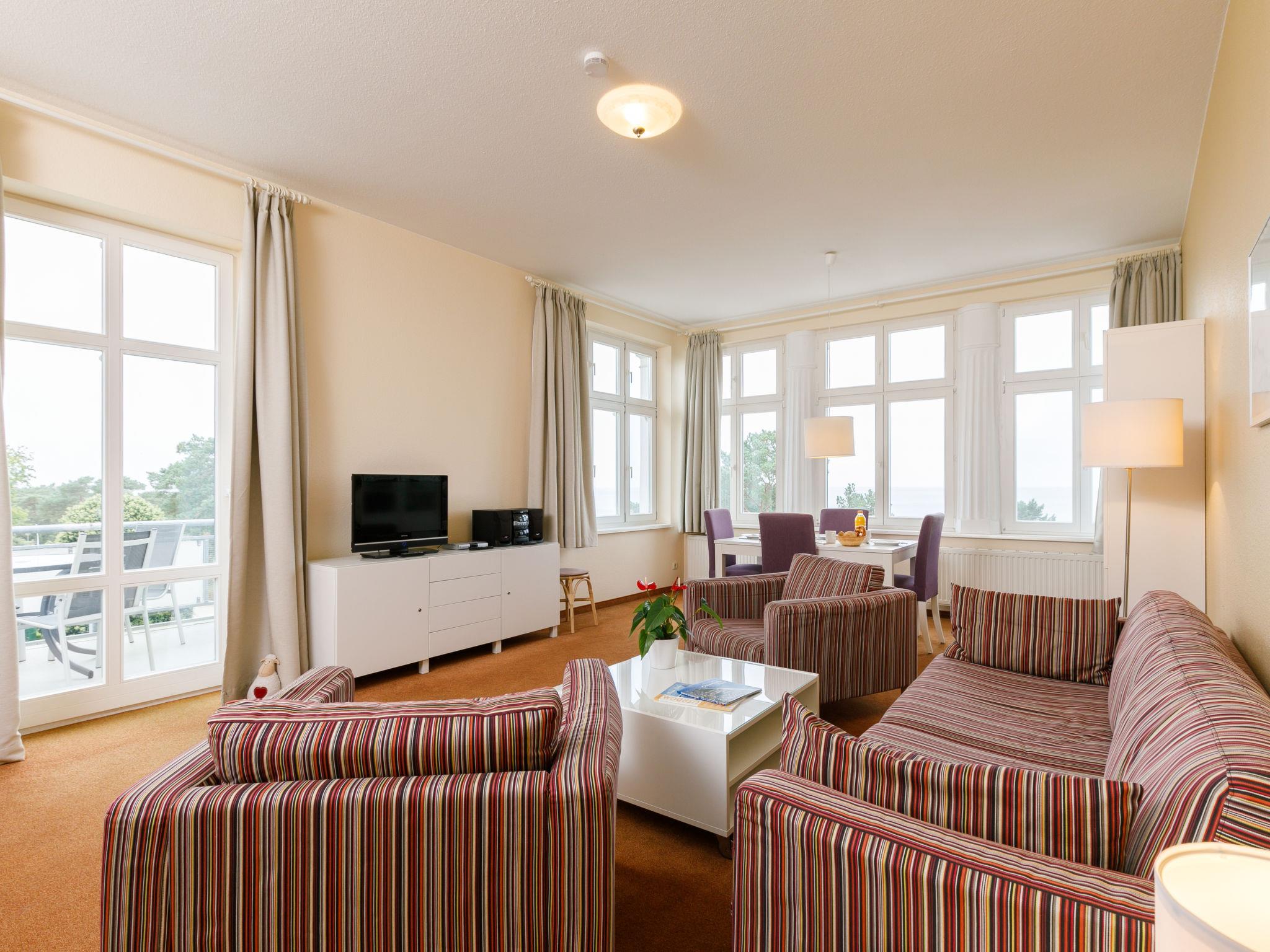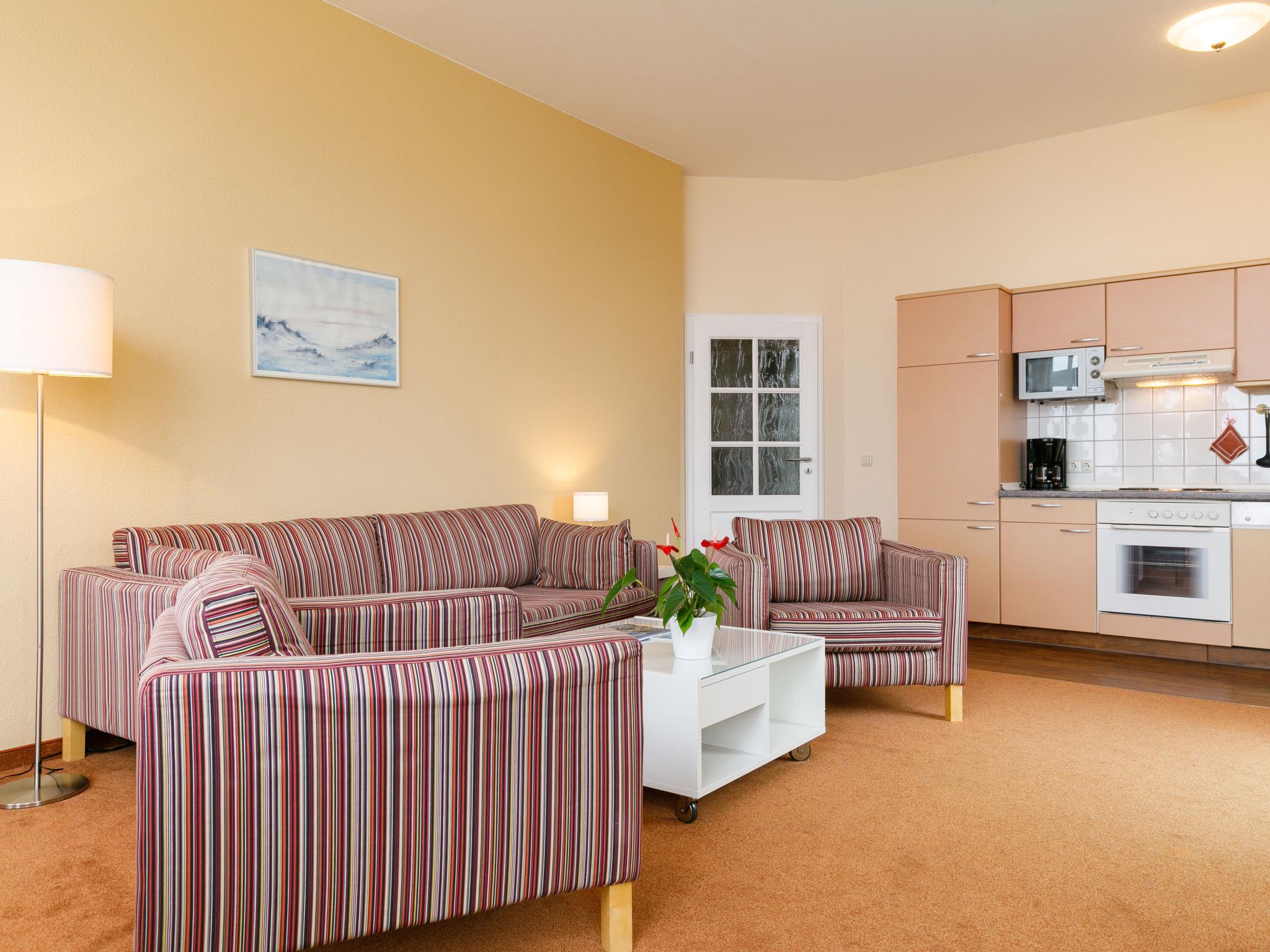 "App.13 Zinnowitzer Hof", 2-Zimmer-Wohnung 63 m2 im 3. Stock. Schön und gemütlich eingerichtet: Wohn-/Esszimmer mit 1 Diwanbett und Kabel-TV (Flachbildschirm). Ausgang zum Balkon. 1 Zimmer mit 1 Doppelbett. Kochnische (4 Kochplatten, Backofen, Geschirrspüler, Toaster, Wasserkocher, Mikrowelle, elektrische Kaffeemaschine). Bad/WC. Balkon. Balkonmöbel. Schöne Sicht auf das Meer. Zur Verfügung: Kinderhochstuhl, Babybett, Haartrockner. Parkplatz (extra, 1 Auto). Bitte beachten: Nichtraucher-Unterkunft. Rauchmelder.