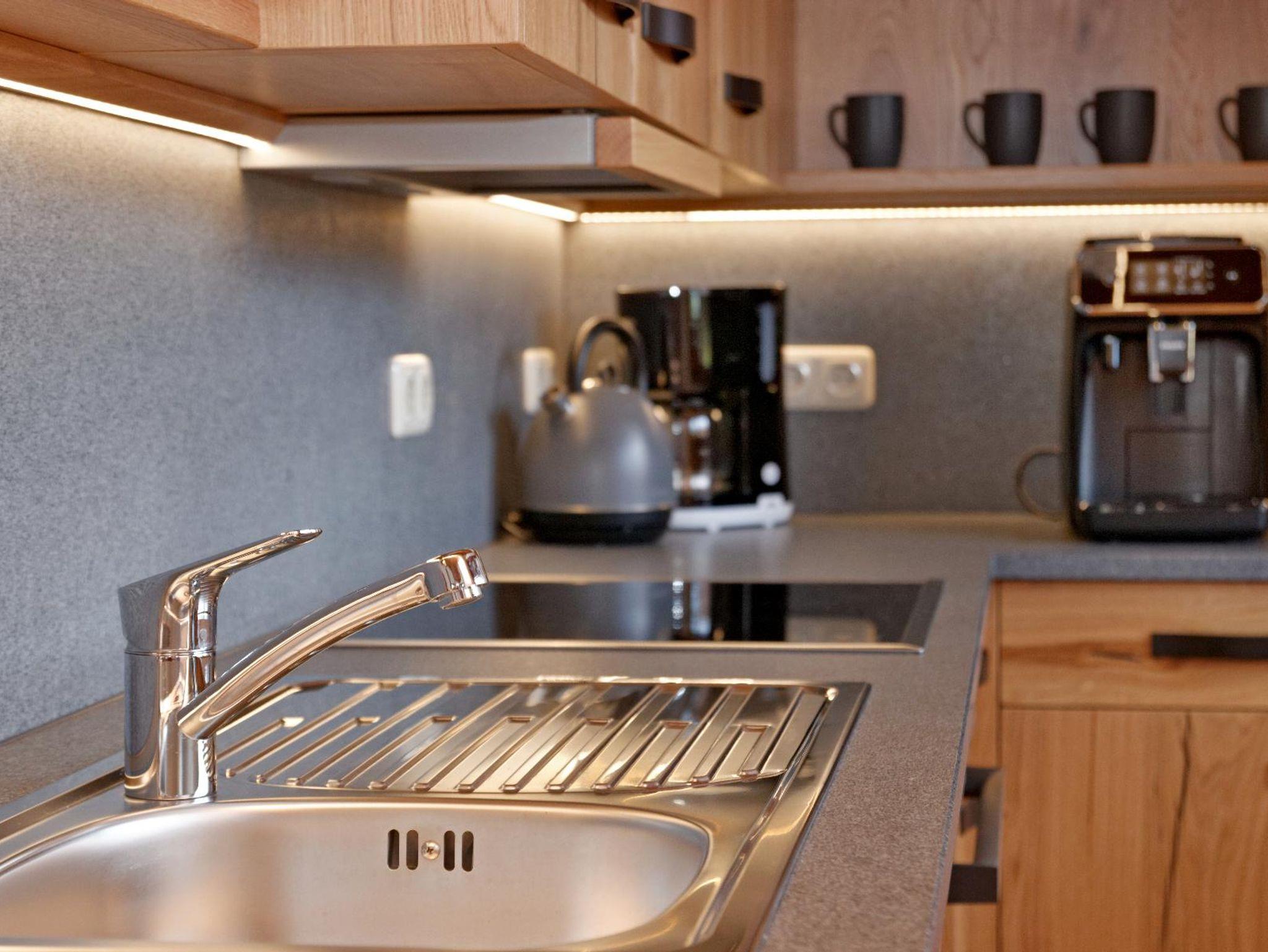 Ruhig und sonnig gelegen mit herrlichen Blick in die Bayerwald-Berge. Wir haben folgendes für Sie untergebracht. Alles vom Schreiner aus massiver Eiche und Holzfußboden. Zwei Schlafzimmer mit Doppelbett und Safe. Für jedes Schlafzimmer ein Bad mit Dusche, WC, Handtücher, Badetücher, Bademäntel und Fön. Ein Babyreisebett mit bezogenen Bettzeug, einen Hochstuhl oder einen Rausfallschutz stellen wir Ihnen auf Wunsch gerne zur Verfügung. Einen großen Wohn- und Essbereich mit einer kuscheligen Couch und einer vollausgestatteten Küche mit Kaffeevollautomat. Kleiner Kaffee- und Teeauswahl. Bettwäsche, Badetücher, Handtücher, Saunatücher Geschirrtücher und Bademäntel sind inklusive. Große möblierte Terrasse mit Weber-Elektrogrill, und mit der eigenen Sauna und dem eigenen, beheizten Whirlpool, hat man einen Wellnessbereich nur für sich, ganz privat. Sie möchten gut gestärkt in den Tag starten? Ihr Frühstückskorb steht ab 8.00 Uhr bereit. Abstellmöglichkeit für Fahrräder und Ski. Bitte beachten Sie das Onlinebuchungen Gebühren enthalten.
