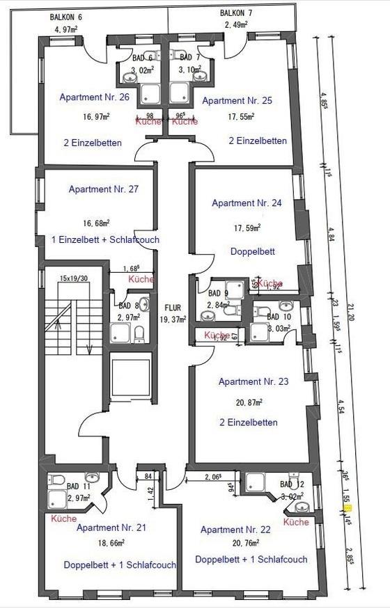 6 Apartments mit je eigenem Zugang; zwei Einzelbetten oder einem Doppelbett, jedes Apartment ist voll möbliert mit Bad, Miniküche (Kühlschrank, Doppelherd, Spüle, Besteck, Teller, Tassen, Wasserkoscher...) und TV.Kontaktloser Zugang (ohne Personen) über zwei Codes: Sie erhalten je ein Code für den Hauseingang und einen Code für den Zugang zum Apartment.Natürlich können Sie auch weniger Apartments buchen, fragen Sie uns einfach an.Sie können auch noch mehr Apartments anmieten... bis zu 42 PersonenZwingenberg hohe Lebensqualität, starke Betriebe und ideale Voraussetzungen spricht für unternehmerisches Wachstum in der Wirtschaftsregion Bergstraße: Die älteste südhessische Bergstraßen-Kommune profitiert von ihrer zentralen Lage inmitten der Metropolregionen Frankfurt/Rhein-Main und Rhein-Neckar. Von Zwingenberg aus gelangt man schnell an sein Ziel! An die Autobahn A5 besteht eine direkte Anbindung, aber auch die A67 und die Bundesstraßen B3, B47 und B460 sind schnell erreichbar. Besonders die Nähe zum Flughafen Frankfurt ist ein unschlagbarer Standortvorteil.Auch leben lässt es sich hier ganz ausgezeichnet: Die historische Altstadt mit zahlreichen Fachwerkhäusern und malerischen Ausblicken macht die Zwingenberg zu einem sehr beliebten Wohnstandort.Der Standort Zwingenberg ist von folgenden Orten entfernt:vom Hauptbahnhof Darmstadt nur 18 Min. (22 km)vom Frankfurter Flughafen ca. 29 Min. (44 km)von Heidelberg knappe 32 Min; (42 km) vom Mannheim 39 km (41 km)