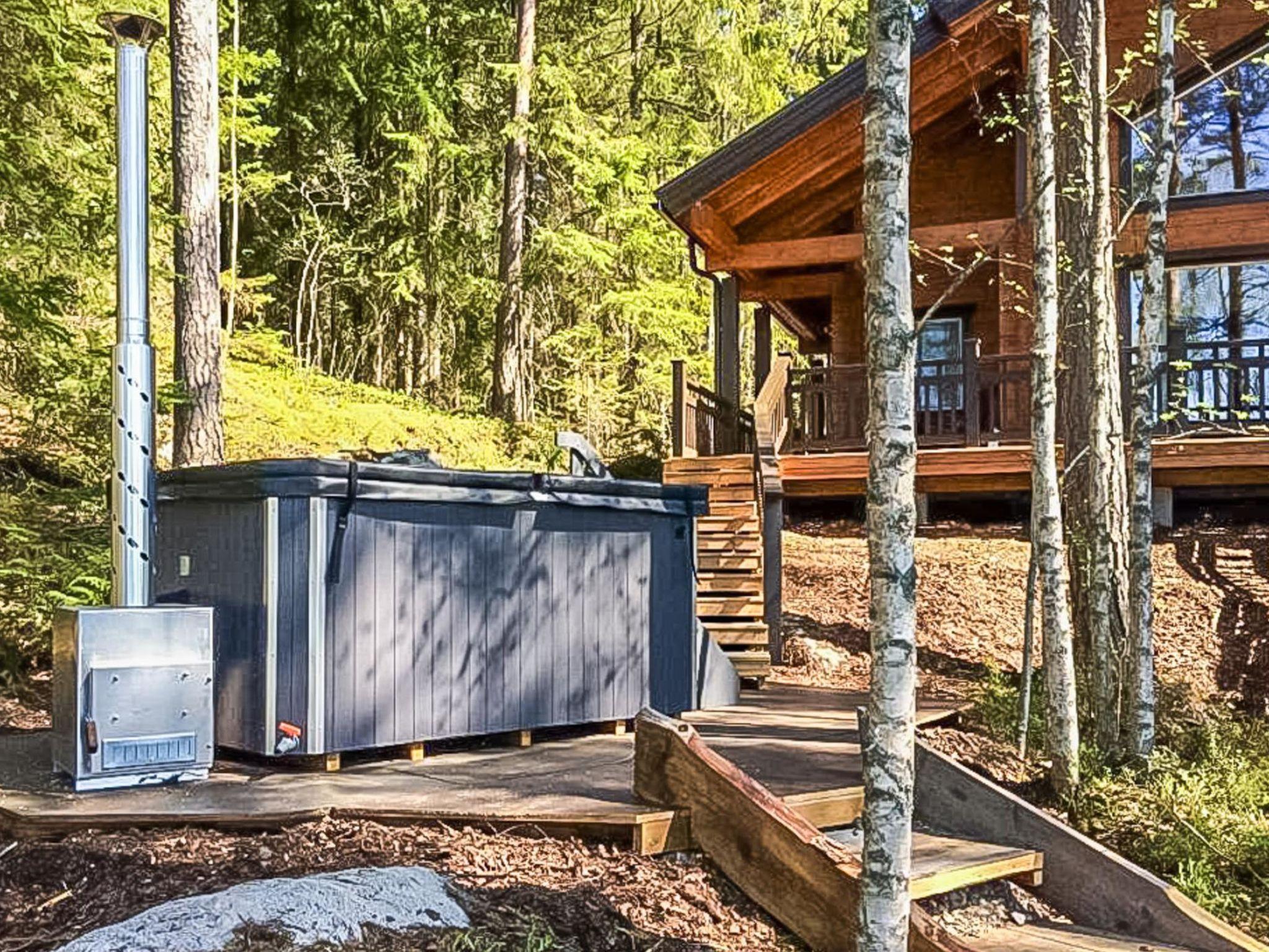 2.5 km südlich von Ähtäri, See Ouluvesi 20 m (Länge 7.5 km, Breite ca. 800 m), flacher und harter Moränenboden, eigenes Boot. Lamellenblockhaus, Baujahr 2018, Küche, Wohnzimmer, 2 Schlafzimmer mit je 2 Betten. Babybett in einem Schlafzimmer. Im Obergeschoss Schlafzimmer mit 4 Betten. Waschraum (2 Duschen), Sauna (elektrisch), Hauswirtschaftsraum, Flur und offene Veranden. Toilette im Erd- und Obergeschoss. Die Berghütte verfügt über eine mechanische Belüftung und Fussbodenheizung im Erdgeschoss. Gasbeheizter Grill auf geräumiger Veranda. Tipi mit Brennholz und elektrischem Licht. Die Nutzung des Tipis ist zusammen mit der Hausbuchung kostenlos, wenn Sie neues Brennholz aus dem Schuppen bringen und es nach dem Gebrauch reinigen. Reinigungsgebühr für Tipi beträgt € 70.-. Die Villa befindet sich auf einer kleinen Halbinsel mit Pinien. Gehwege zum Strand, zum Whirlpool, zur Anlegestelle und zur Liegewiese. Zwischen der Villa und dem Strand gibt es wunderschöne Pinien in einer natürlichen Umgebung. Die felsige Küste ist ziemlich lang und eignet sich zum Angeln. Whirlpool (8 Personen), gegen Aufpreis (€ 100.-/erster Tag, € 50.-/nächster Tag). Der Eigentümer vermietet z.B. Rauchsauna (bereits beheizt), Fischtrollingboot mit Angelführer, Kanus, Aussenbordmotoren und Motorbooten. Auf der Ferienfarm des Eigentümers können im Sommer Mahlzeiten eingenommen werden. Die Fahrt mit dem Boot zum Bauernhof dauert 1.5 km. In der Nähe befinden sich gute Beeren- und Pilzsammelgebiete. Ähtäri Zoo und Wellnesshotel Mesikämmen 10 km, Moksunniemen Golf 10 km, Vuorenmaa Skigebiet 60 km. Ähtäri Stadtleistungen und Sehenswürdigkeiten 2.5 km. Bezogene Betten mit Bettwäsche, gegen Aufpreis von € 20.-/Person.