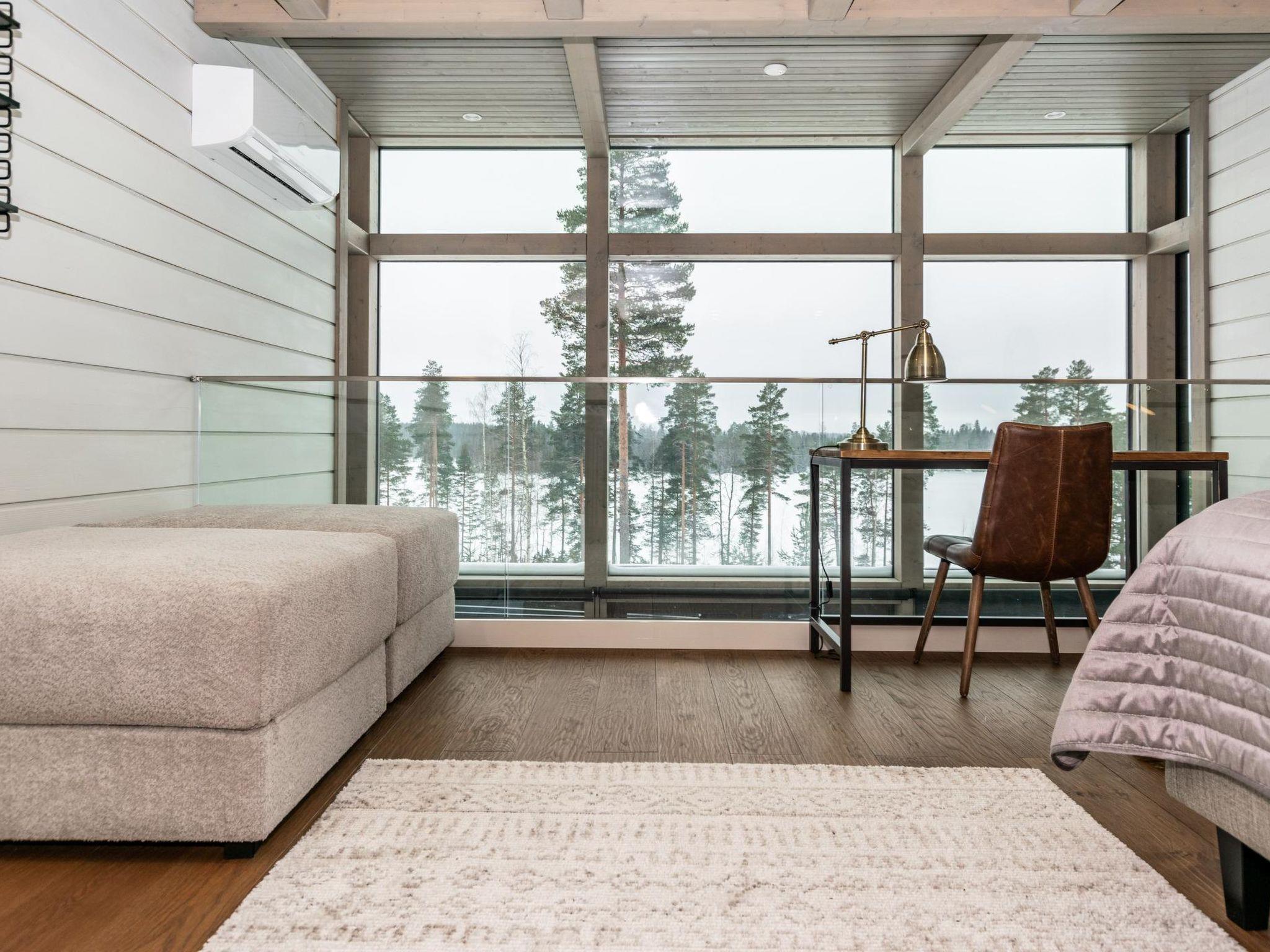 8 km of Ähtäri, Lake Hankavesi 100 m, log/stone-built apartment (built in 2017), own kitchen, sauna (electric sauna stove), bathroom with a WC, open loft with a great view out. In the loft, a desk, a double bed and two extra beds (80x200 cm/bed), a sofa bed for two in the living room. A private furnished terrace.