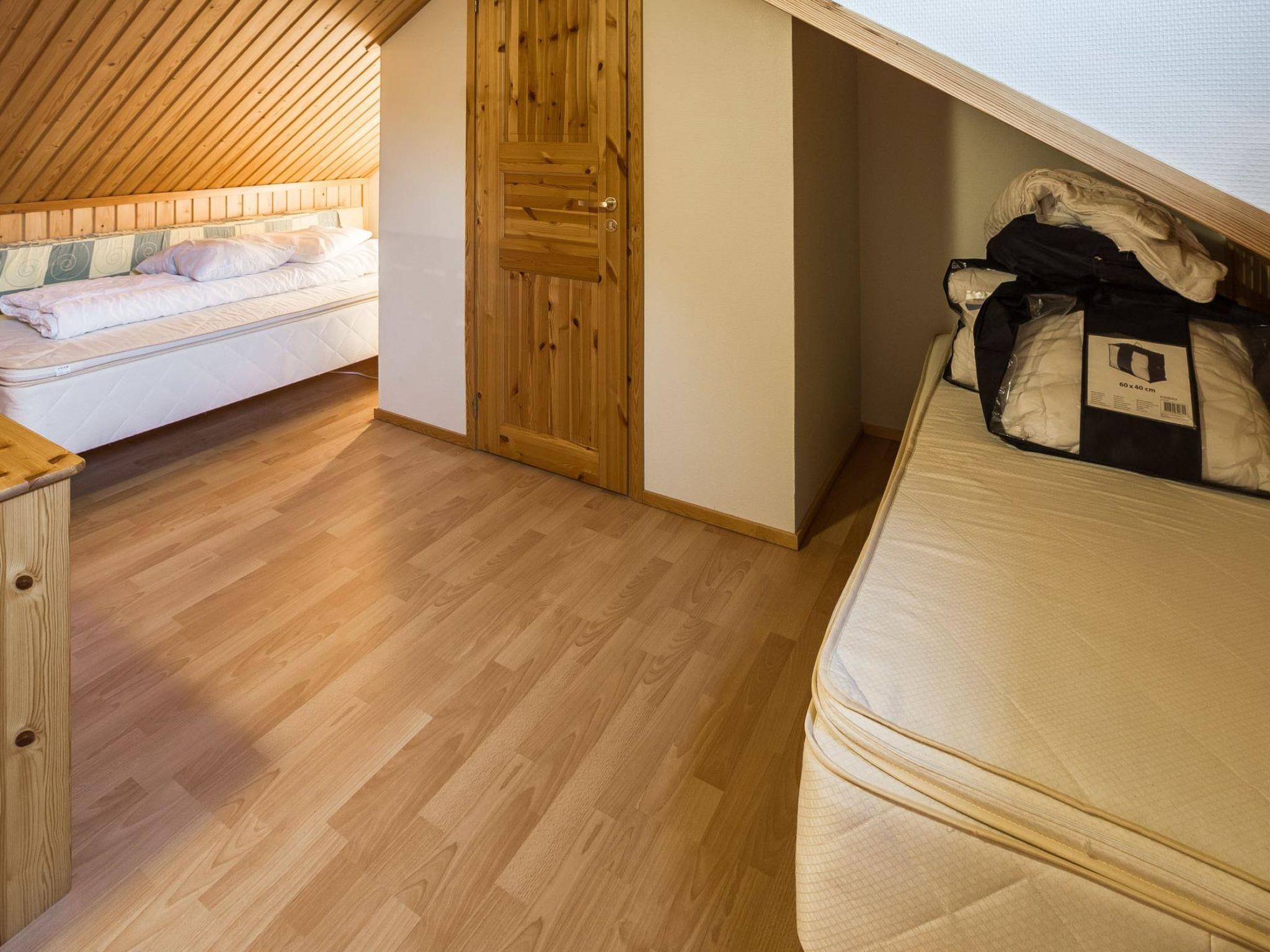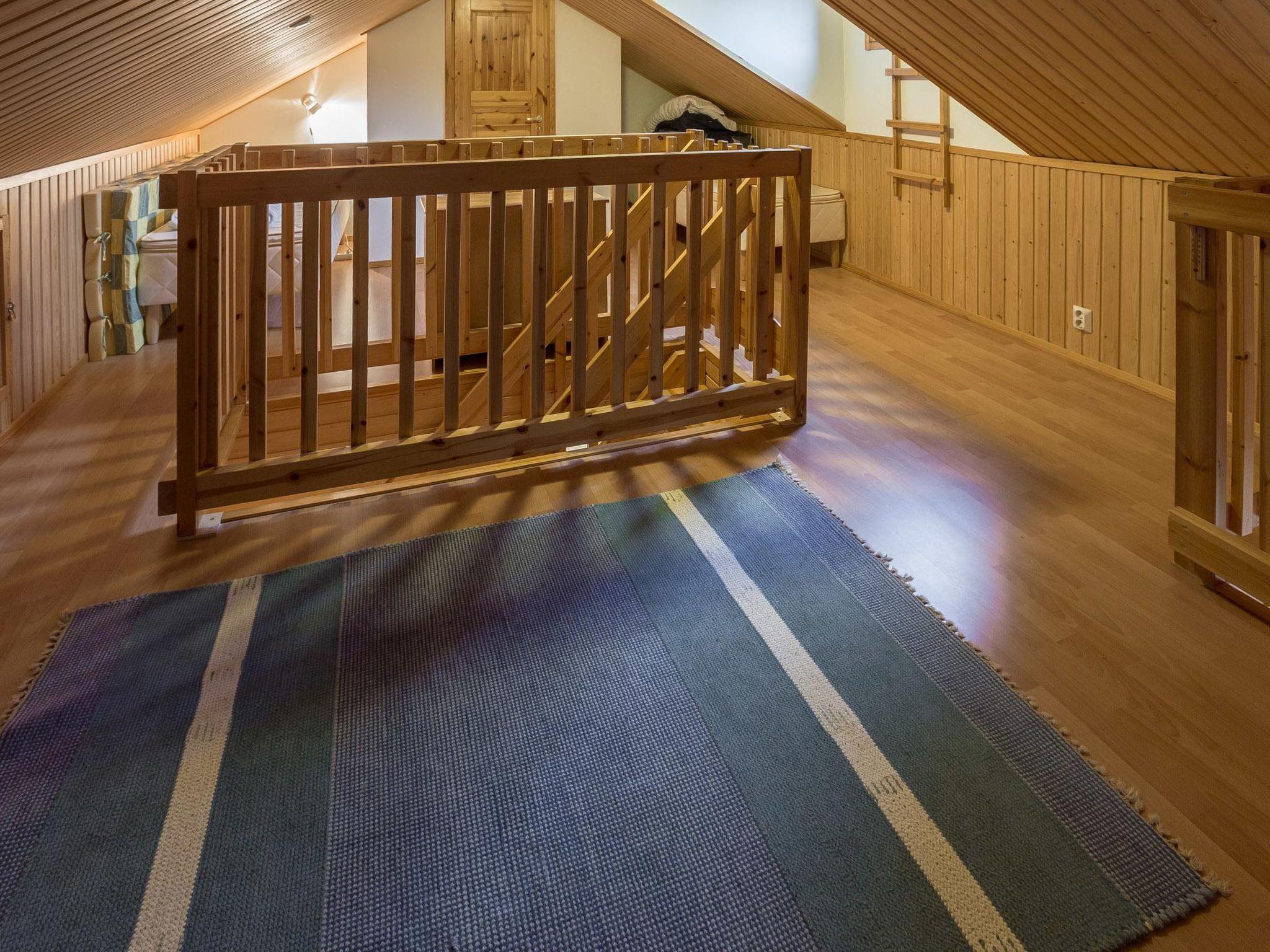 Kitchen-living room, downstairs two bedrooms both with two beds, sofa bed for two in the living room, loft: 4 beds and two extra mattresses, sauna (electric), washroom, 2 x toilet.