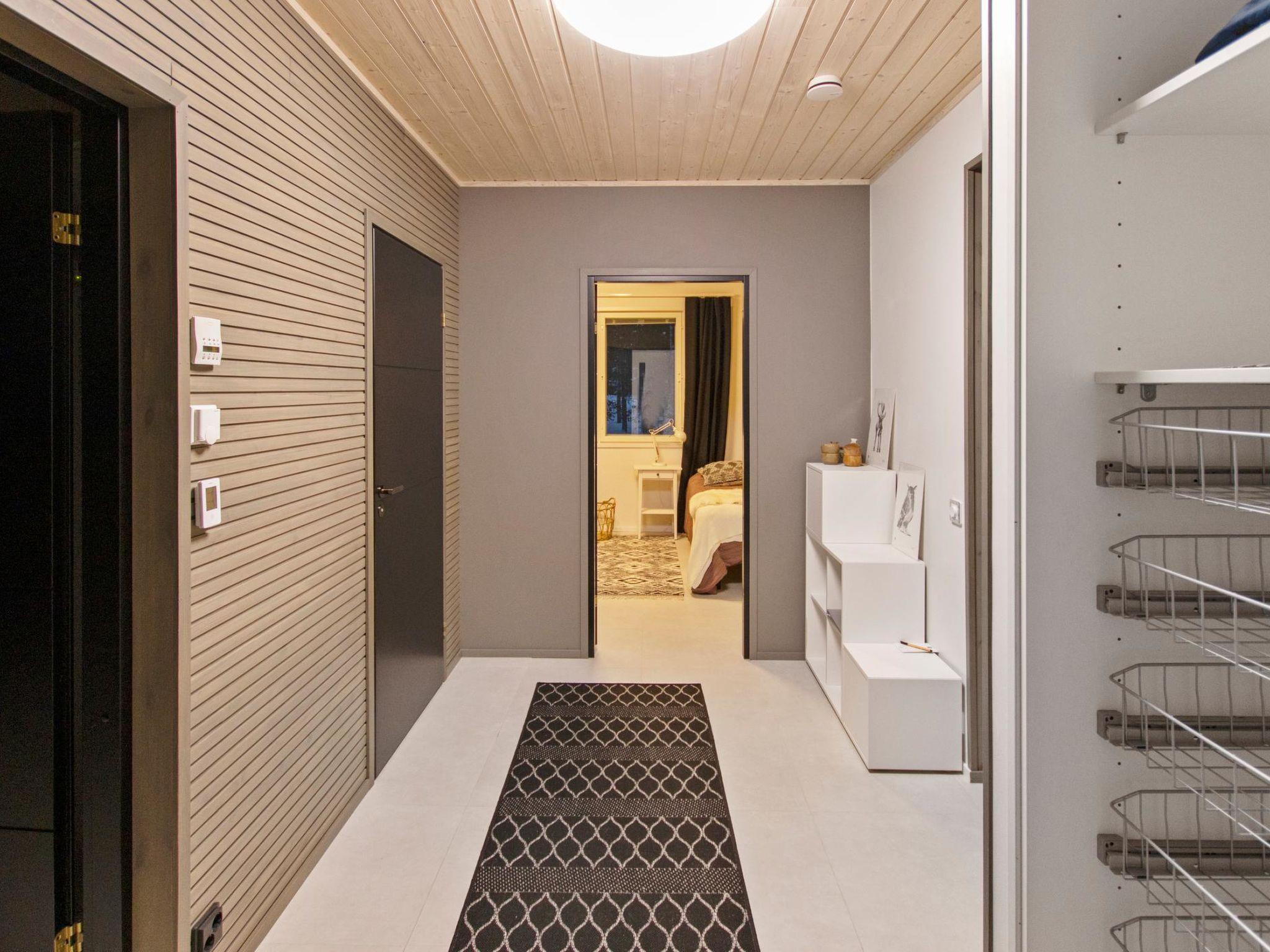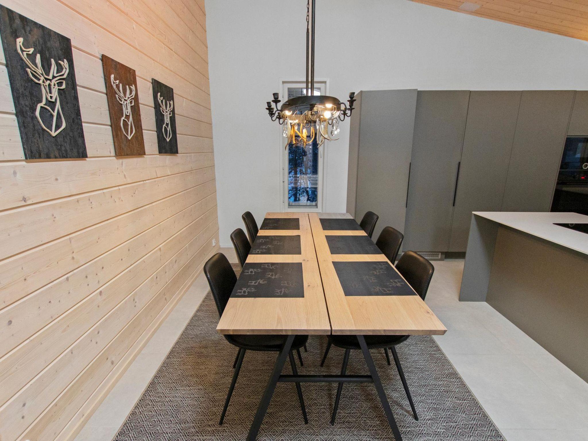 Distances: 40 km north of Kolari, lake Äkäslompolo 1,5 kilometers, beach 2 km. Separate high quality wooden house, built in 2016. Modern kitchen, two bedrooms with separate beds, one bedroom with both a double bed and a bunk bed at the alcove, electric sauna, shower, 2 x toilet.