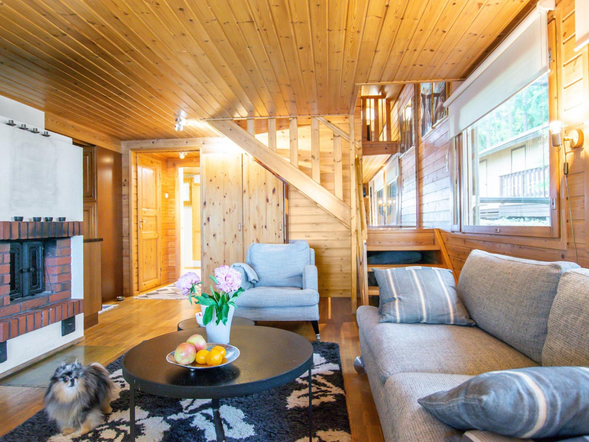 40 km nordöstlich von Hämeenlinna, See Kuohijärvi 15 m, flacher und harter Sandboden, eigenes Boot. W-LAN. Holzgebäude, Baujahr 1985, renoviert 2006, Wohnzimmer mit Doppelschlafsofa, Kinderbett und im Erdgeschoss Schlafzimmer mit Doppelbett, im Obergeschoss Schlafzimmer mit Doppelbett, Schlafboden, Sauna, Anleideraum, Waschraum. Grundstück vor Nachbarn abgeschirmt. Dieses Ferienhaus ist auch für zwei kleine Familien geeignet. Kalpalinna Skiabfahrtgebiet 40 km.