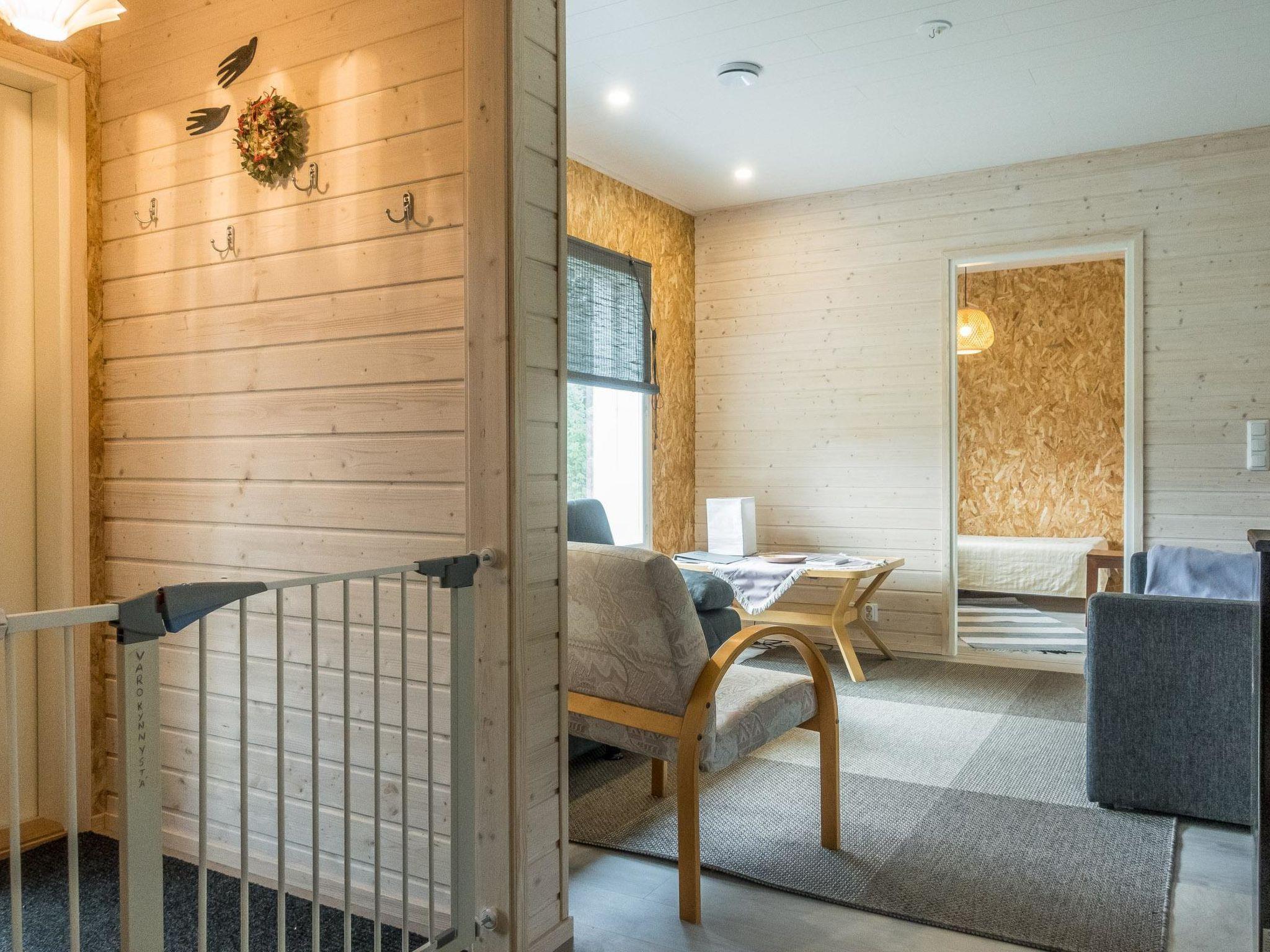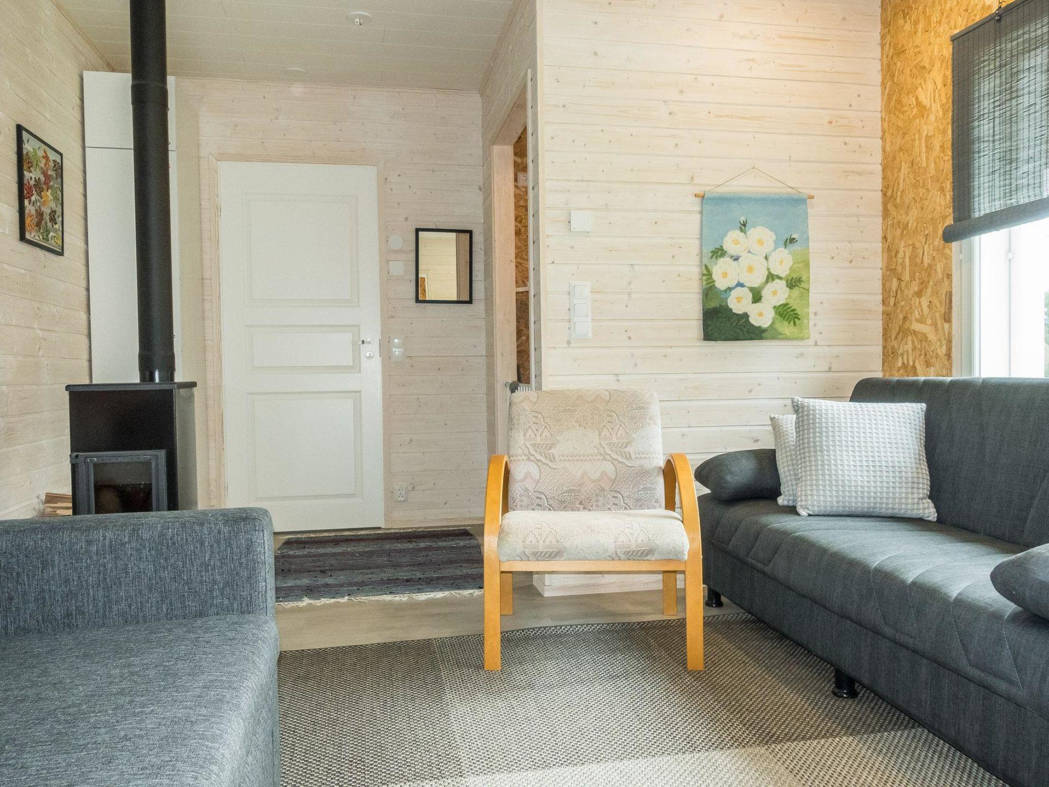 The house has a living room/kitchen, one bedroom with 2 beds and other bedroom with 1 bed. In the living area, there are two spreadable sofas, with widths of 160 cm and 110 cm when opened. Sauna and shower room/WC. No TV.