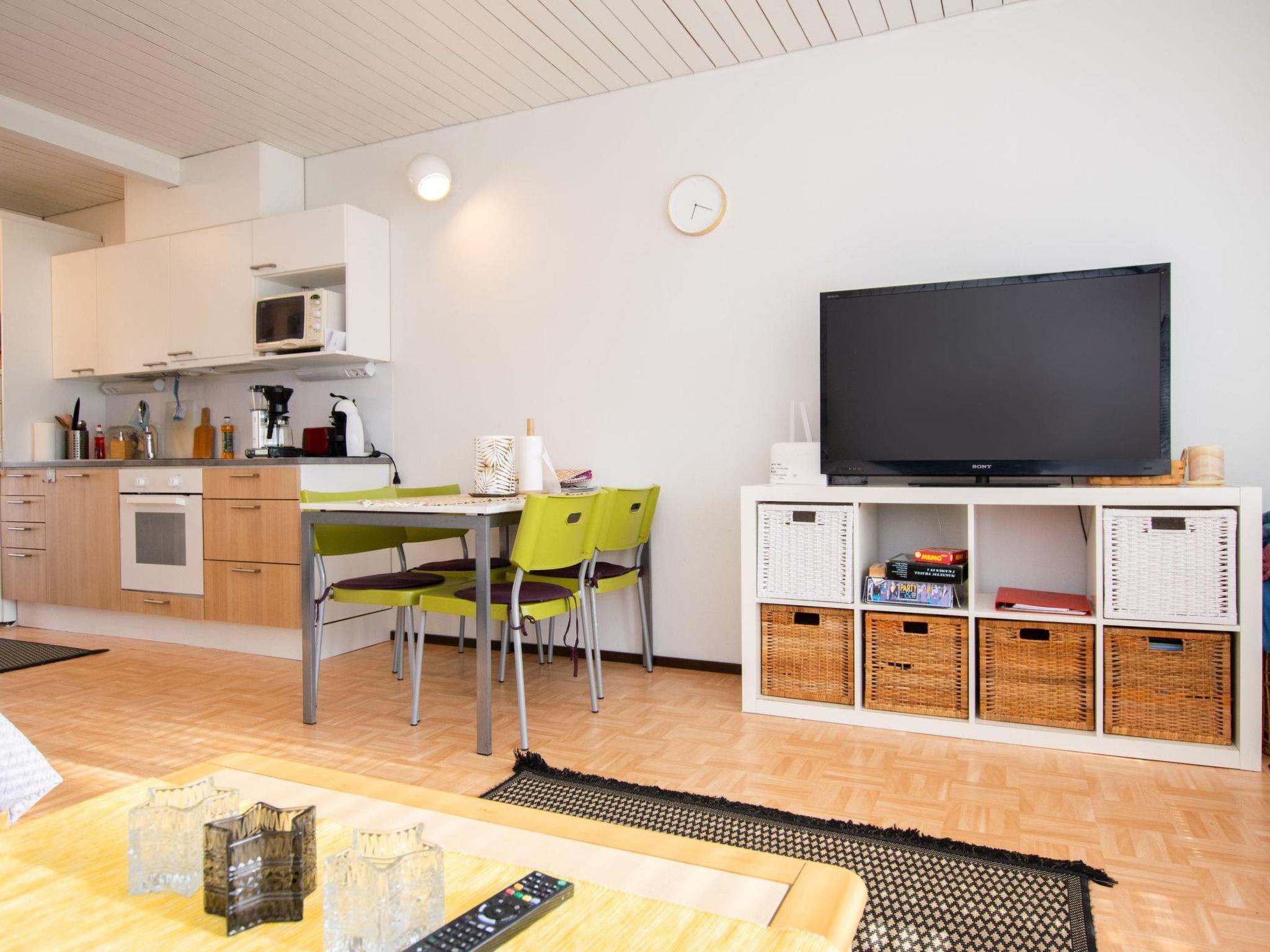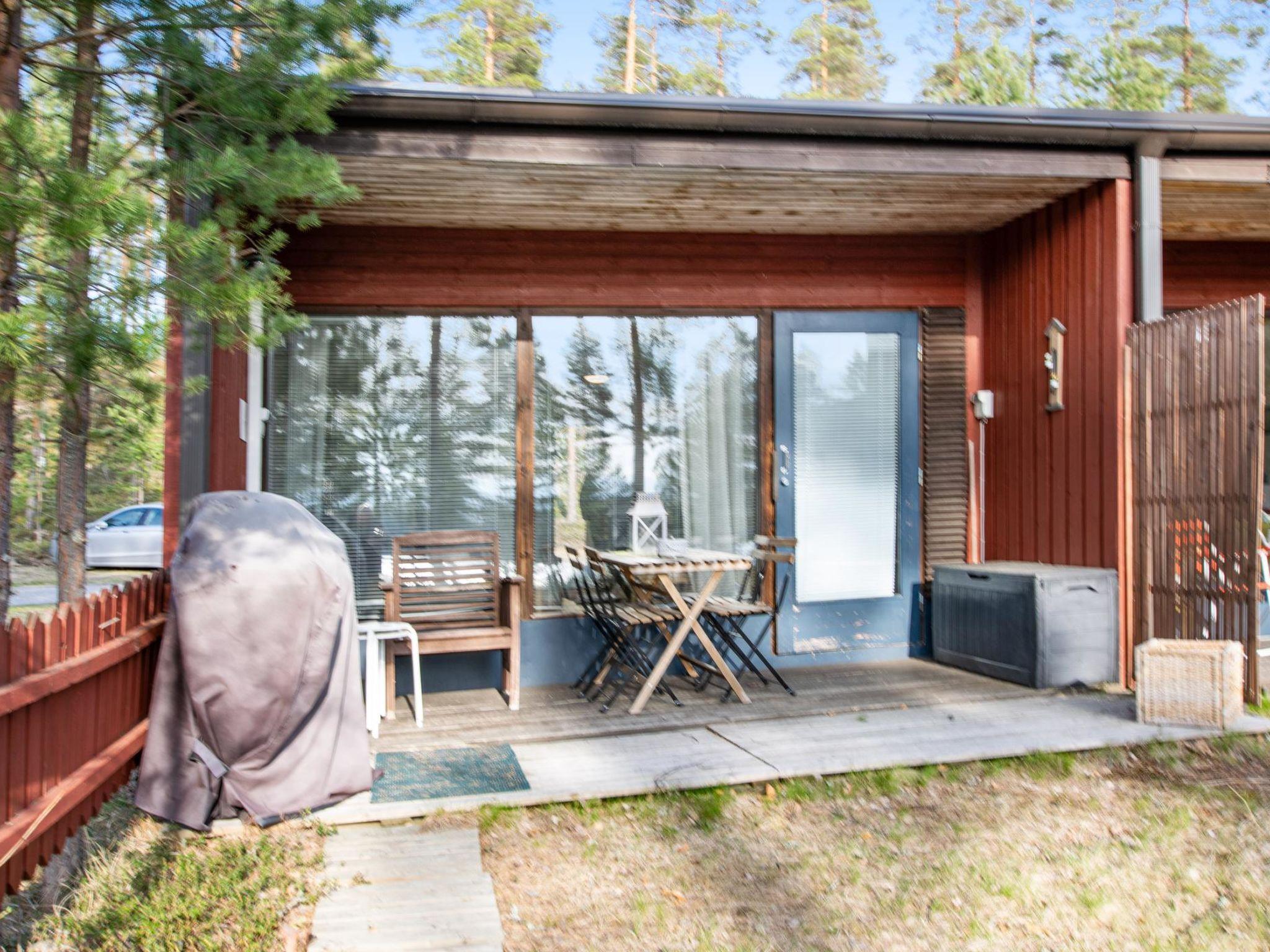 Terrace with outdoor furniture. Between the apartment and the beach, a tennis court is available free of charge. The apartment has rackets and balls for guest use. In the Joutsenlampi area, there is a shared barbecue area for the apartments, located by the lake about 300 meters from the apartment.