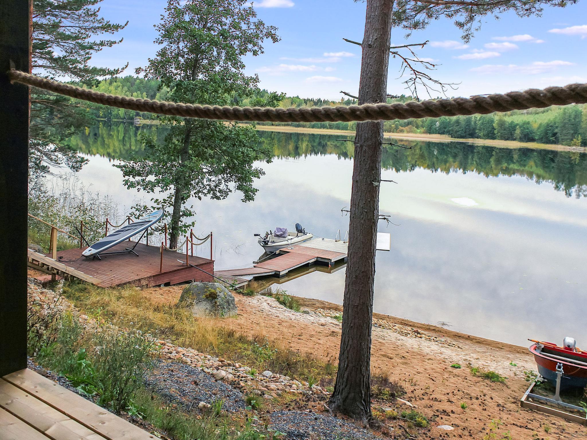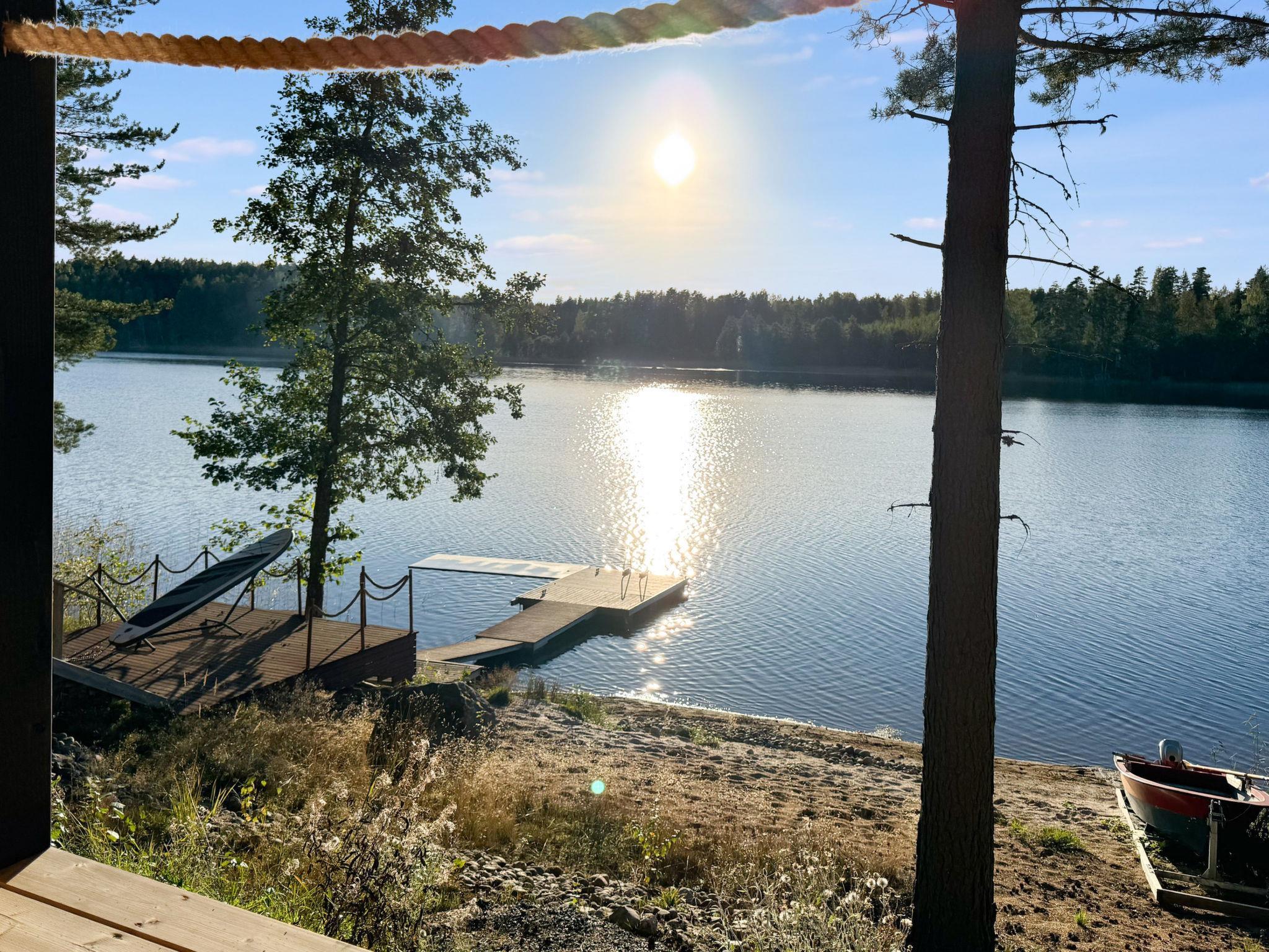 Fully equipped holiday home with private beach, lakeside sauna, and home gym.