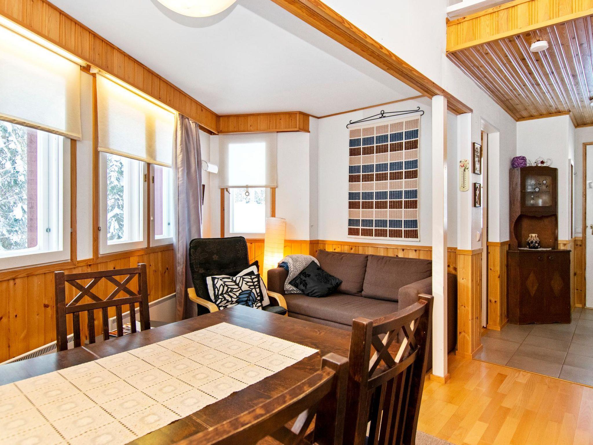 Maximal 1 Haustier/Hund erlaubt. Doppelhaushälfte, im Tourismuszentrum Ukkohalla, 37m2 + 8m2, Baujahr 1989. Küche, Schlafzimmer, Dachboden, Sauna, Dusche/WC, Balkon, Terrasse, Kamin und 1 Korb Brennholz. Schlafzimmer mit Doppelbett (120 cm), Bett (2x80 cm) auf dem Dachboden und 1 Schlafcouch in der Küche. Boot zur Mitbenutzung. Haustiere sind erlaubt. Ukkohalla: Tourismuszentrum am See Syväjärvi, mit Informationszentrum, Geschäft, Restaurant, Spa, Pistenzentrum, Schneemobilpisten, Skipisten, Programmservice, Strand (weitere Informationen unter www.ukkohalla.fi). Entfernung zu den Ukkohalla-Diensten 0,3 km. Flughafen Kajaani 86 km, Oulu 170 km, Helsinki 650 km, Bushaltestelle Hyrynsalmi 18 km, Bahnhof Kontiomäki 66 km. Haustiere verboten, Blick über die Pisten und den See Syväjärvi. Das Ferienhaus steht am Anreisetag ab 16:00 Uhr bis 12:00 am Abreisetag zur Verfügung.