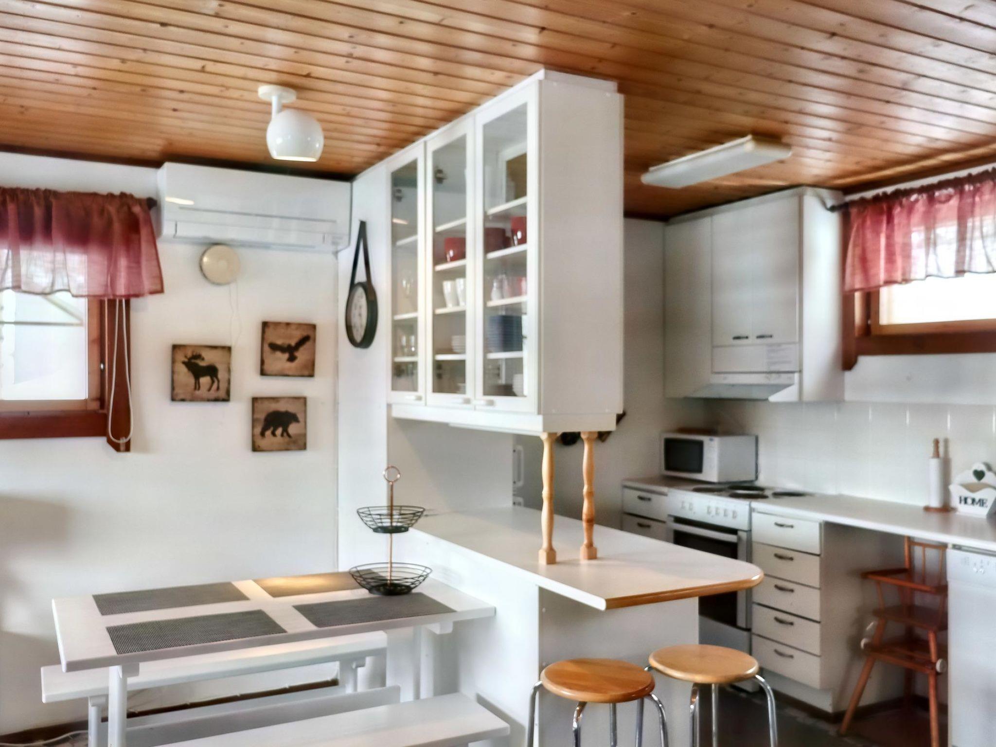 Maximal 1 Haustier/Hund erlaubt. Erdgeschoss in einer Doppelhaushälfte, im Tourismuszentrum Ukkohalla, 4 Personen, Fläche 42m2, Baujahr 1991, Küche, 2 Schlafecken mit 2 Betten und 1 Etagenbett, Sauna, Duschraum/WC, Kamin. Der Preis beinhaltet 1 Sack Brennholz, zusätzliches Holz vom Hausmeister (Euro 10/Sack). Luftwärmepumpe. Ukkohalla: Tourismuszentrum am See Syväjärvi, mit Informationszentrum, Geschäft, Restaurant, Spa, Pistenzentrum, Schneemobilpisten, Skipisten, Programmservice, Strand (weitere Informationen unter www.ukkohalla.fi). Entfernung zu den Ukkohalla-Diensten 1,5 km. Flughafen Kajaani 86 km, Oulu 170 km, Helsinki 650 km, Bushaltestelle Hyrynsalmi 18 km, Bahnhof Kontiomäki 66 km. Haustiere erlaubt. Schöne Aussicht über die Pisten und den See Syväjärvi. Das Ferienhaus steht am Anreisetag ab 16.00 Uhr bis 12.00 Uhr am Abreisetag zur Verfügung.