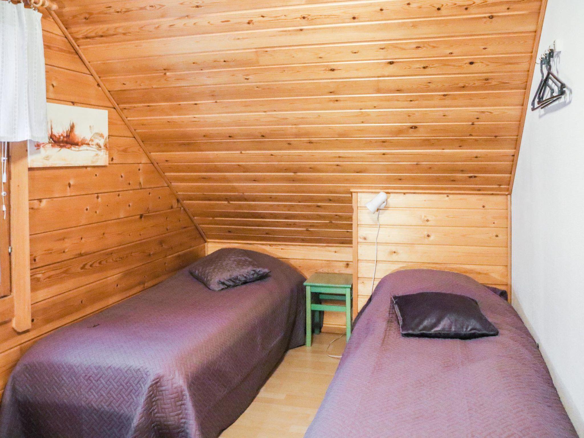 Maximal 1 Haustier/Hund erlaubt. Das Obergeschoss in einer Doppelhaushälfte, im Tourismuszentrum Ukkohalla, Fläche 75m2, Baujahr 1990, renoviert im Jahr 2000, Küche, 3 Schlafzimmer, Sauna, Duschbad, 2 separate Toiletten, Balkon, Terrasse, Kamin, Brennholz, im Erdgeschoss Schlafzimmer mit 1 Doppelbett, oben Schlafzimmer mit 4 Betten und 1 Doppelbett im anderen Schlafzimmer, Schlafcouch im Wohnzimmer. Ruderboot zur gemeinsamen Nutzung mit A- und B-Ferienwohnungen. Ukkohalla: Tourismuszentrum am See Syväjärvi, mit Informationszentrum, Geschäft, Restaurant, Spa, Pistenzentrum, Schneemobilpisten, Skipisten, Programmservice, Cable Wakeboard, Strand (weitere Informationen unter www.ukkohalla.fi). Entfernung zu den Ukkohalla-Diensten 0,7 km. Flughafen Kajaani 86 km, Oulu 170 km, Helsinki 650 km, Bushaltestelle Hyrynsalmi 18 km, Bahnhof Kontiomäki 66 km. Haustiere verboten. Schöne Aussicht über die Pisten und den See Syväjärvi. Das Ferienhaus steht am Anreisetag ab 16.00 Uhr bis 12.00 Uhr am Abreisetag zur Verfügung.