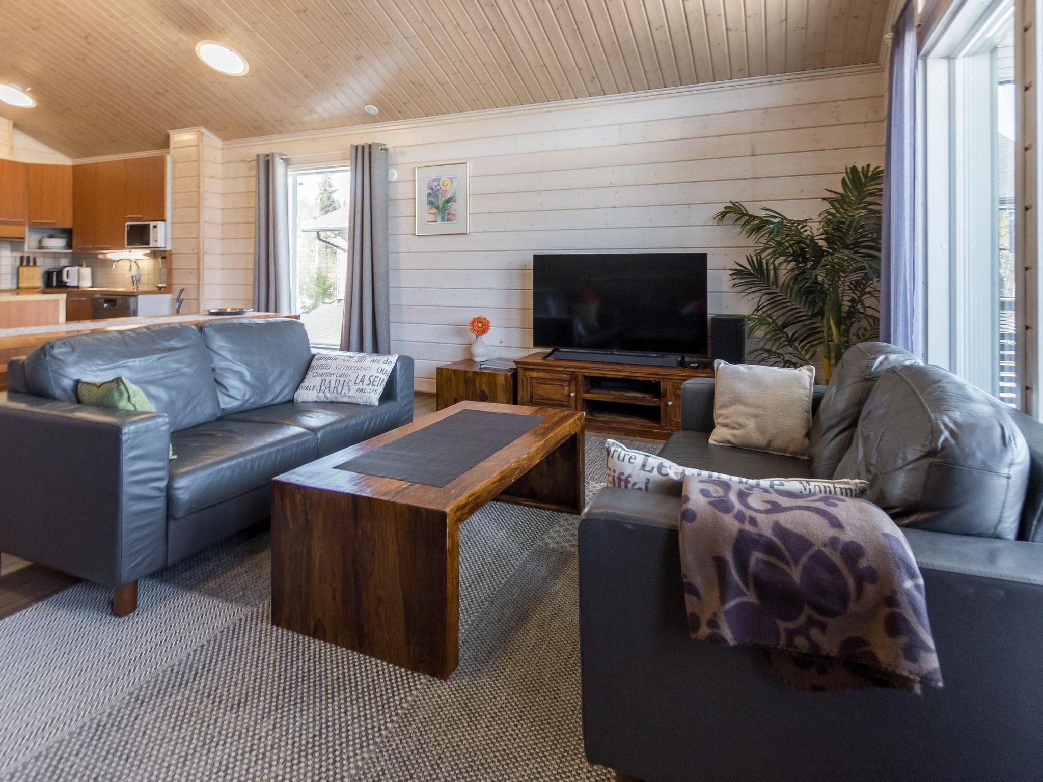 Doppelhaushälfte, im Tourismuszentrum Ukkohalla, Fläche 125 m2, für 10-14 Personen, Baujahr 2009. Räumlichkeiten auf 2 Etagen, im ersten Stock 2 Schlafzimmer, Wohnzimmer, Sauna, Duschbad/WC, Terrasse. Im zweiten Stock Küche, 1 Schlafzimmer, Duschbad/WC, Terrasse. Lagerung, Kamin. Blick auf den See Syväjärvi. 2 Schlafzimmern mit je 2 Betten, Doppelbett in einem Schlafzimmer, Schlafsofa und 2 Zusatzbetten im Wohnzimmer und in der Küche. Der Preis beinhaltet 1 Sack Brennholz, zusätzliches Holz vom Hausmeister (Euro 10/Sack). Ukkohalla: Tourismuszentrum am See Syväjärvi, Informationszentrum, Geschäft, Restaurant, Spa, Pistenzentrum, Schneemobilpisten, Skipisten, Programmservice, Strand (weitere Informationen unter www.ukkohalla.fi). Entfernung zu den Ukkohalla-Diensten 0,1 km. Flughafen Kajaani 86 km, Oulu 170 km, Helsinki 650 km, Bushaltestelle Hyrynsalmi 18 km, Bahnhof Kontiomäki 66 km. Haustiere nicht erlaubt, Blick auf den See Syväjärvi. Das Ferienhaus steht am Anreisetag ab 16.00 Uhr bis 12.00 Uhr am Abreisetag zur Verfügung. Die Endreinigung ist inbegriffen. ZUSÄTZLICHE GEBÜHR FÜR BETTWÄSCHE (€13/PERSON) WELCHE GEBUCHT WERDEN MÜSSEN.