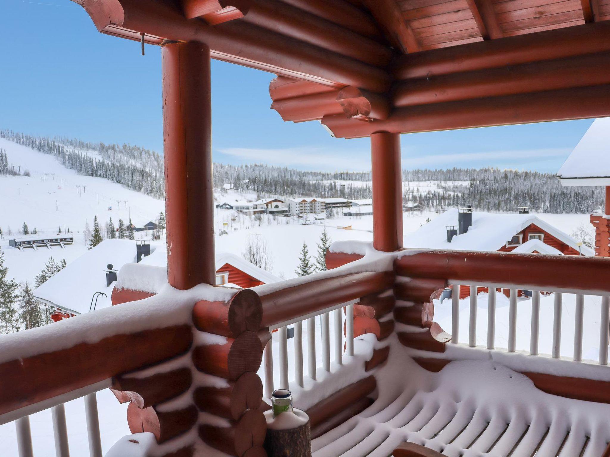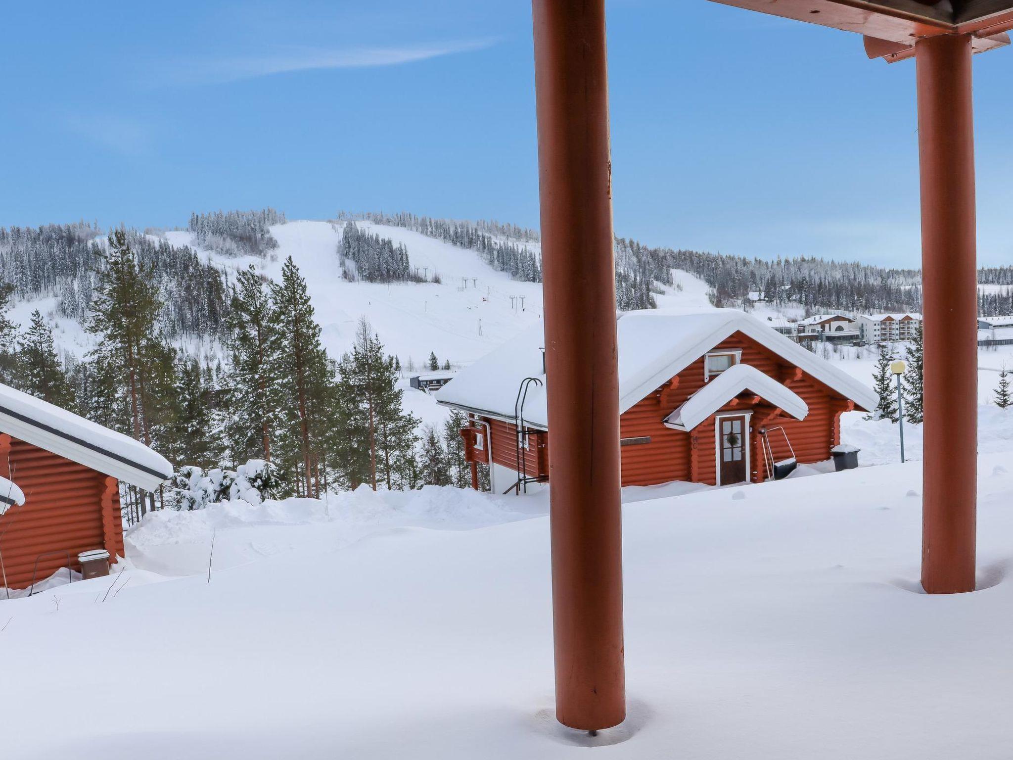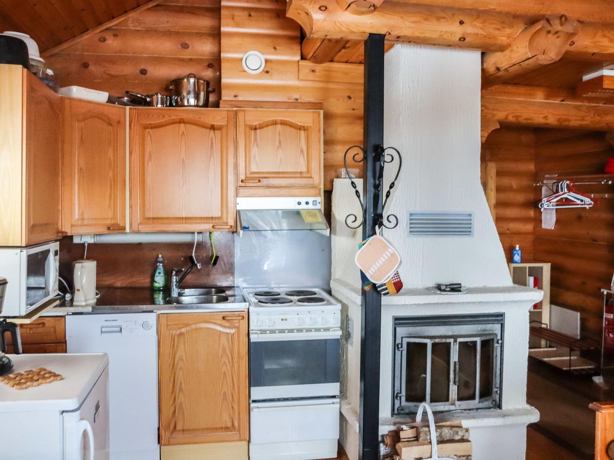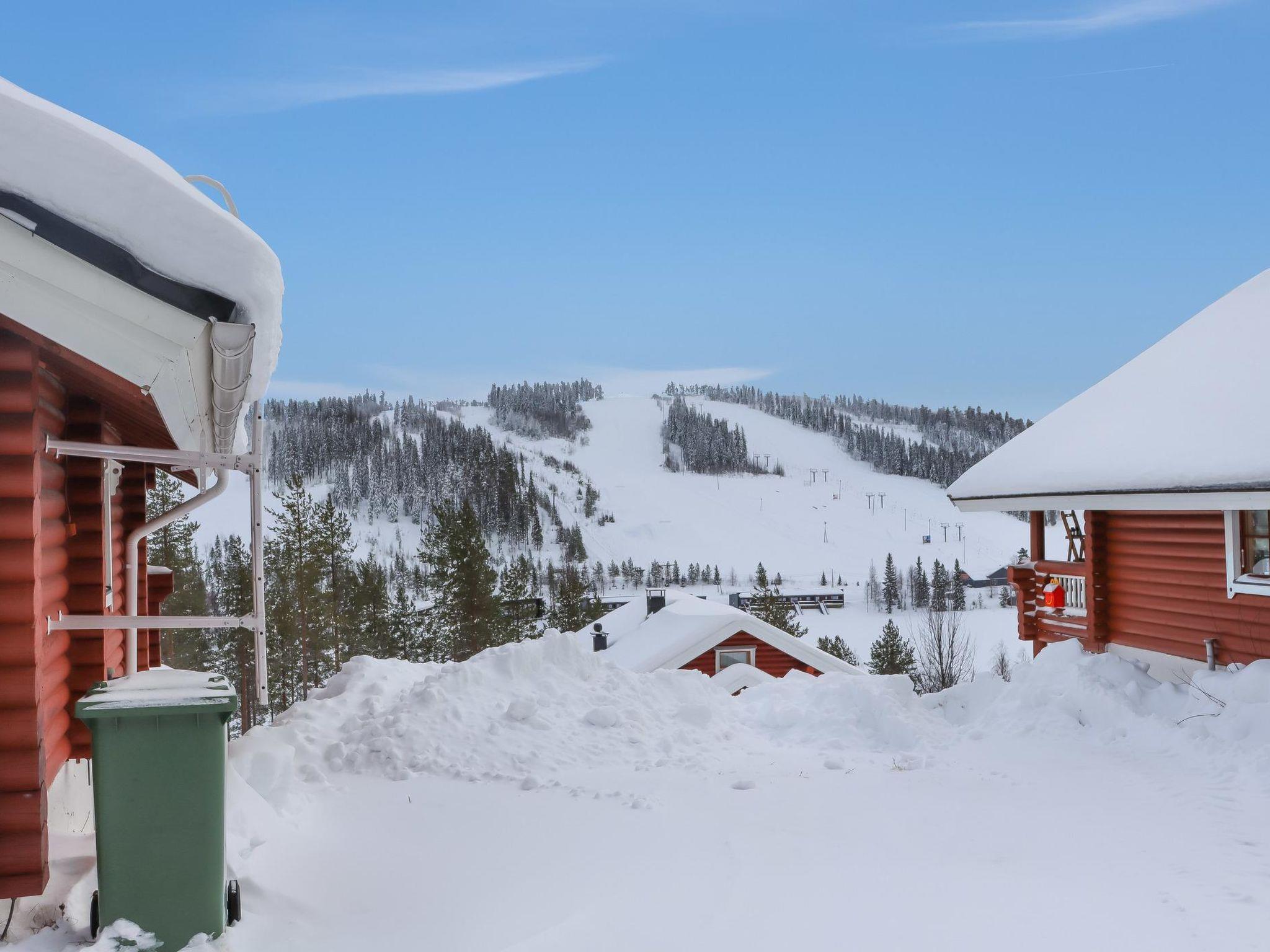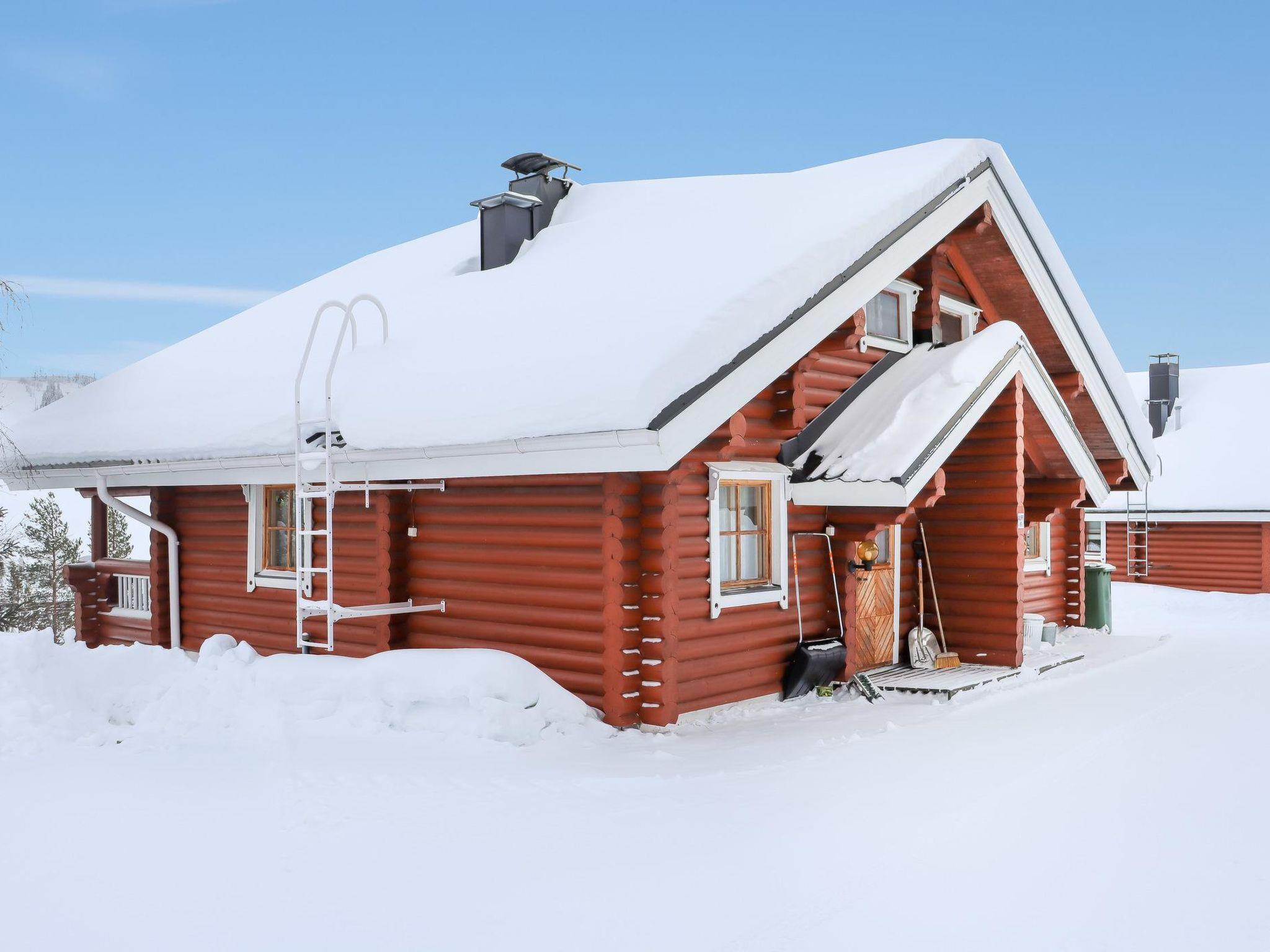 A semi-detached house located in the Ukkohalla tourism centre, 5 + 1 persons, 53m2 + loft 12m2, built in 1993, premises on 3 floors, kitchen, bedroom with a double bed, loft, sauna, shower room and separate toilet downstairs, dressing room, storage, balcony, terrace, vestibule, fireplace and firewood, 3 beds on the loft, living room sofa-bed, child safety gate on top of the stairs.