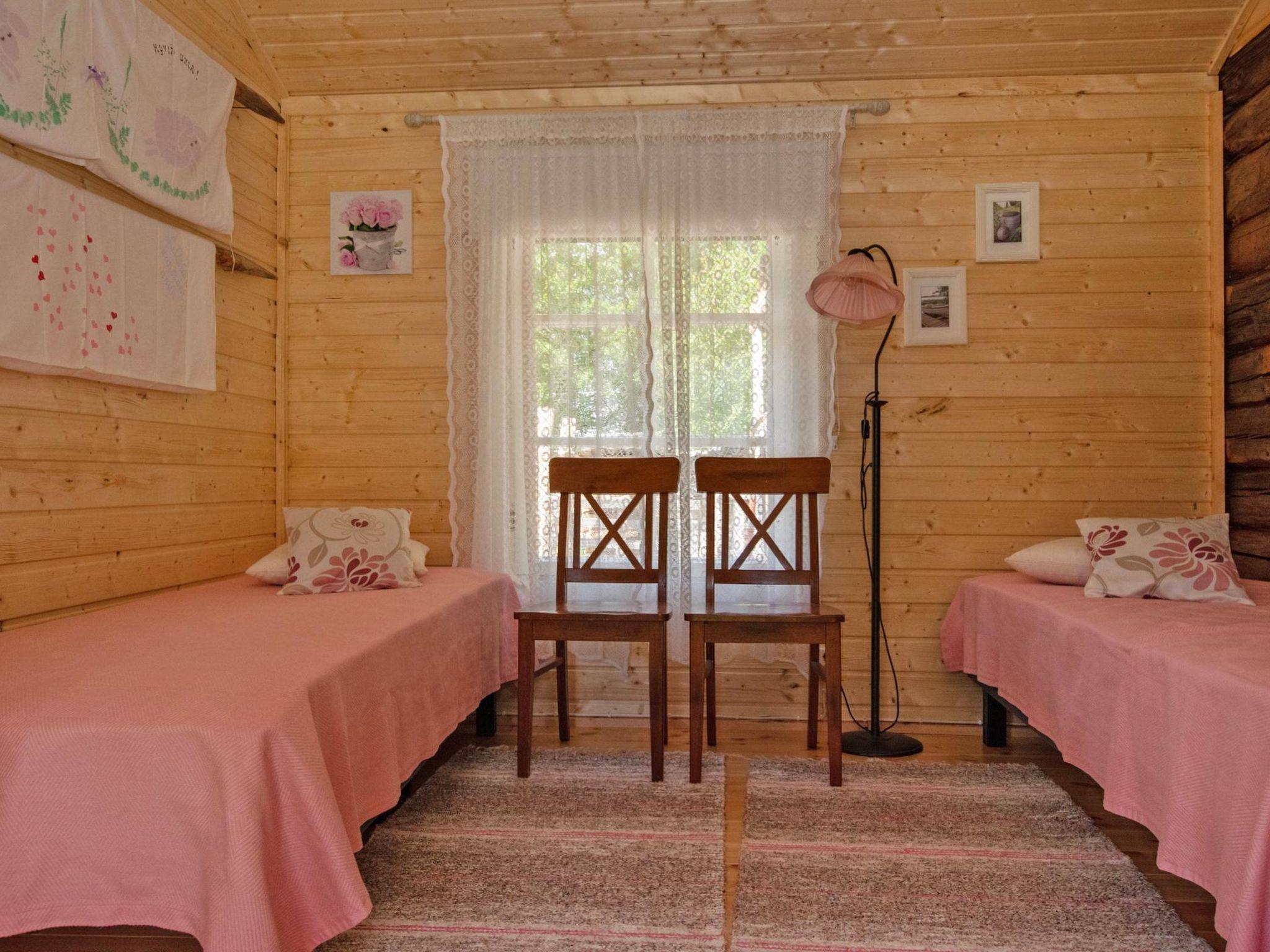 The cabin has a cozy atmosphere. The cabin has living area (sofa bed 140 x 190 cm, with bed for two), bedroom (double bed), kitchen and sleeping loft (two mattresses), steep stairs to the loft. Sauna (wood-burning sauna stove), washroom and WC.