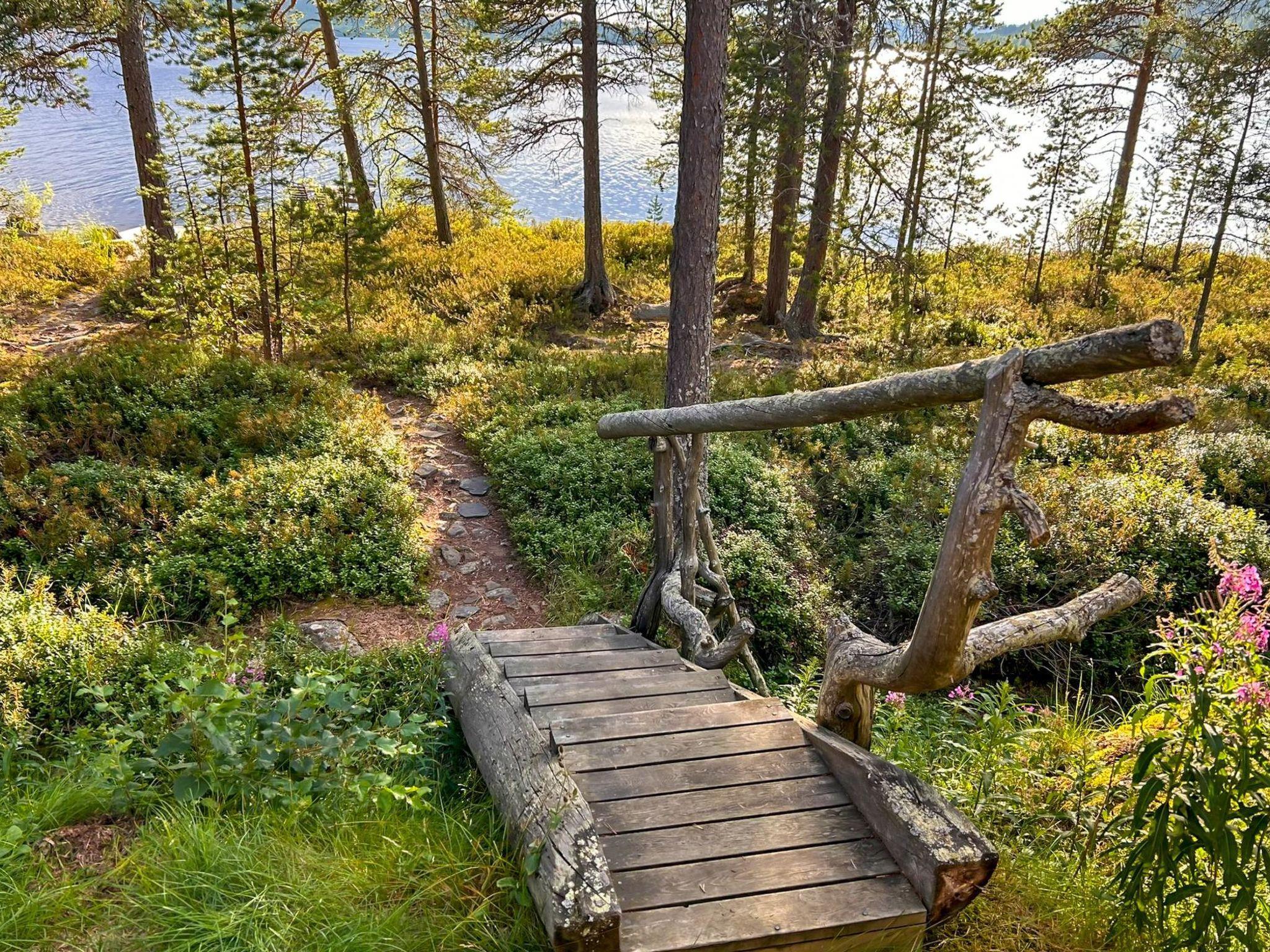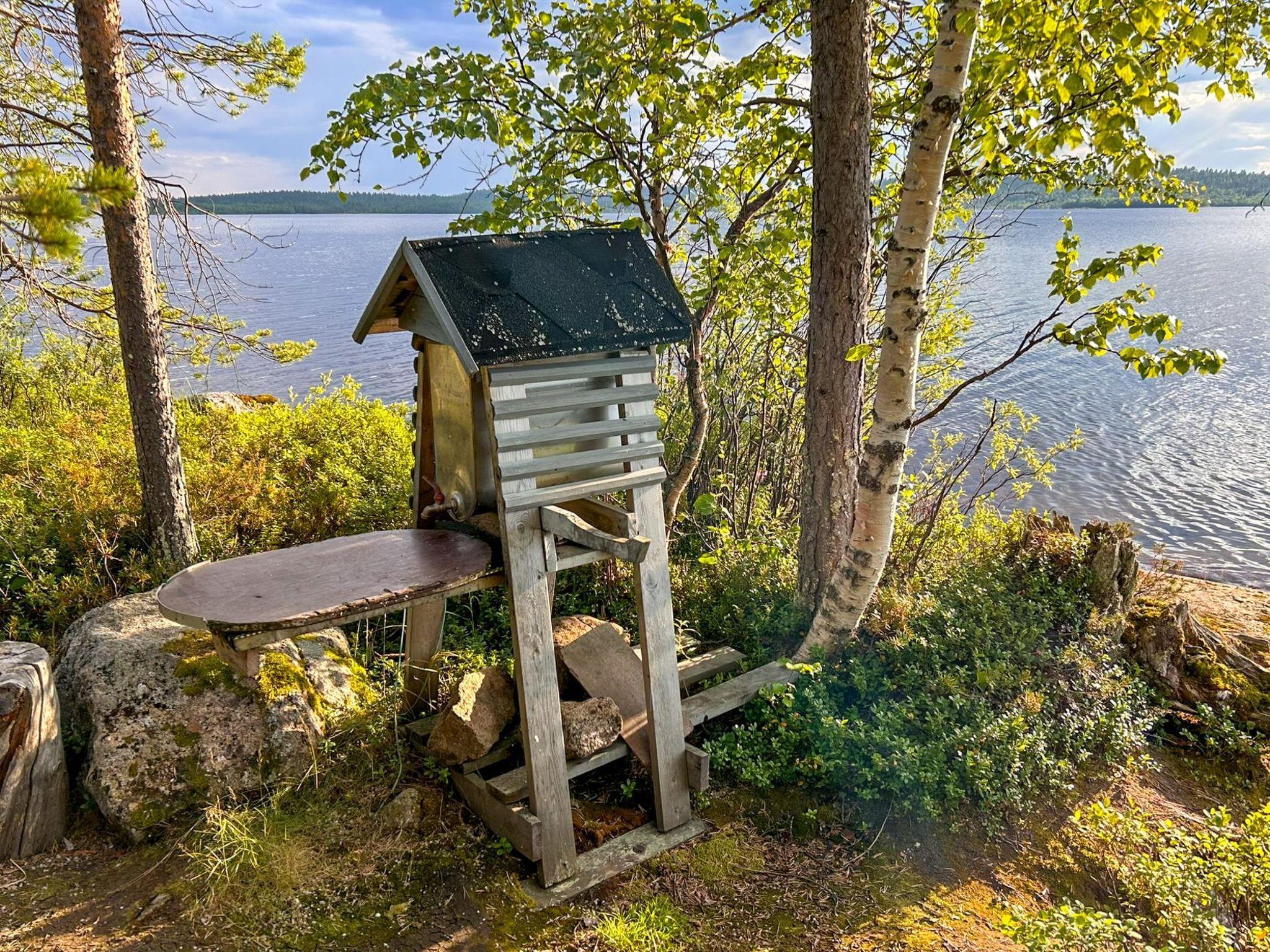 305 km nördlich von Rovaniemi, See Inarijärvi, auf der Insel Nanguvuono (Salmenniemensaari), die Länge der Insel 850 m, Entfernung vom Festland 180 m, Bootsfahrt 1 km vom Bootsanleger entfernt (der Hausmeister begleitet Sie bei Bedarf zum Ferienhaus), 3 Ruderboote, flaches Wasser, Sandboden, Steg. Ferienhaus aus Kiefernholz, Baujahr 1971, später erweitert. Wohnzimmer mit Etagenbett aus Kiefernholz (unteres Bett 160 cm und oberes 80 cm breit), 2 Schlafzimmer mit je 2 Betten, Küche, Sauna (Holzofen, Heiztank, Dusche), Ankleideraum mit 1 Bett, Terrasse, Veranda. Öko-Toilette im Haus, zusätzlich eine Aussentoilette. Räucherofen und Kamin. Geräumige Wildnisvilla auf einer Insel am See Inarijärvi. Gute Angelmöglichkeiten. 2 Fischernetz-Lizenzen stehen den Gästen zur Verfügung. Der Haumeister vermietet einen Aussenborder. Es muss aber eine Kaution, in Höhe von € 250, hinterlegt werden. Bootsanlegestelle auf dem, 1 km entfernten, Festland. Es muss eine Kaution, in Höhe von € 150, vor Ort hinterlegt werden.