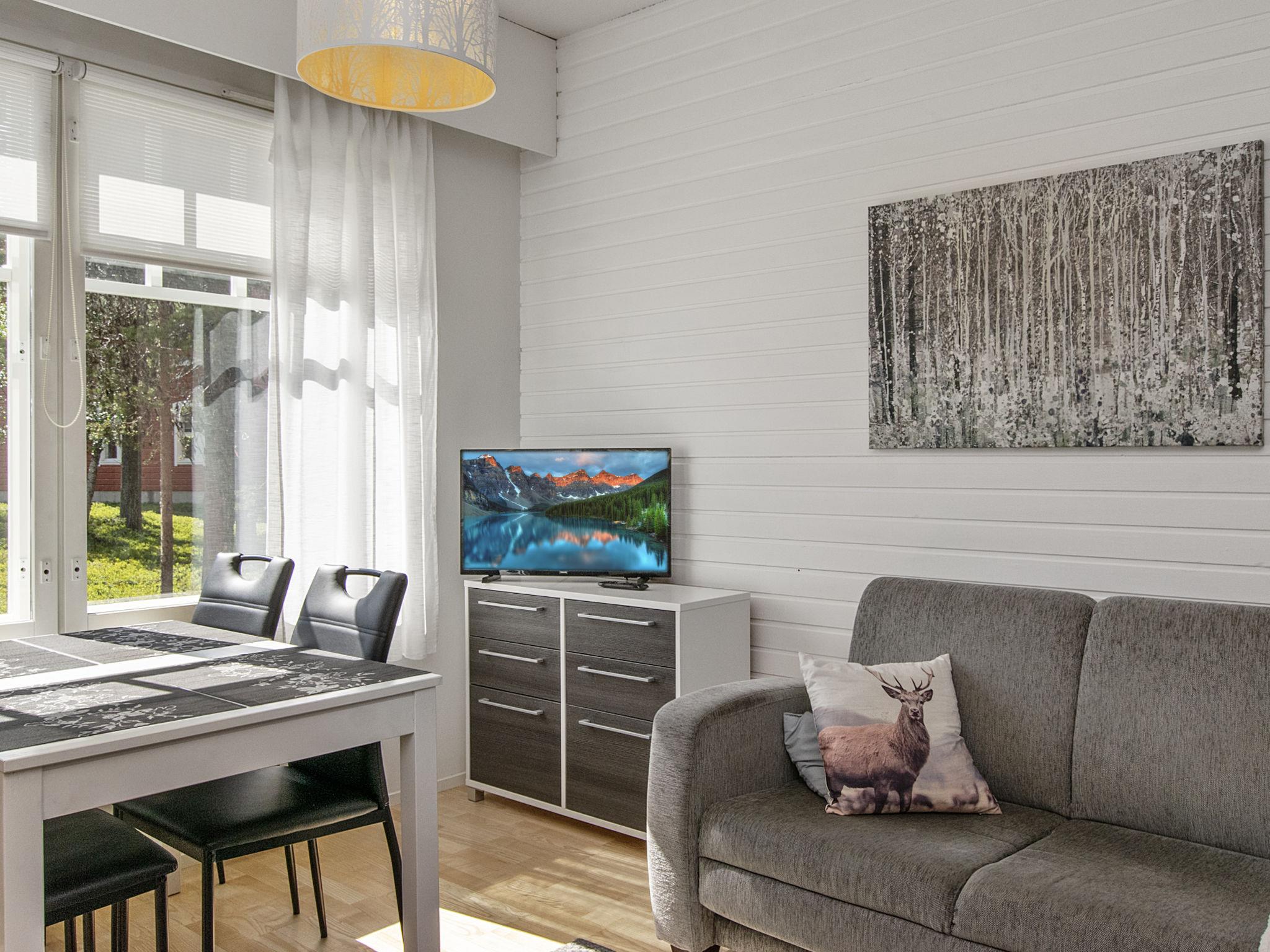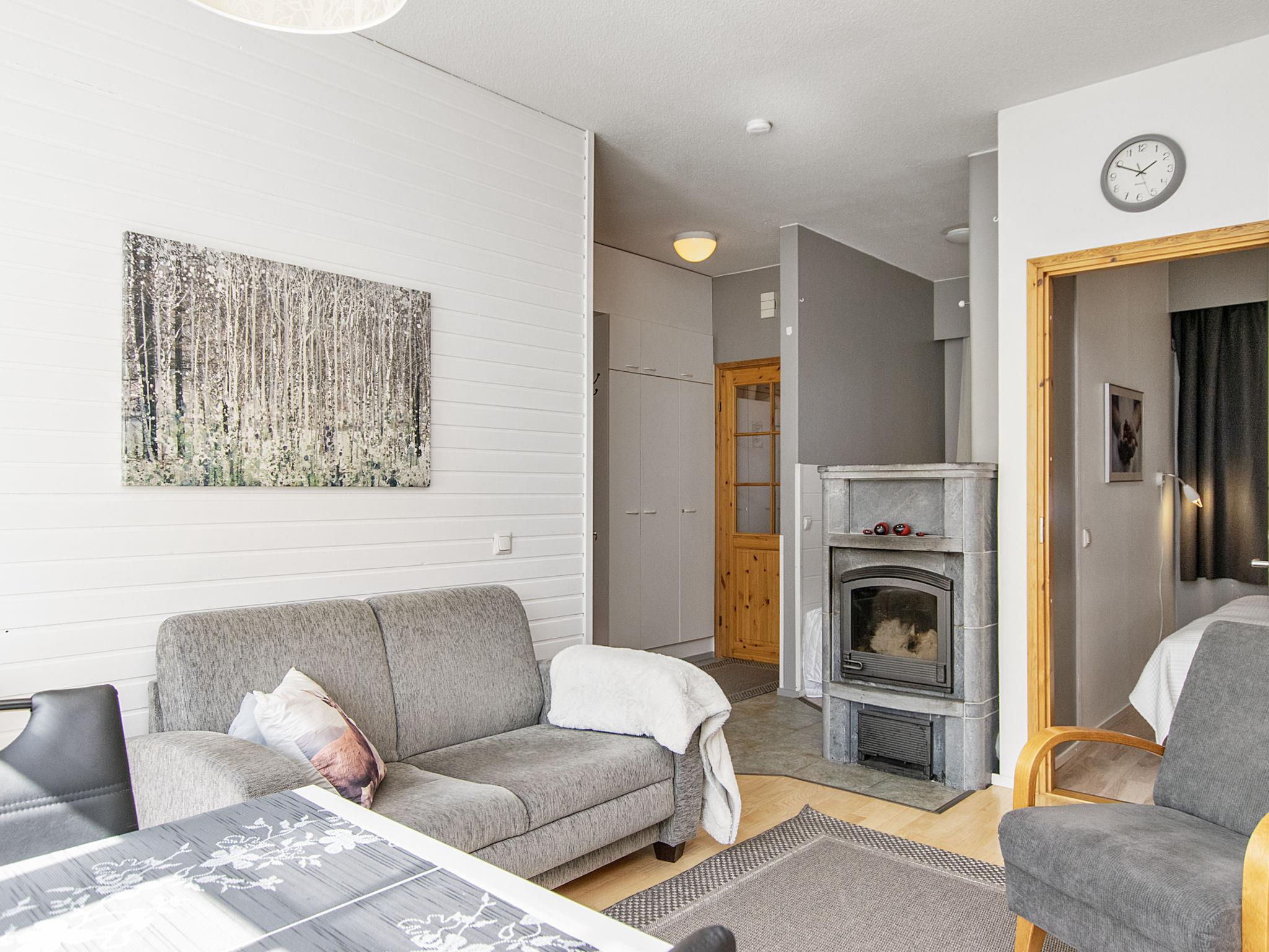 Street level apartment in the 2-storey row house in the center of Saariselkä. Built in 1999, renovated in 2016-17. Kitchen-living room with sofa bed, bedroom with 2 beds (width á 90 cm), alcove with 1 bed (width 80 cm), sauna and shower/toilet.