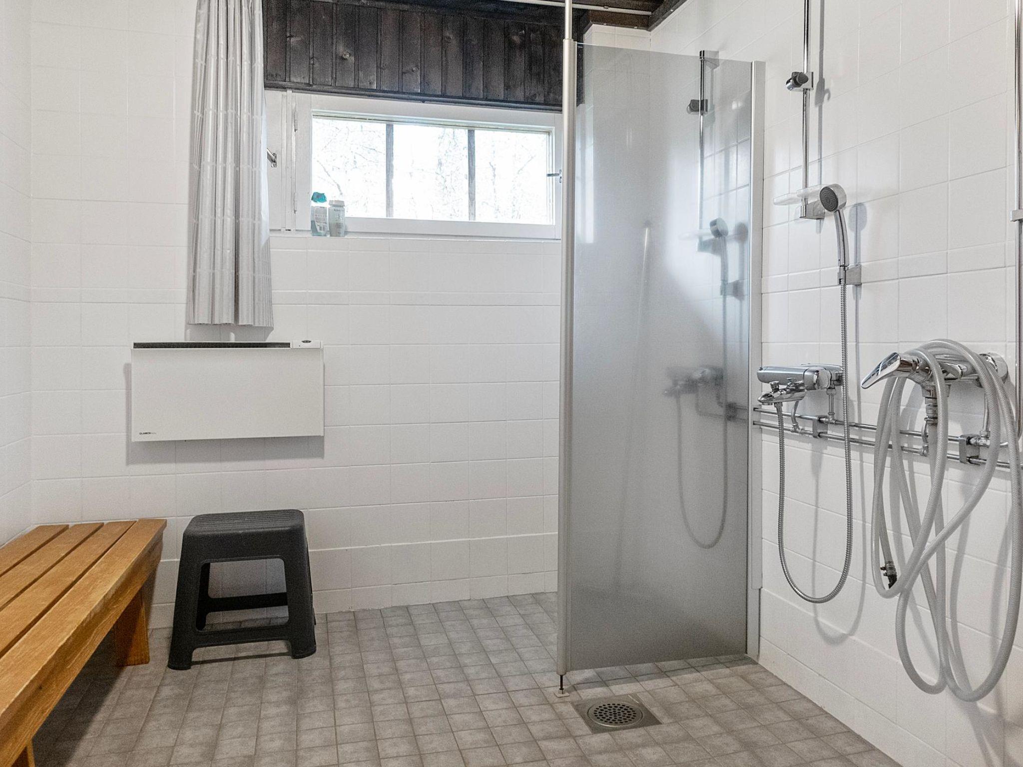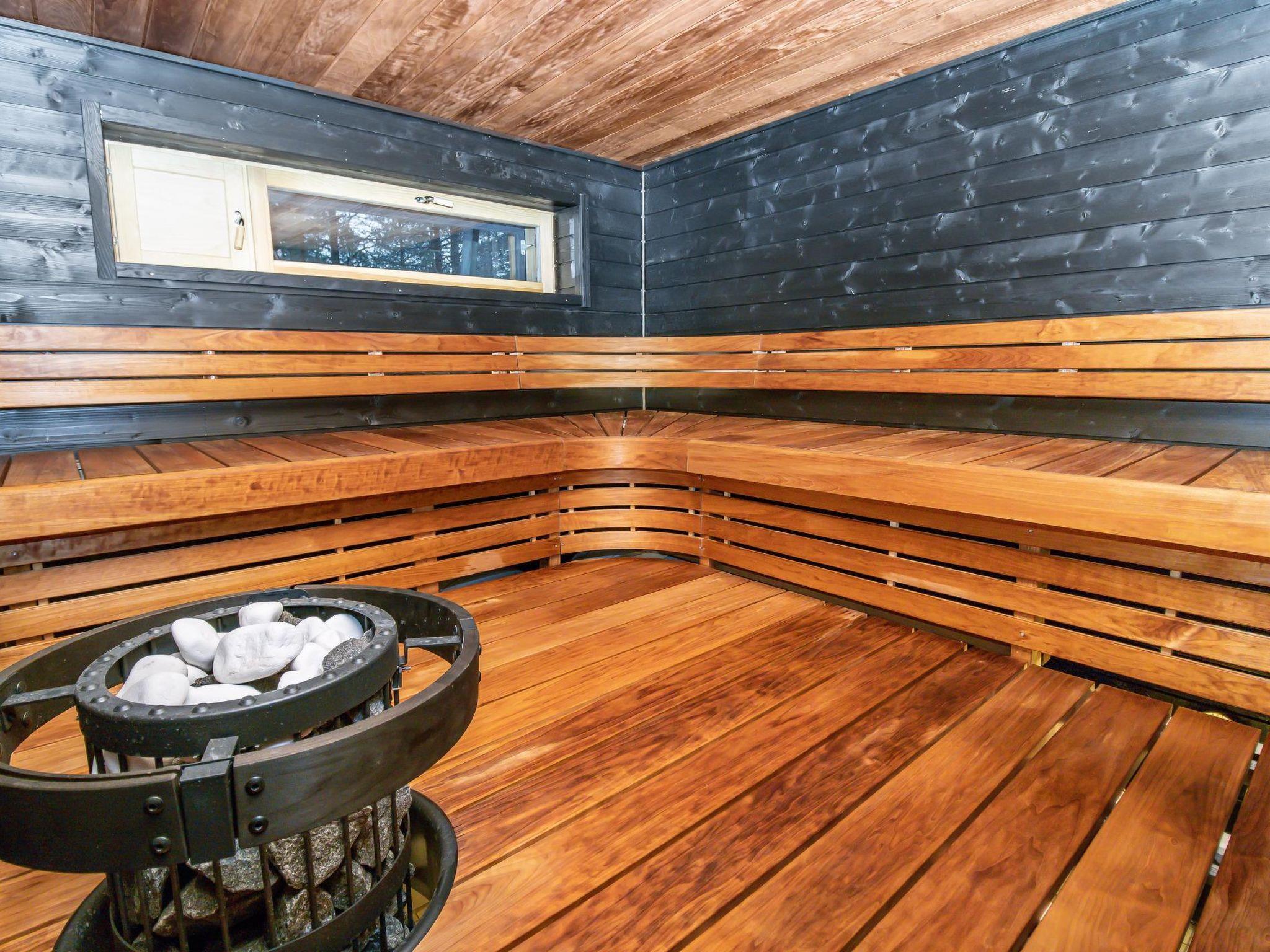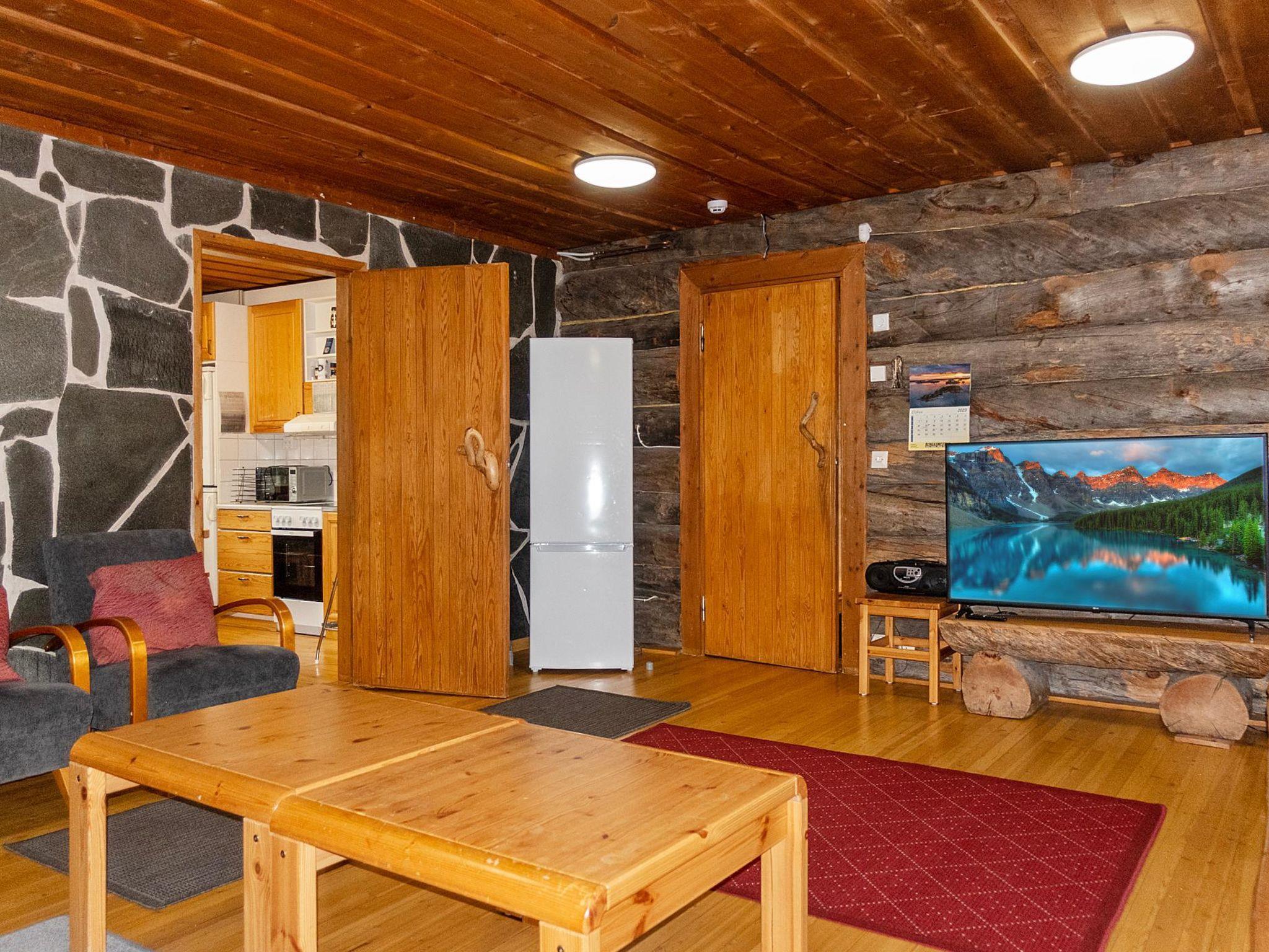The cabin offers excellent kitchen, dining, and cold storage facilities. There are separate living and fireplace rooms, each with own fireplace and TV. Spacious sauna area with timer-controlled electric sauna stove is also available. Four WCs, one includes a shower cubicle. Technical room with two electric drying cabinets, drying rack, washing machine, and tumble dryer.