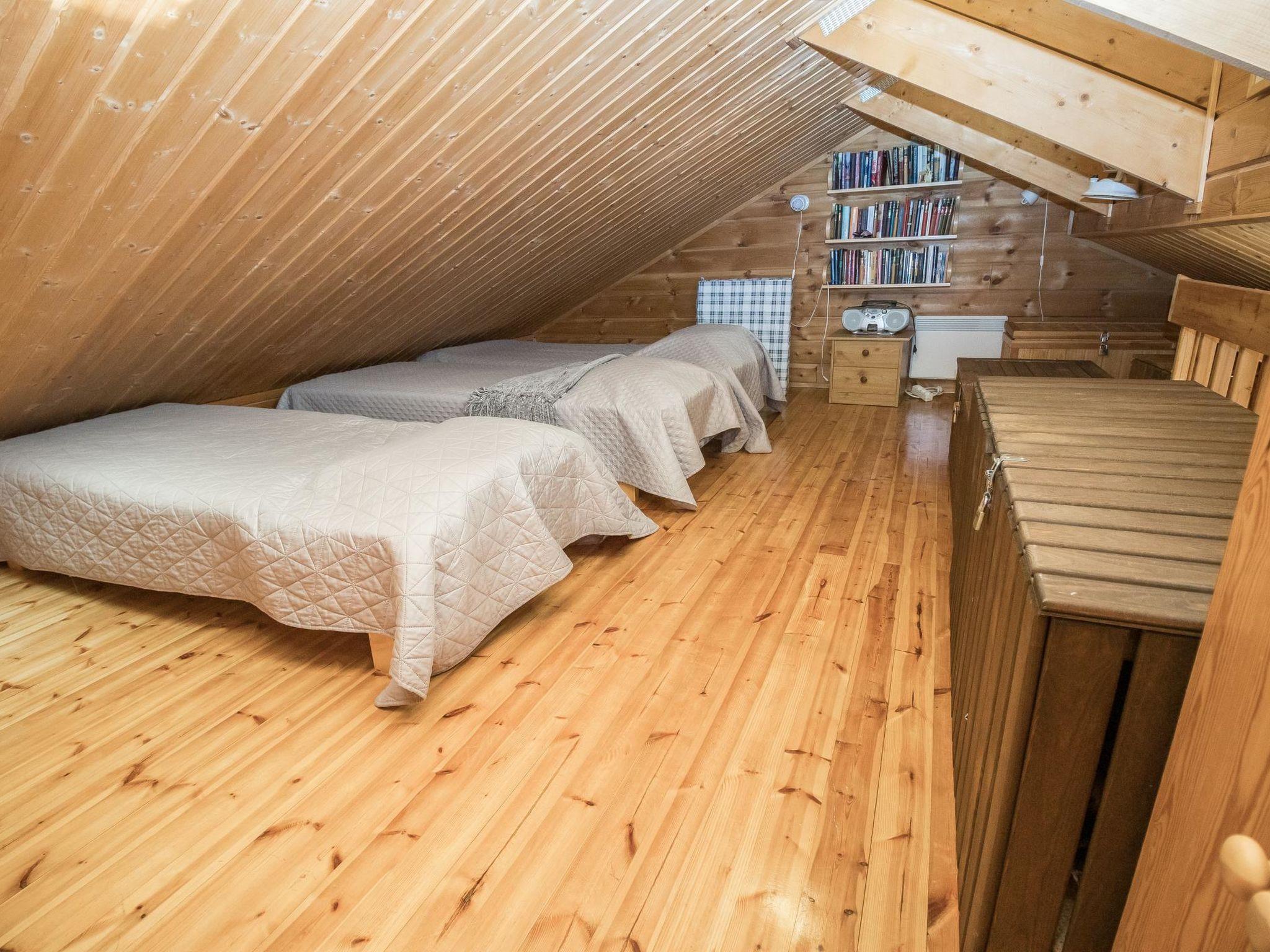 A good night's sleep comes in the downstairs bedroom (folding door) with two beds. The loft has three spring mattresses, providing additional sleeping space. Steep stairs to the loft which has a low room height.