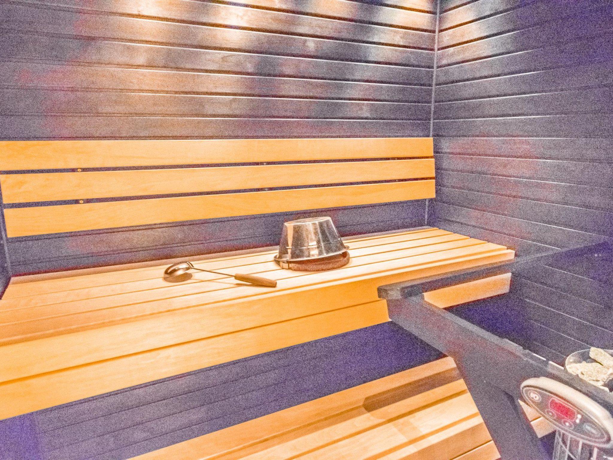 The sauna offers a fantastic place to unwind, with two showers included in the washroom.