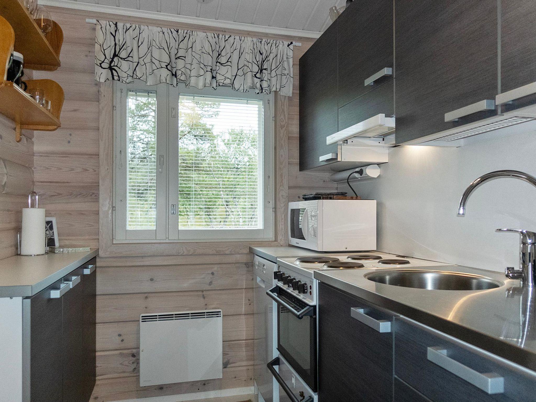 Pursu features 3 rooms and a kitchen. The main bedroom has a 160 cm double bed, the adjacent room has a sofa bed (160 cm) and a TV. The living room includes a sofa and a dining table. The kitchen is equipped with amenities such as a dishwasher. In addition, there is a sauna, a bathroom with WC, and a dressing room.