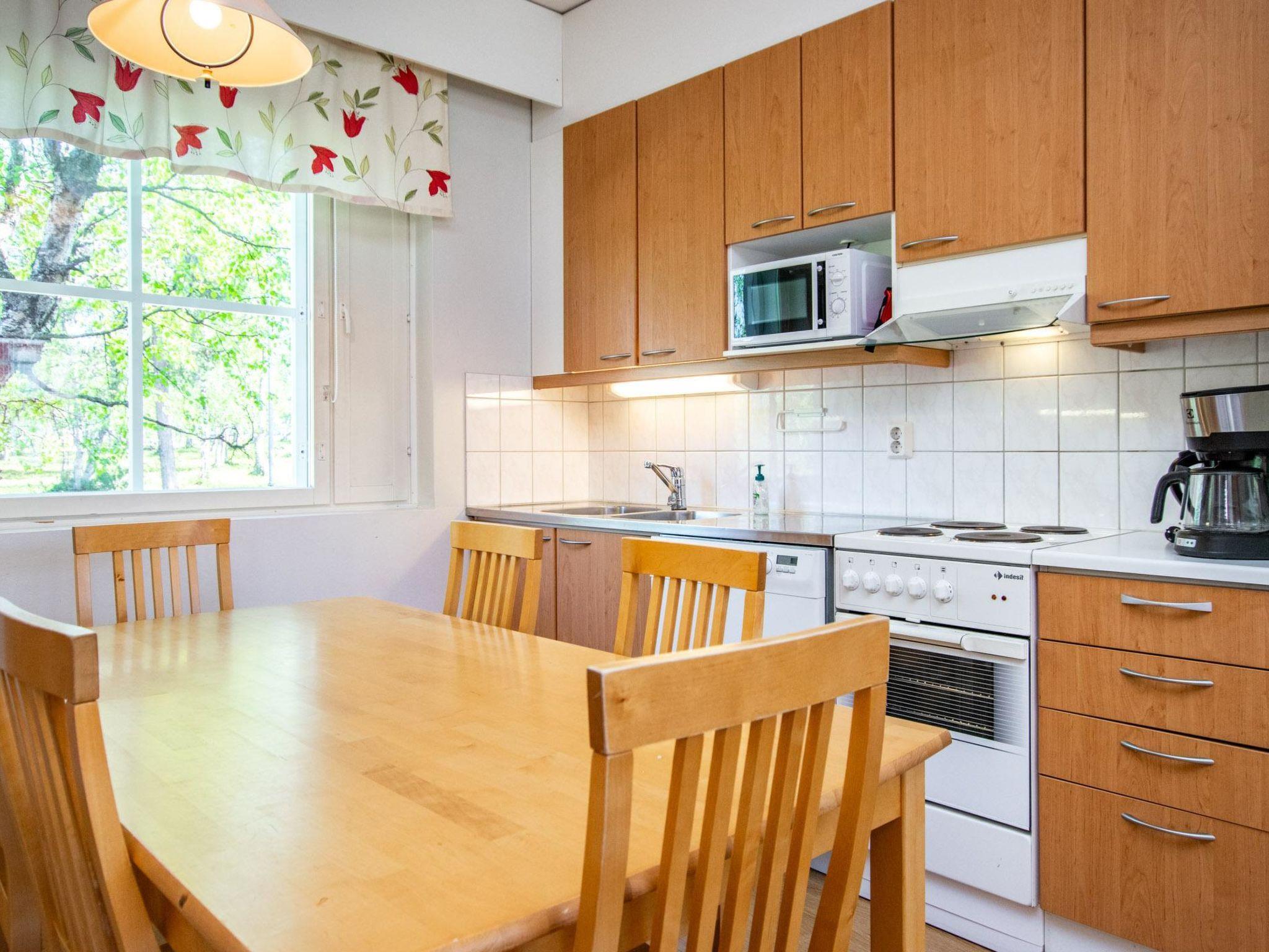 The kitchen-living room offers an excellent place for socialising and relaxing with the whole group. A soapstone fireplace in the same room adds an extra touch of cosiness and acotivity to your stay.