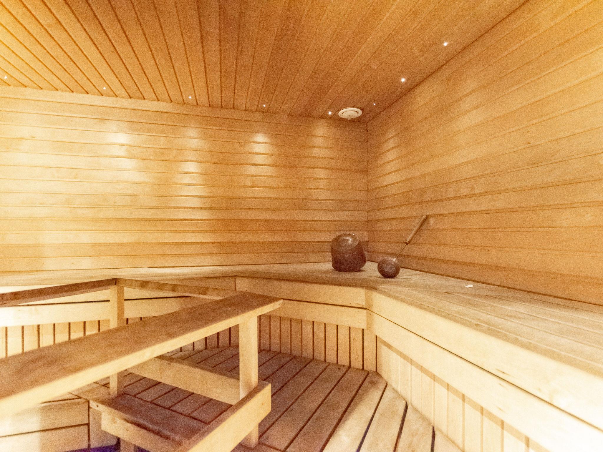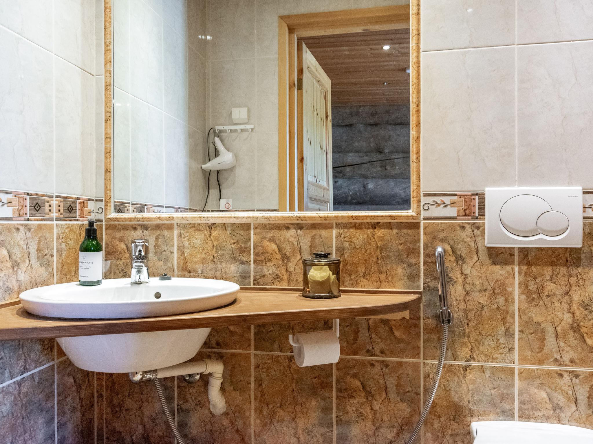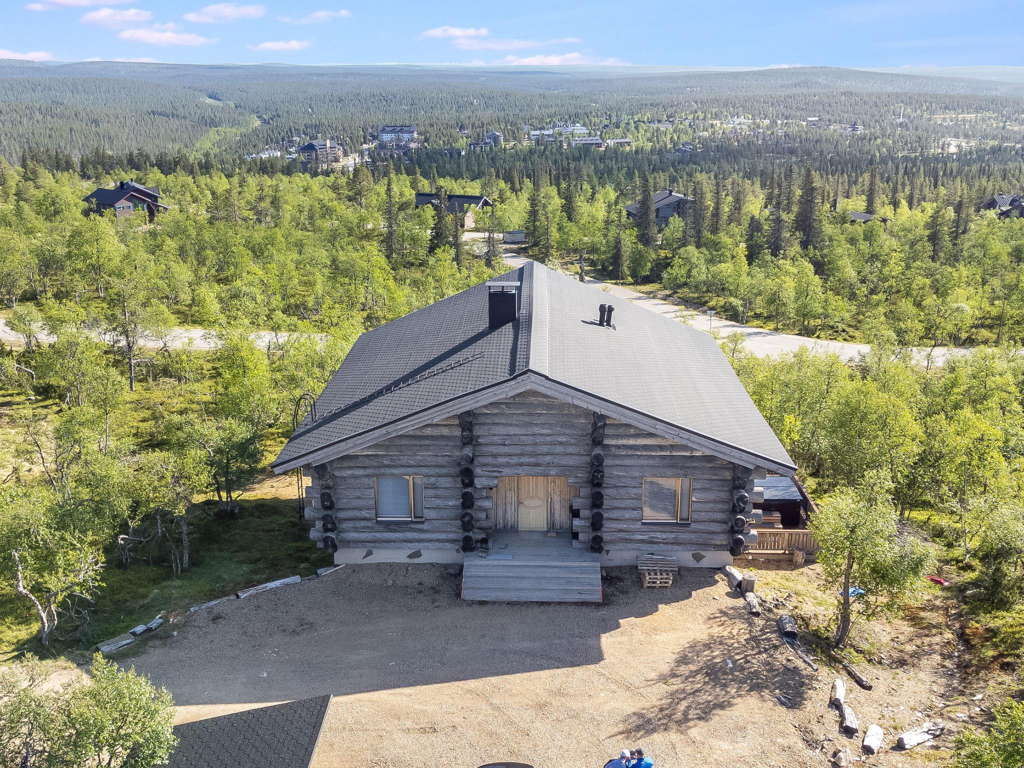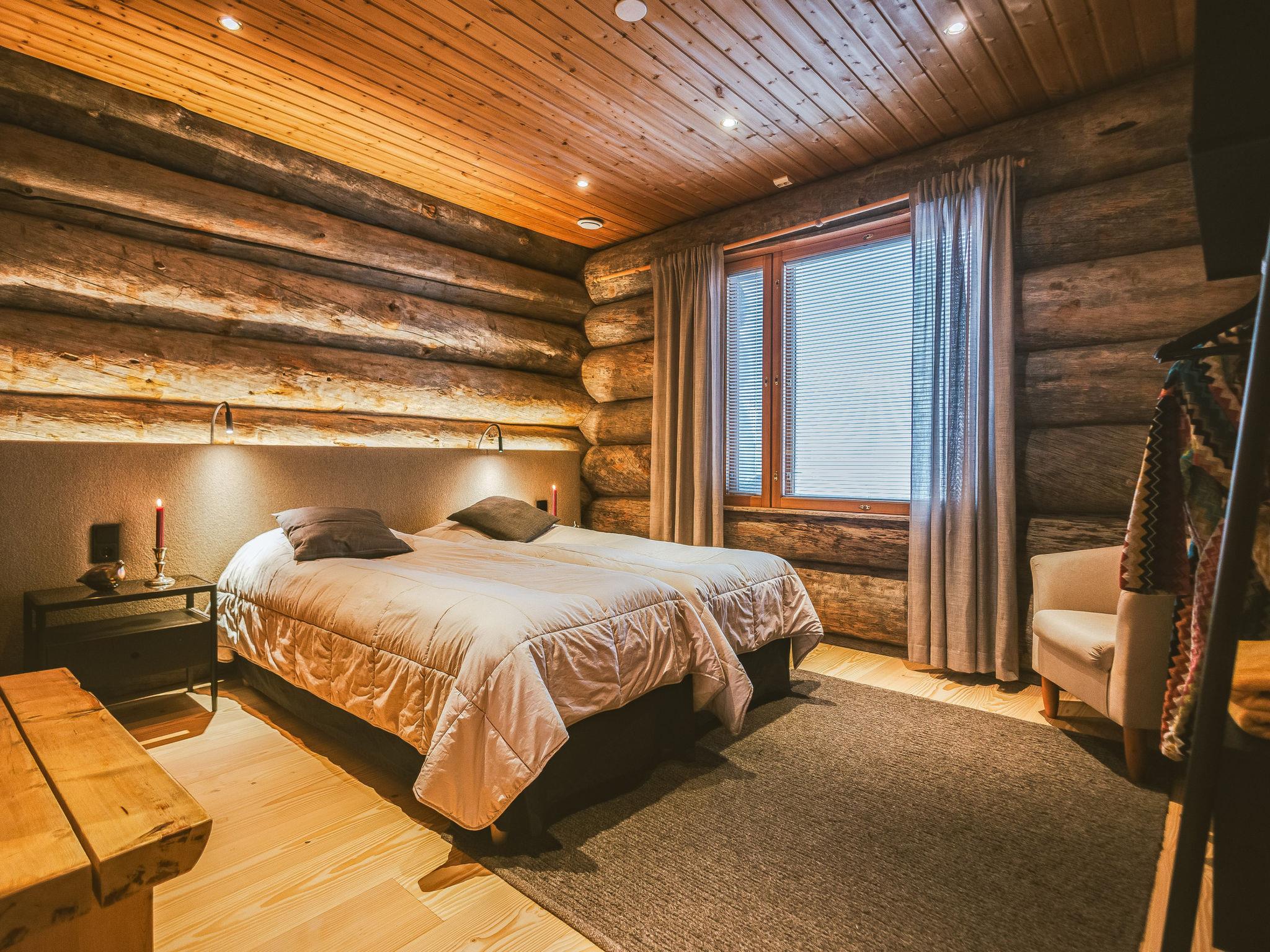 The 344-square-meter silver log cabin has a kitchen, living room, 8 bedrooms, fireplace room/meeting room, dressing room, washroom, sauna, 8 showers/toilets and a terrace.