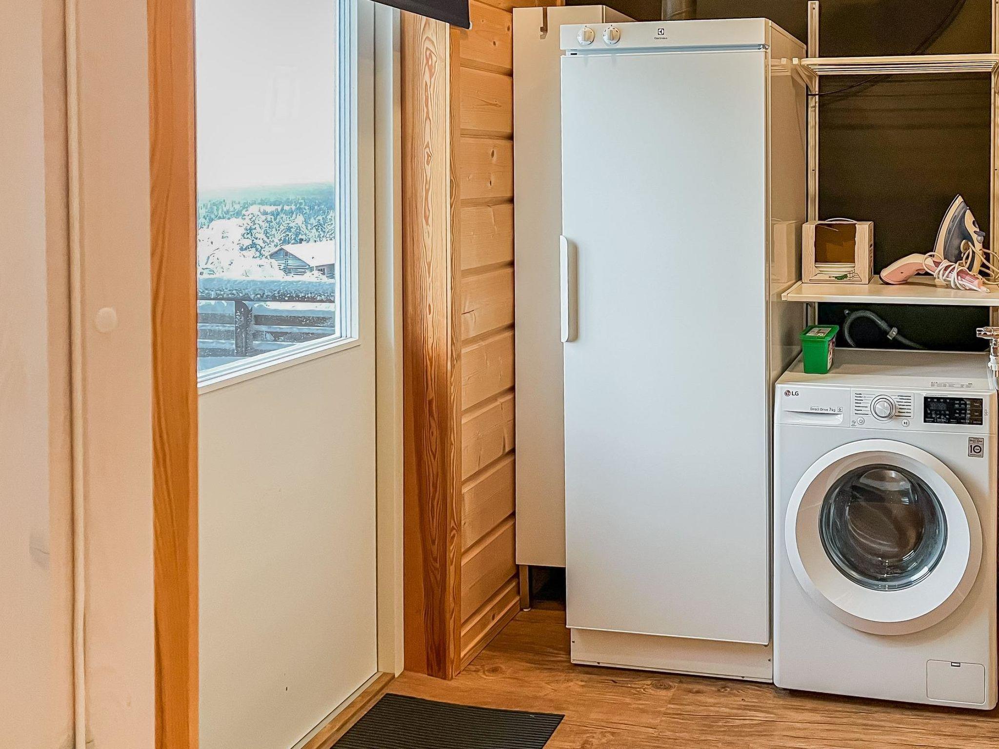 The 75-square-meter log cabin has a kitchen/livingroom, 2 bedrooms, a loft, a washroom, a sauna, a toilet, a utility room and a terrace. A ski maintenance room with a lubrication rack and iron and a carport.