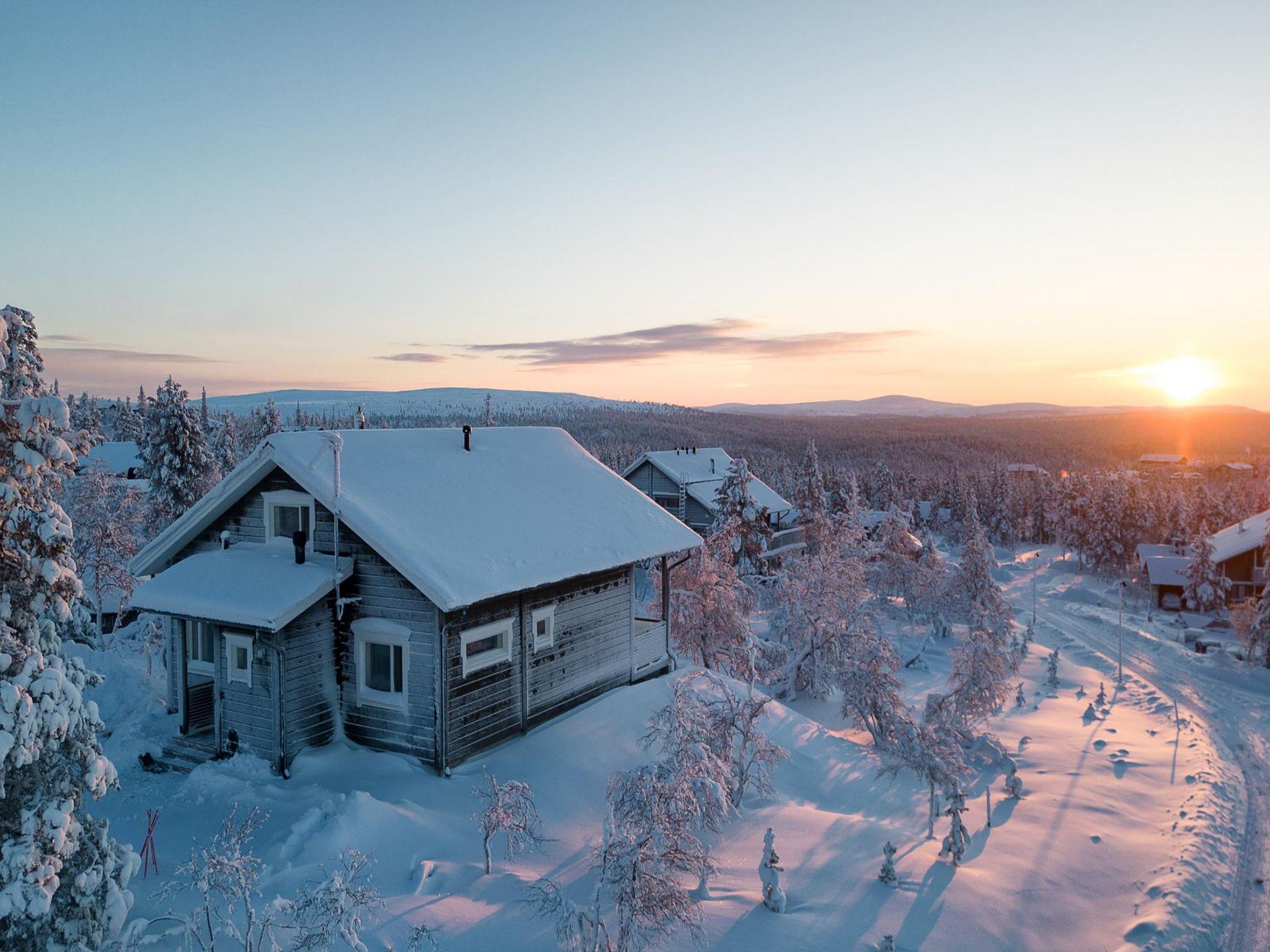 Spacious log cabin in the Etelärinne II area of Kaunispää in a quiet area. From the terrace, which is the width of the entire building, you can enjoy the wonderful view that stretches far to the fells. The center of Saariselkä is a suitable distance away (2.3 km).