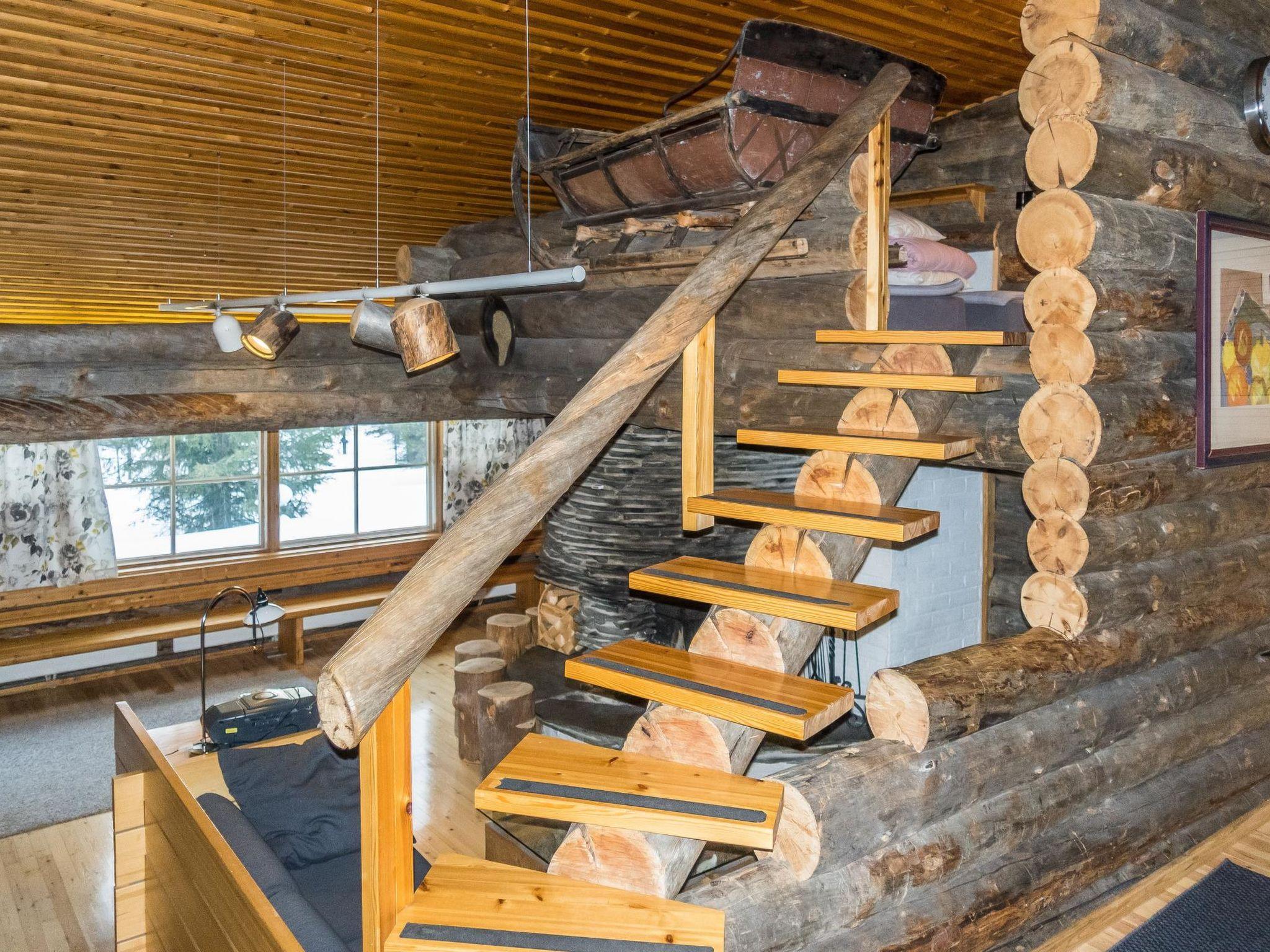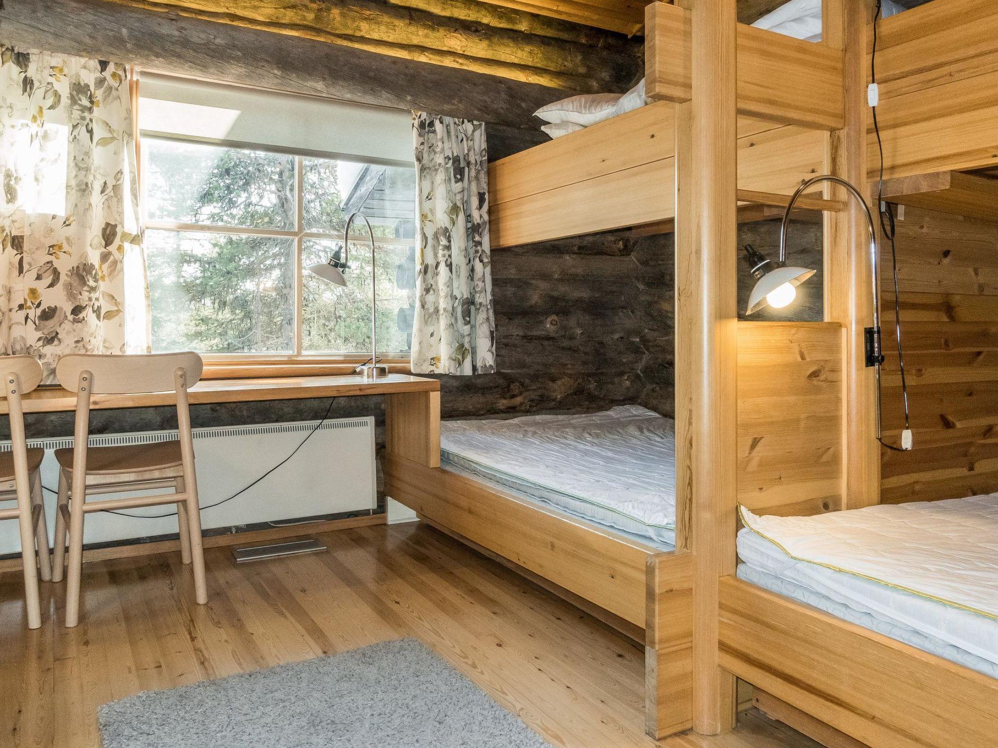 Living room with a fireplace made of natural stone, kitchen/dining area, 2 bedrooms with 2 bunk beds (lower bed 140 cm wide, upper bed 80 cm wide), a bedroom with a bunk bed (lower bed 140 cm wide, upper bed 80 cm wide), loft with 2 mattresses, electric sauna, shower room/toilet and toilet.