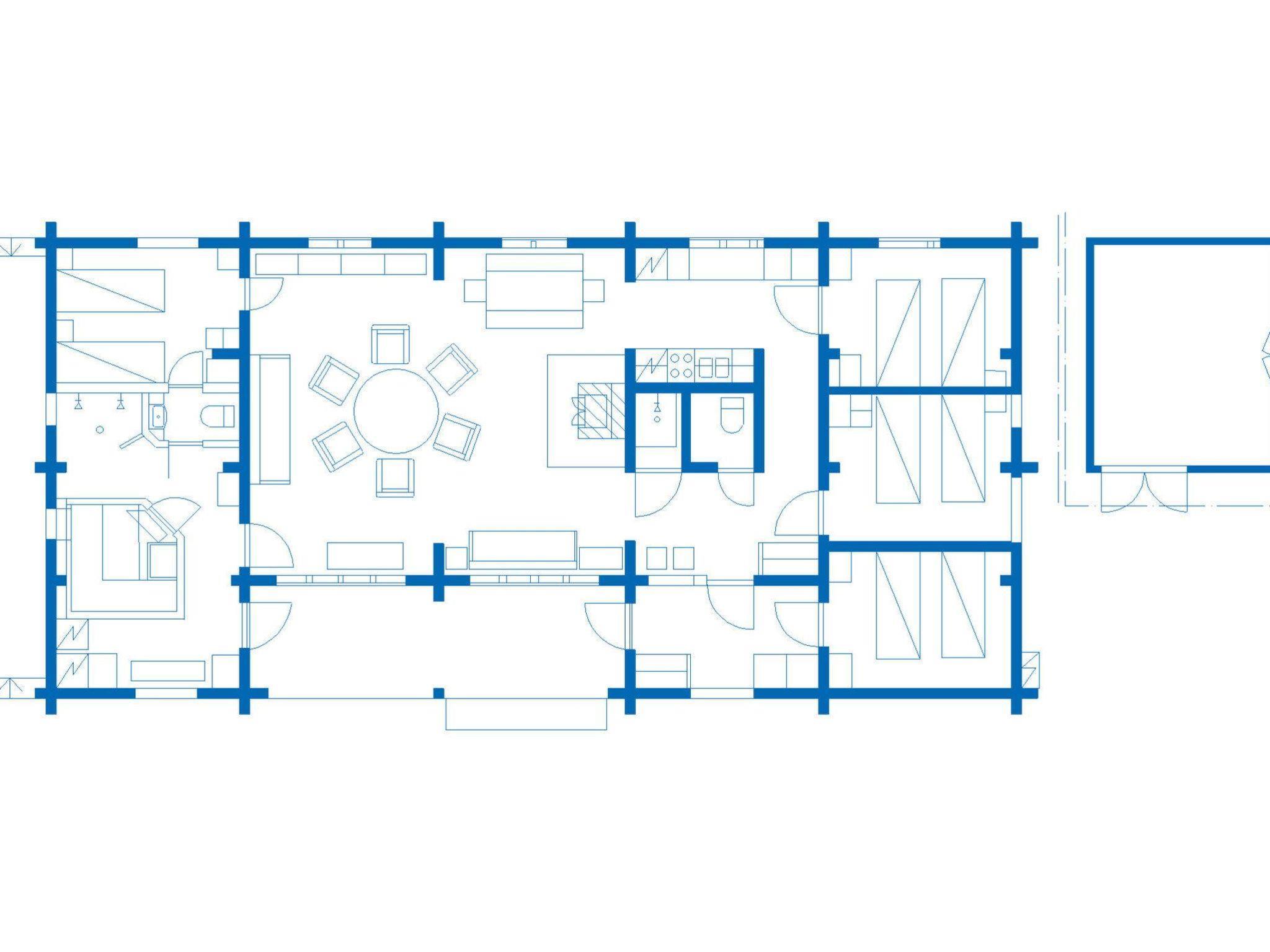 One-storey log cabin in Saariselkä center, renovated in 2016. Area 150 m² where combined kitchen/living room, 4 bedrooms with 2 beds each, electric sauna, bathroom with 2 showers, dressing/utility room, 2 toilets and terrace.
