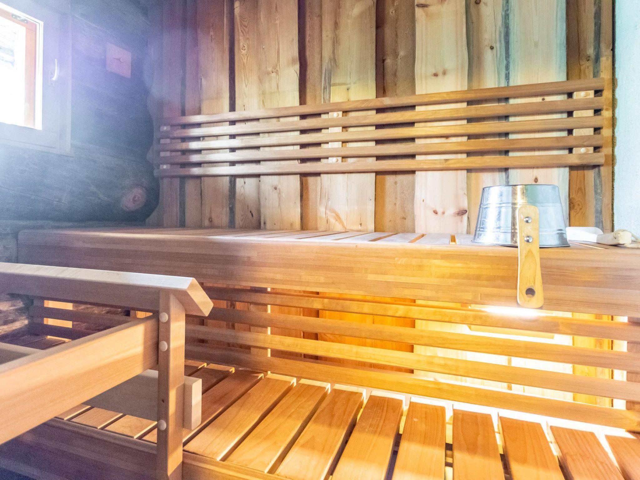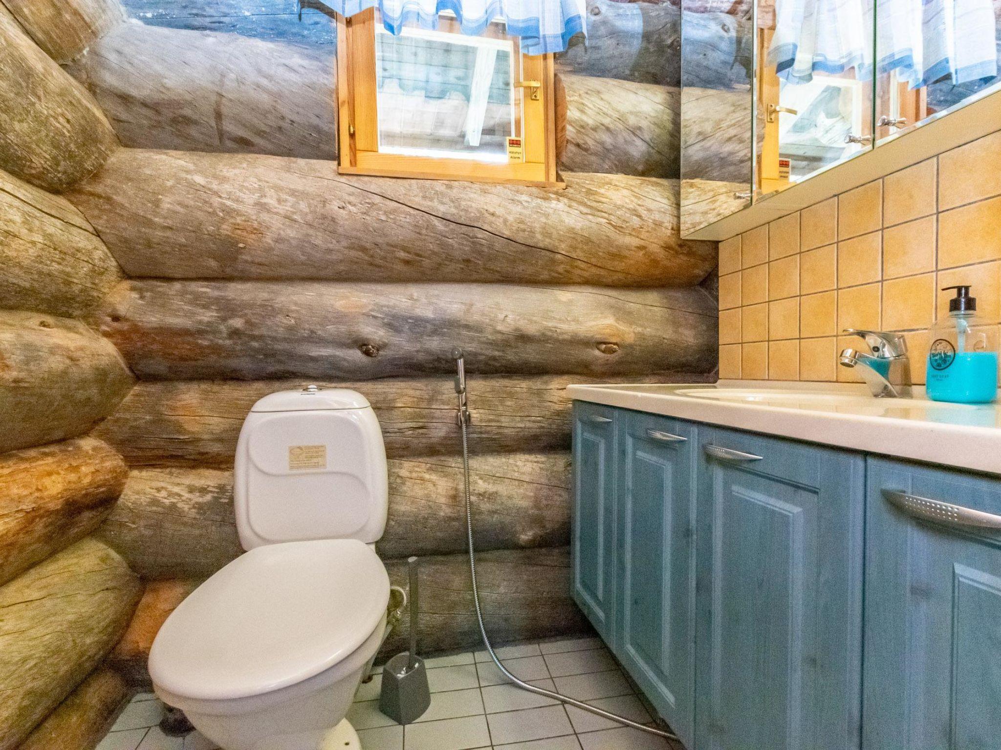 The 80-square-meter silver log cabin has a kitchen/living room, 2 bedrooms, a bathroom, a sauna, a toilet and a loft.