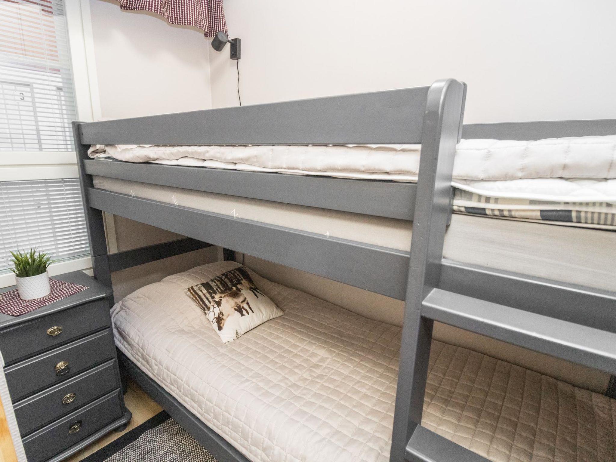 Restful sleep comes in the apartment's bedroom, which has two beds. There is a bunk bed in the alcove, which closes with a folding door.