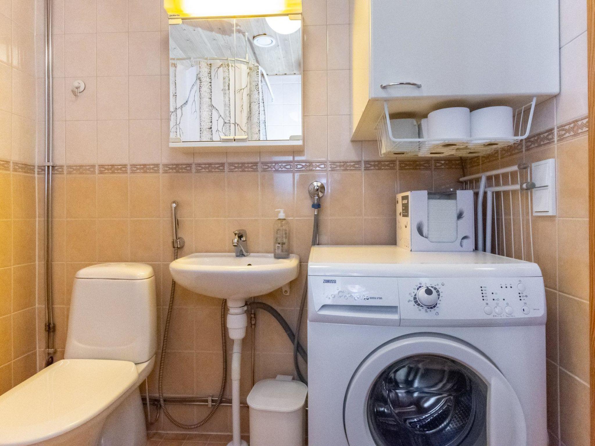 In a 25-square-meter apartment, there is a kitchen/living room, a washroom/toilet, a sauna and a small storage for firewood. Common ski maintenance room in Outapailakka premises.