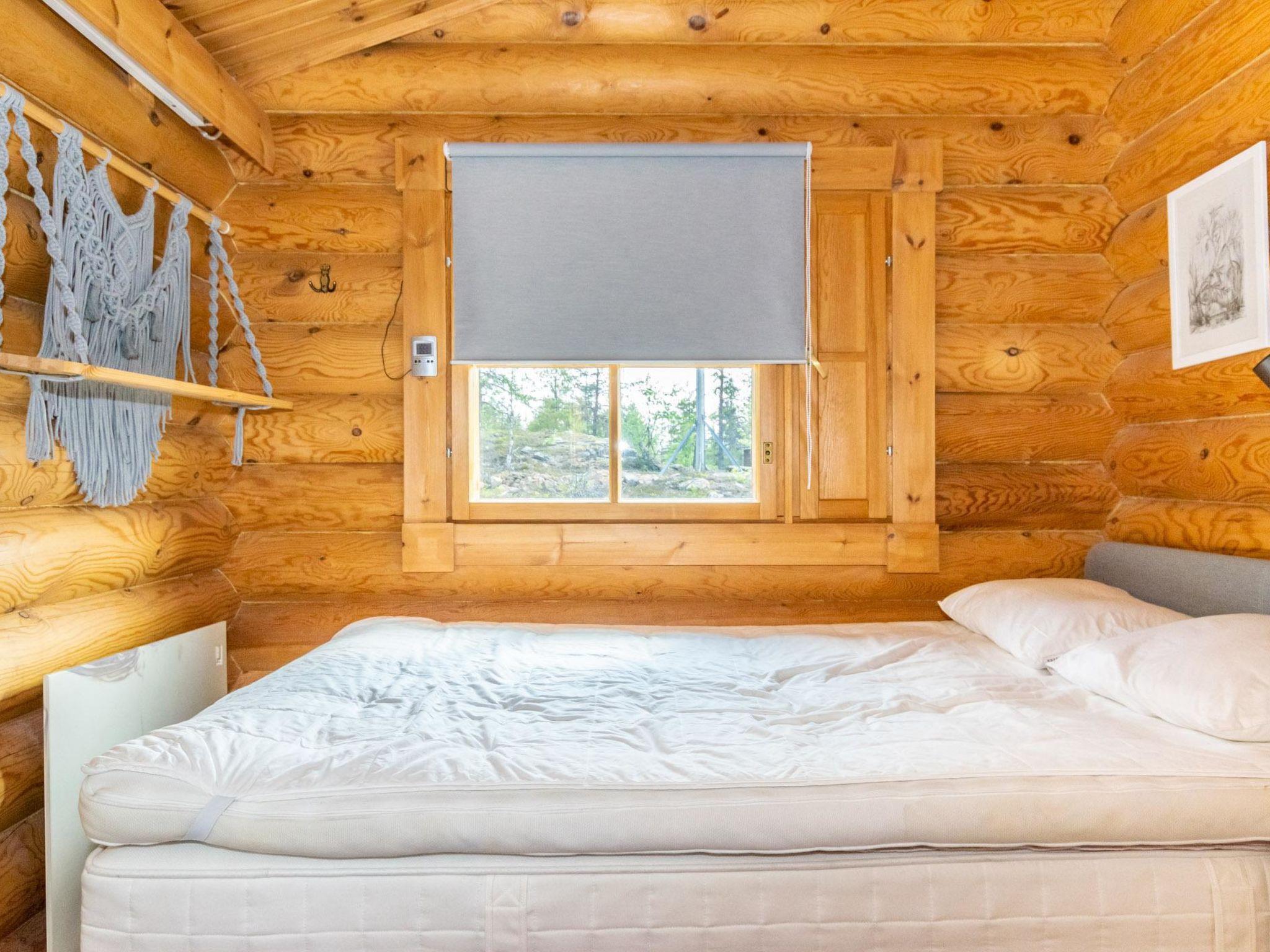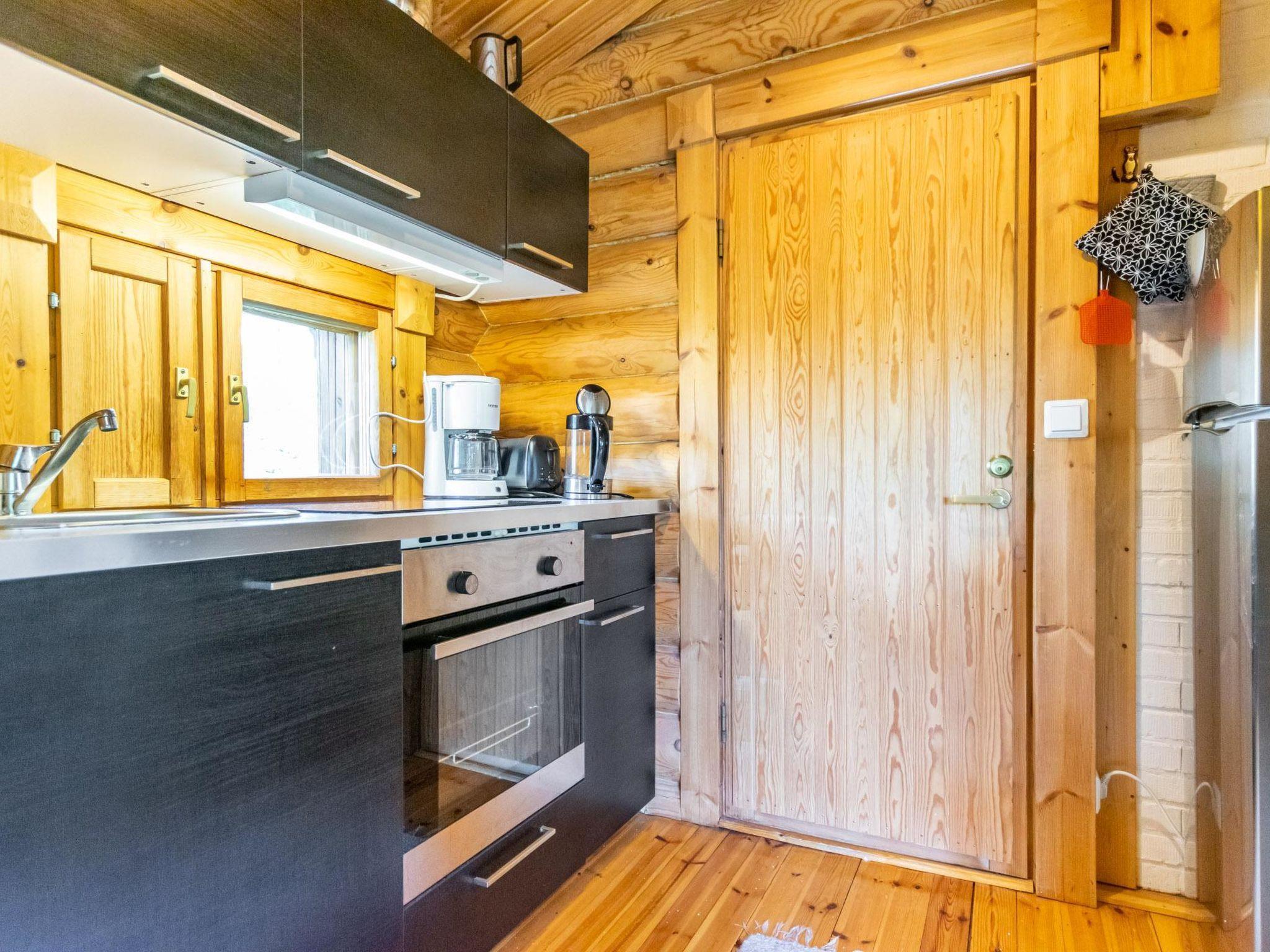 The 50-square-meter cabin has a kitchen/living room, a bedroom, a washroom, a wood-heated sauna, a toilet and a terrace. A shared beach, fireplace (only on summer) and wood storage with another cottage in the courtyard, Kelokoto. The car's heating plug is in the wall of the adjacent cabin, a long extension cord is used.
