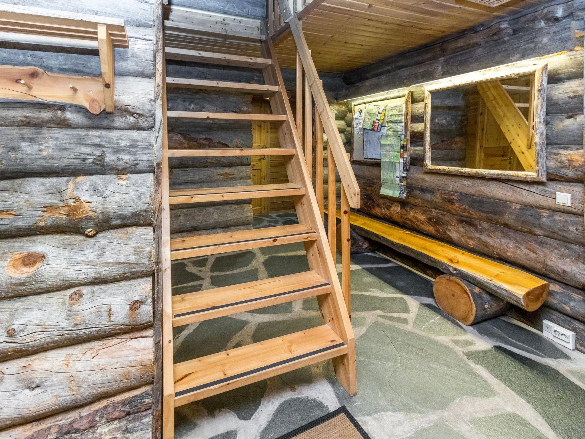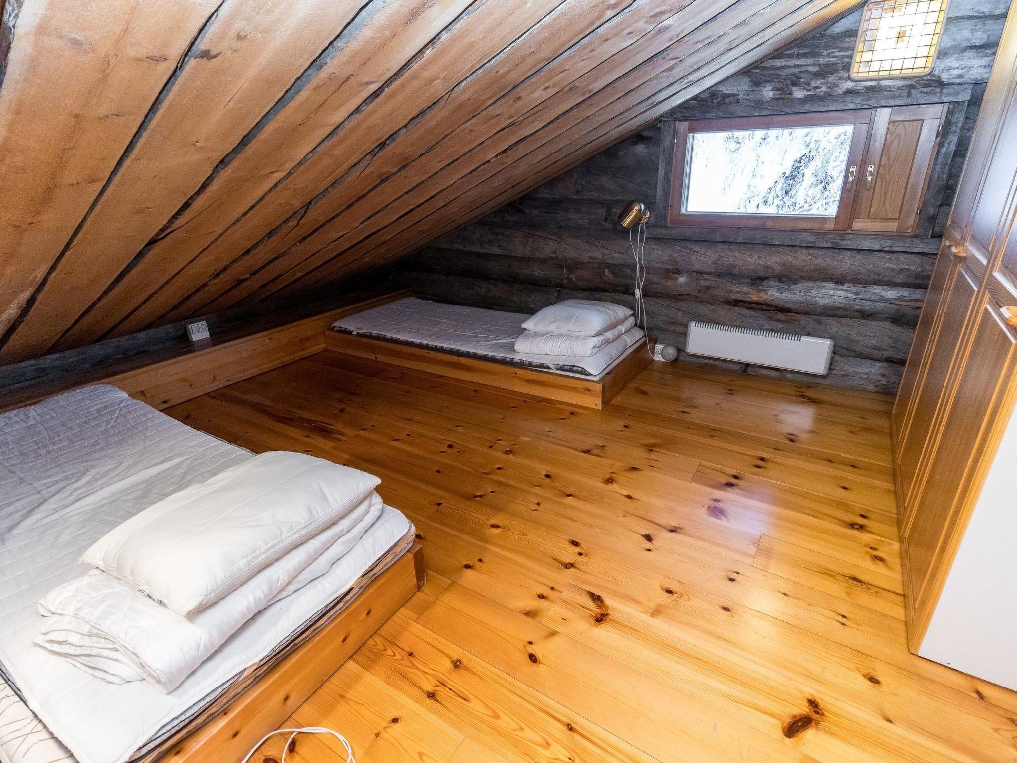 The 90-square-meter cottage has a kitchen/living room, 2 bedrooms, a loft with 2 alcoves, a dressing room, a washroom, a sauna, a toilet and two terraces. The terraces are in such a way that one terrace is connected to the entrance and the other is connected to the sauna section. In addition, a ski maintenance room with a lubrication rack and iron and an infrared heater.