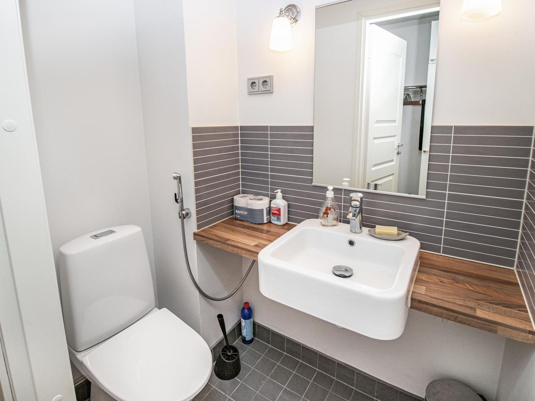 At the end of the day, the sauna provides an excellent space to relax and rejuvenate. In addition to the sauna and bathroom, the apartment includes a separate WC for added convenience.