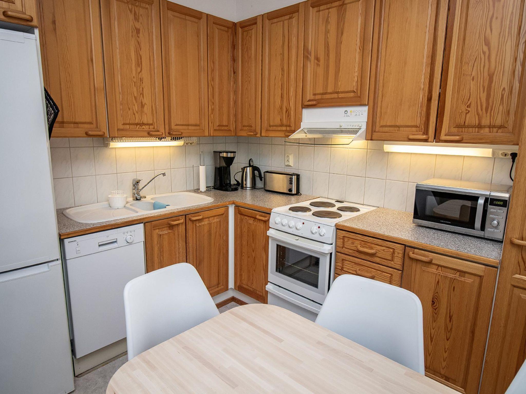 The open-plan kitchen and living room feature a sofa bed for 2 person and an atmospheric Tulikivi fireplace, perfect for unwinding after a long day. The bedroom includes two comfortable beds (sizes 80x200cm). Additionally, the apartment offers an electric sauna, a bathroom with a shower, a toilet, and a small balcony. Living area: 43 m².