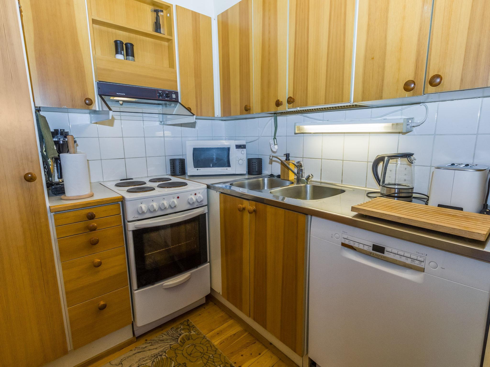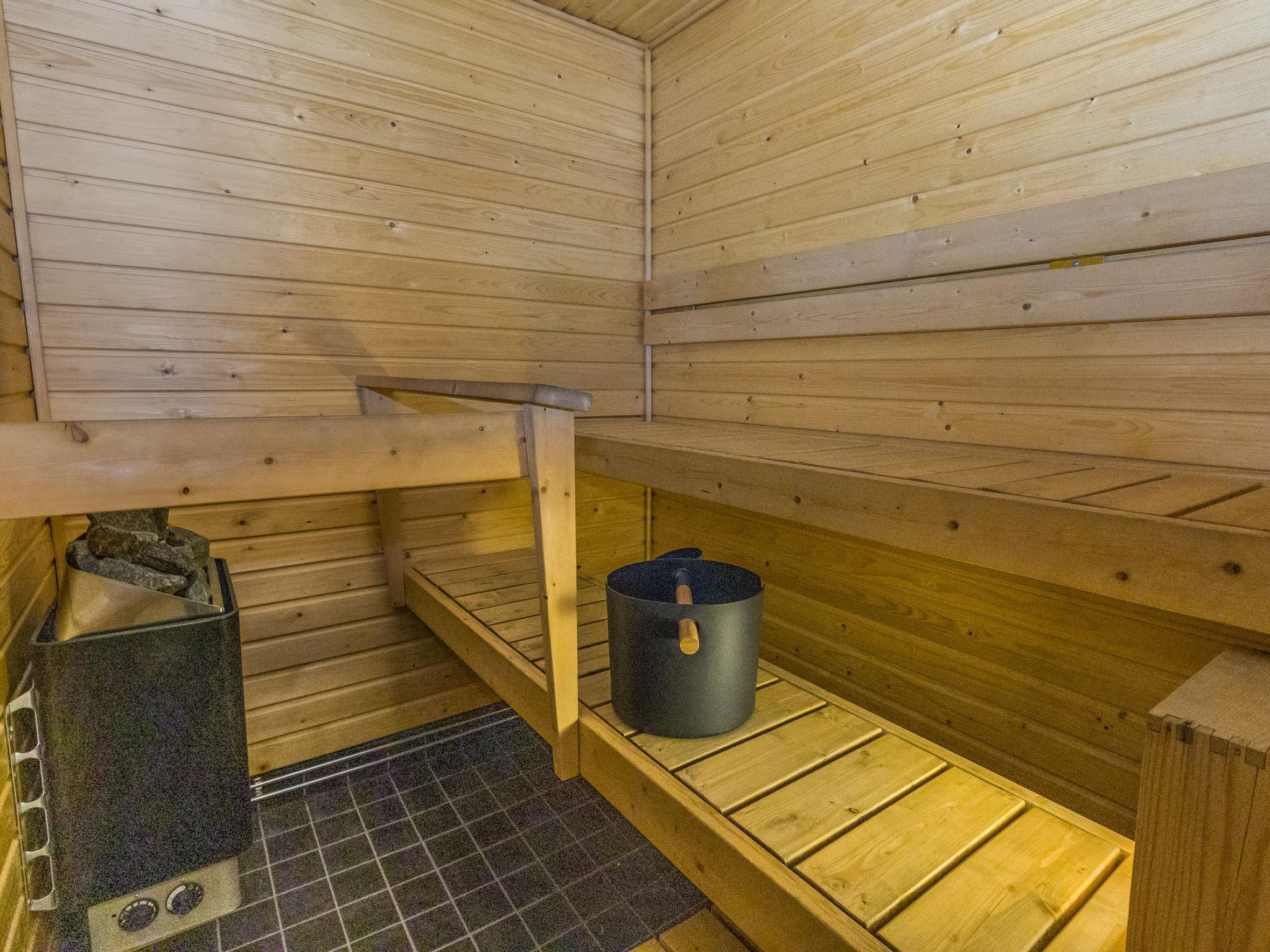 This 73 m² end-unit apartment in a row house is ideal for a family or a small group. The ground floor features a spacious living room with a fireplace and an open-plan kitchen/living area. The kitchen is compact yet functional — all the essentials are well organized, and the space is cleverly utilized. The open layout makes cooking and dining together convenient and enjoyable. The downstairs bedroom has two 80 cm single beds. There is also a separate WC with a washing machine, as well as a sauna and a washroom for relaxing at the end of the day. The loft, which is mostly full standing height, includes two 80 cm single beds and two sofa beds (140 cm wide when opened).