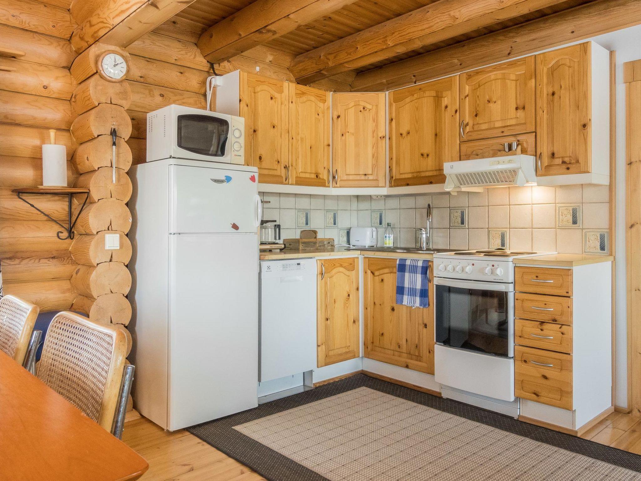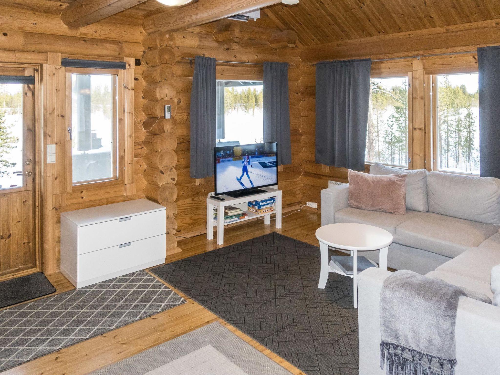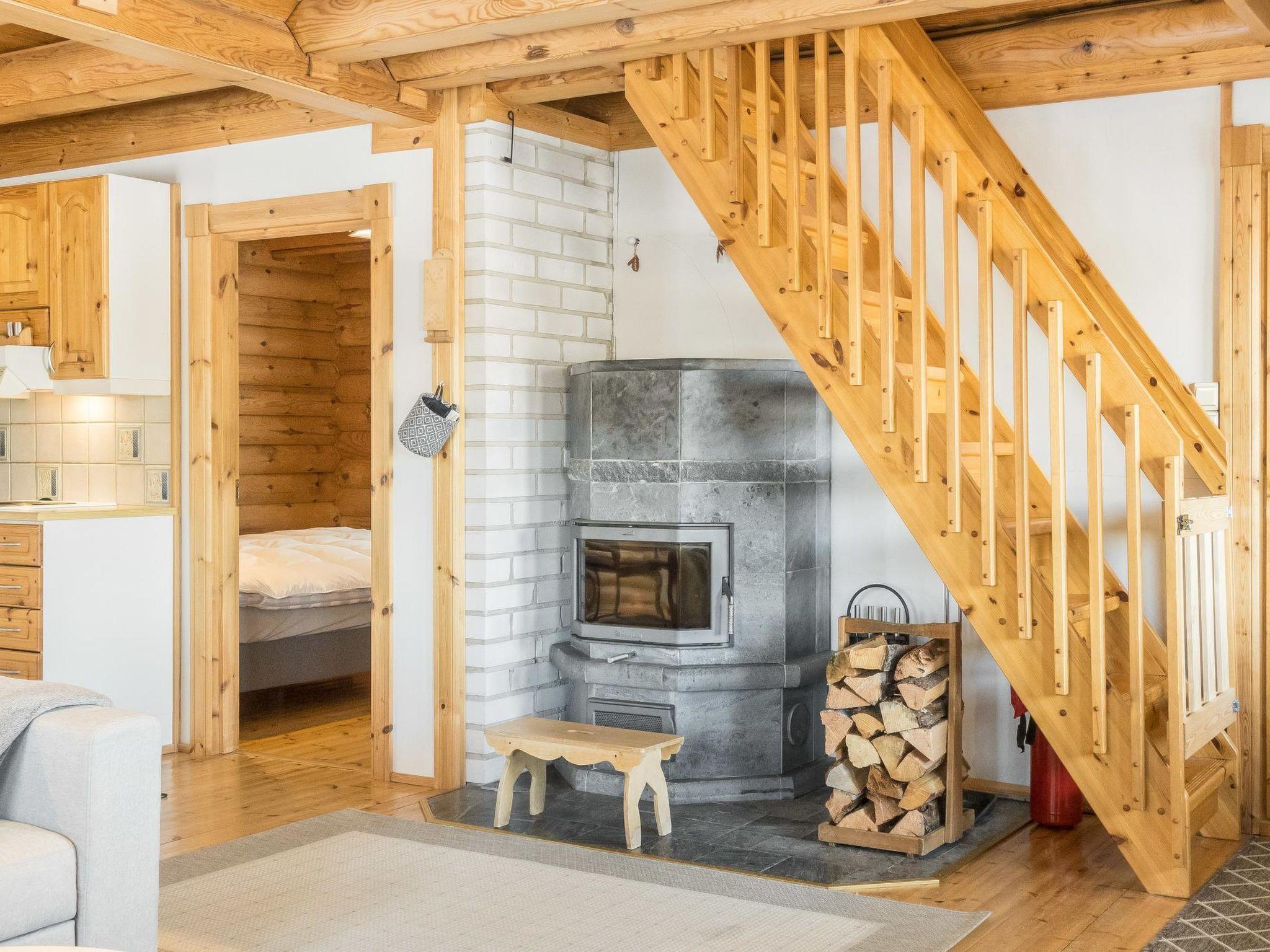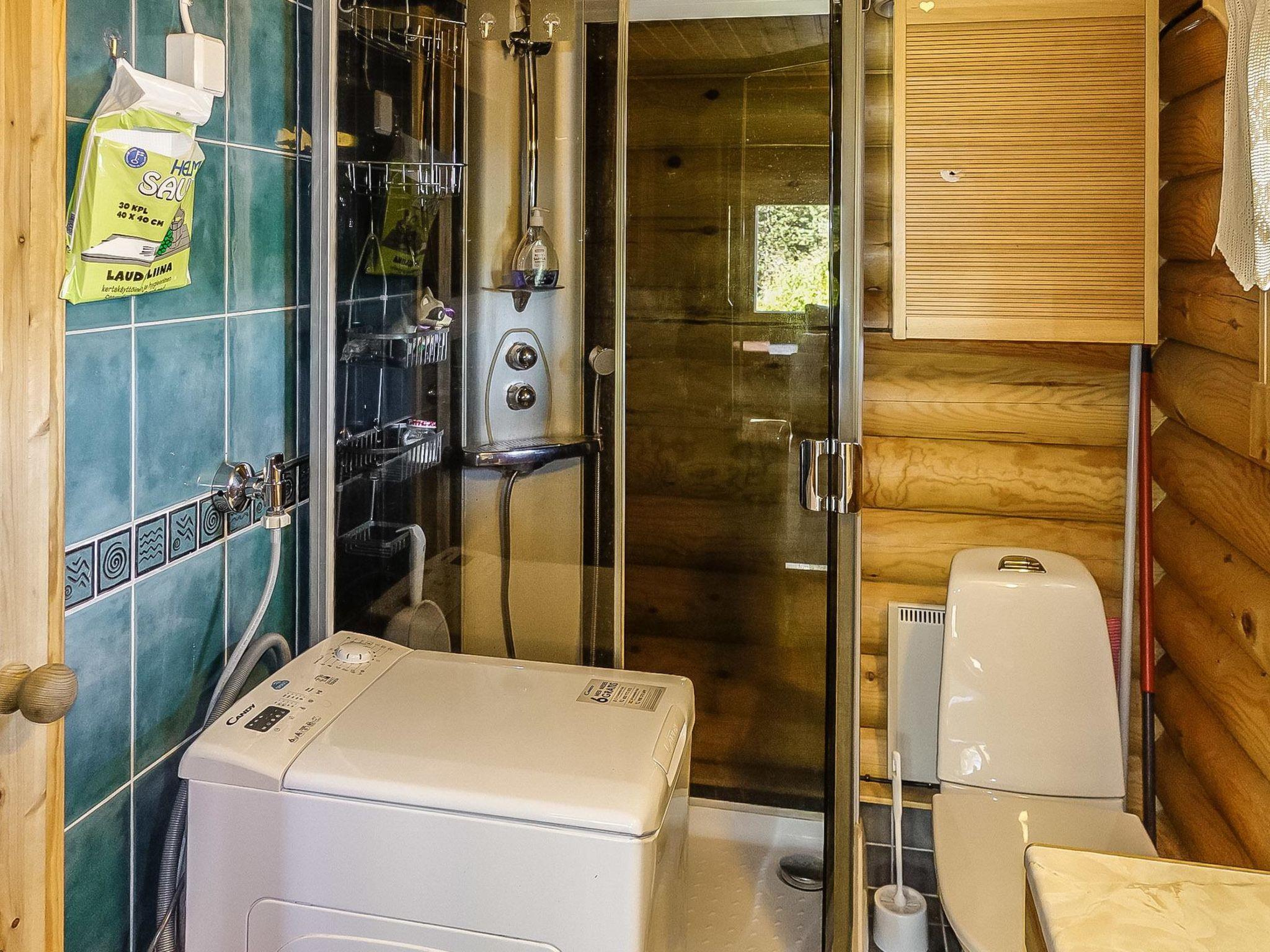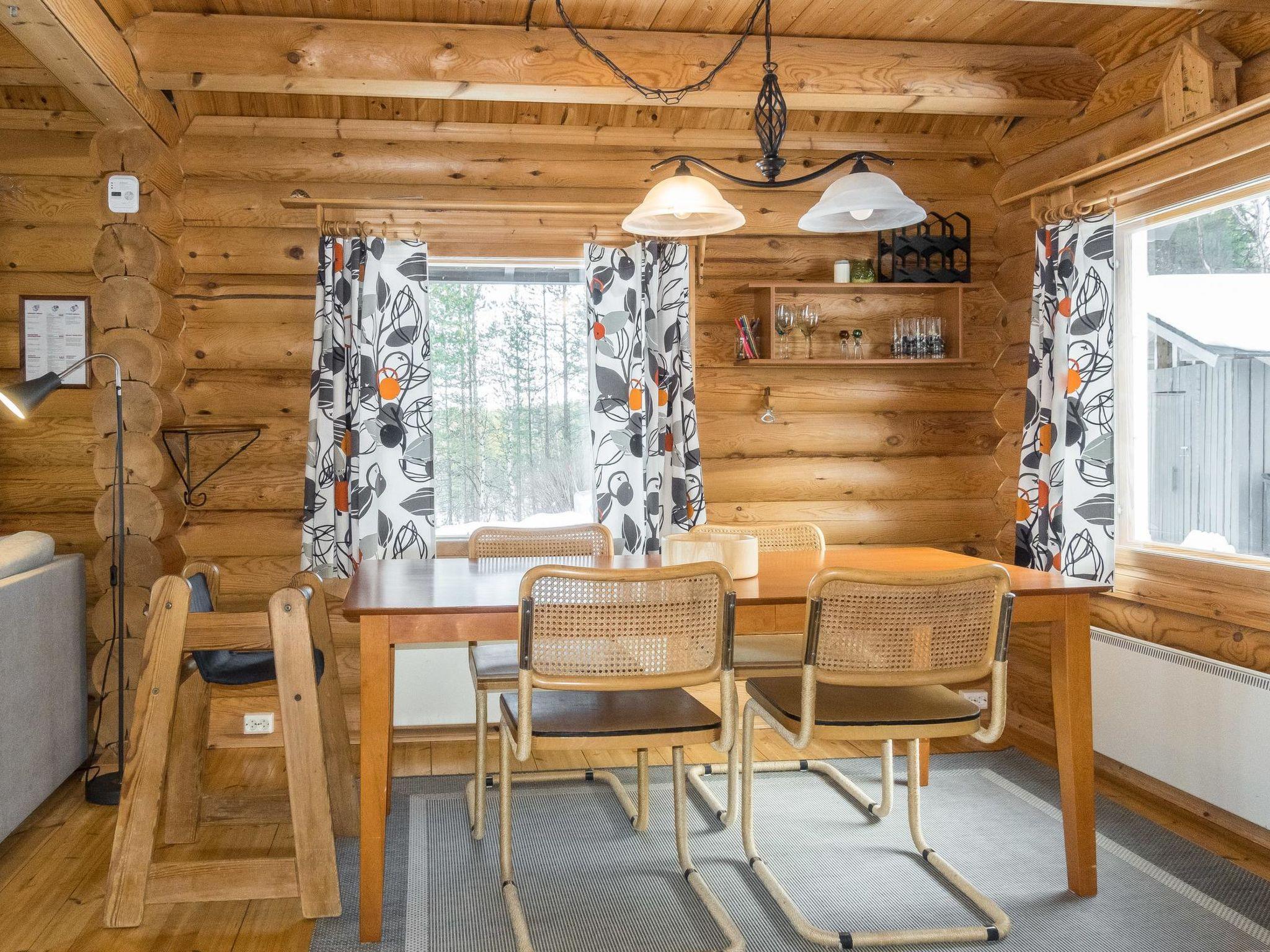 Round log cabin, built in 2005. Living room/kitchen, with sofabed for 1-2 person. Double bed in bedroom, bouble bed in loft, + 1 separate bed (80cm wide). Sauna, washroom (shower cubicle)/WC and covered porch.