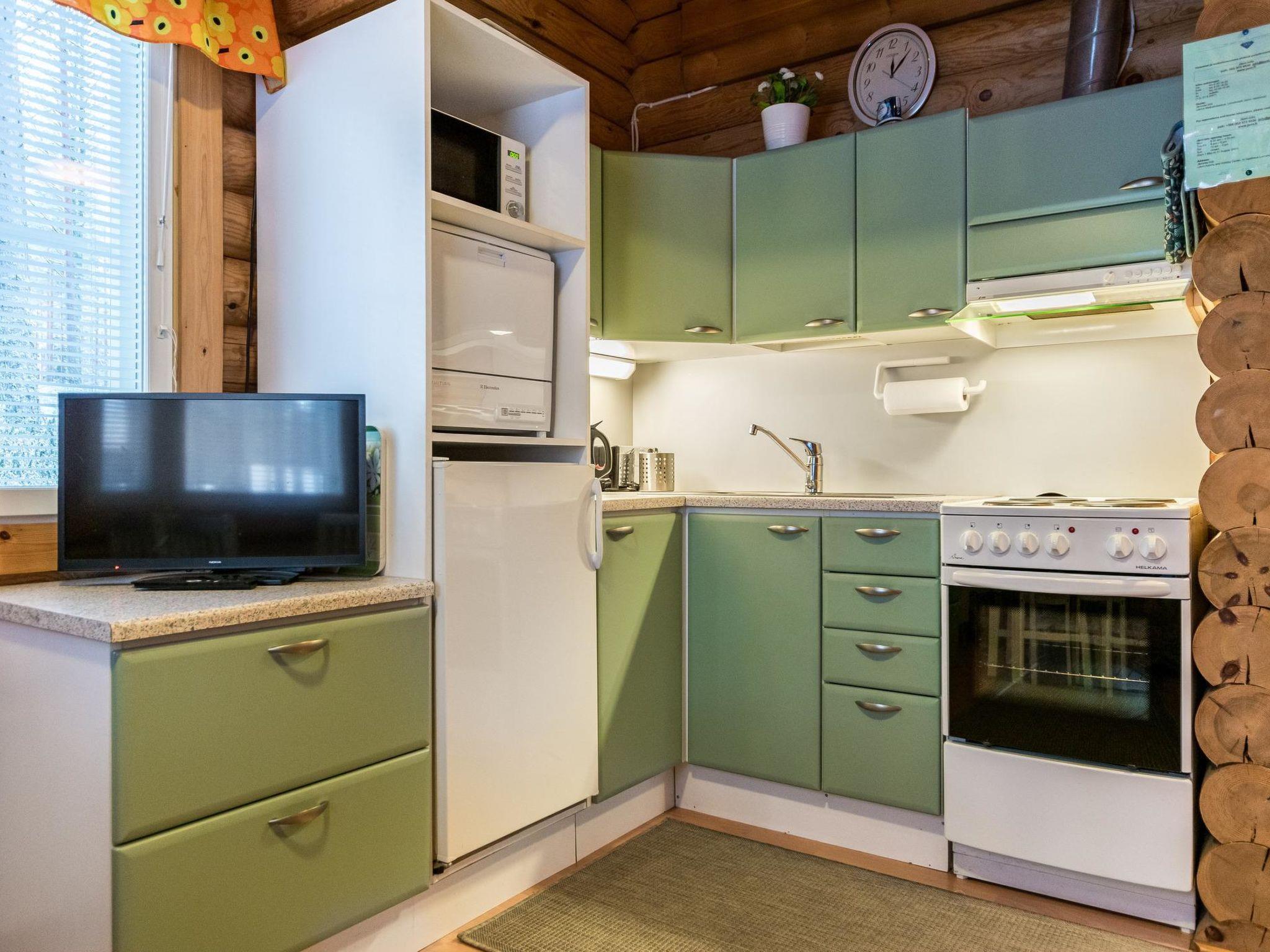 Orvokki apartment 78 m² (middle): a cozy apartment for 5 people on two levels. The ground floor has a living room with kitchen, bedroom, bathroom / toilet and sauna. The loft also has a living area and beds for three. The soapstone fireplace downstairs creates a cozy atmosphere. The downstairs bedroom has 2 beds, the loft has 3 beds and a cot.