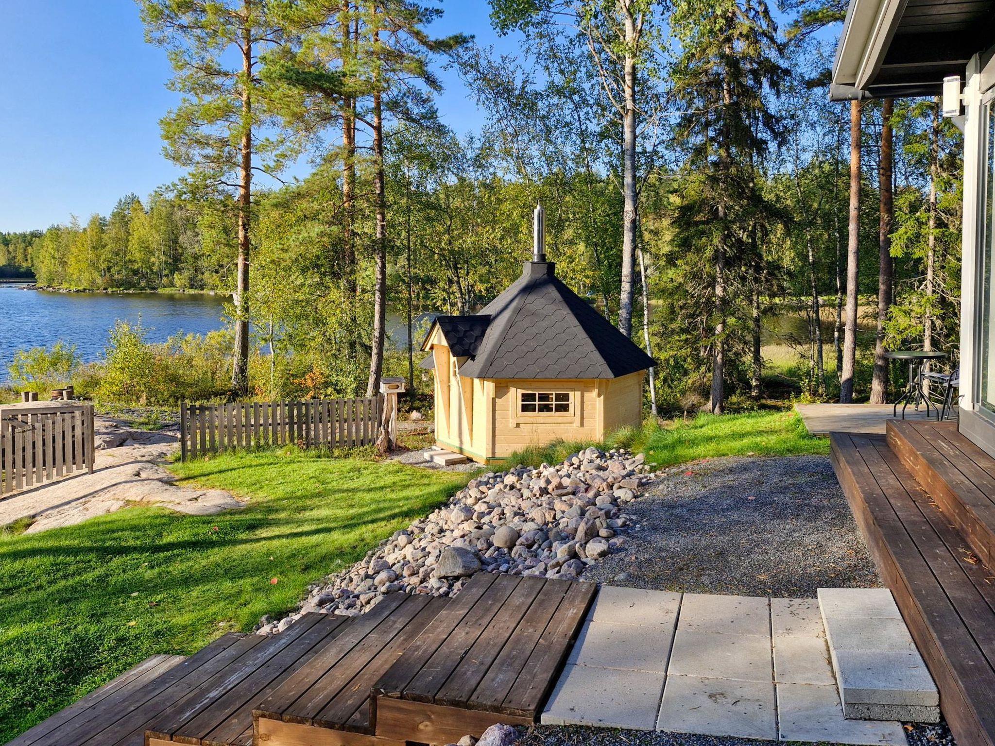 A wood-heated sauna hut (built in 2024) on the beach. There's no water supply or electricity, water for the sauna stove must be brought from the main cottage, lighting with LED lanterns, washing in the main cottage's shower.