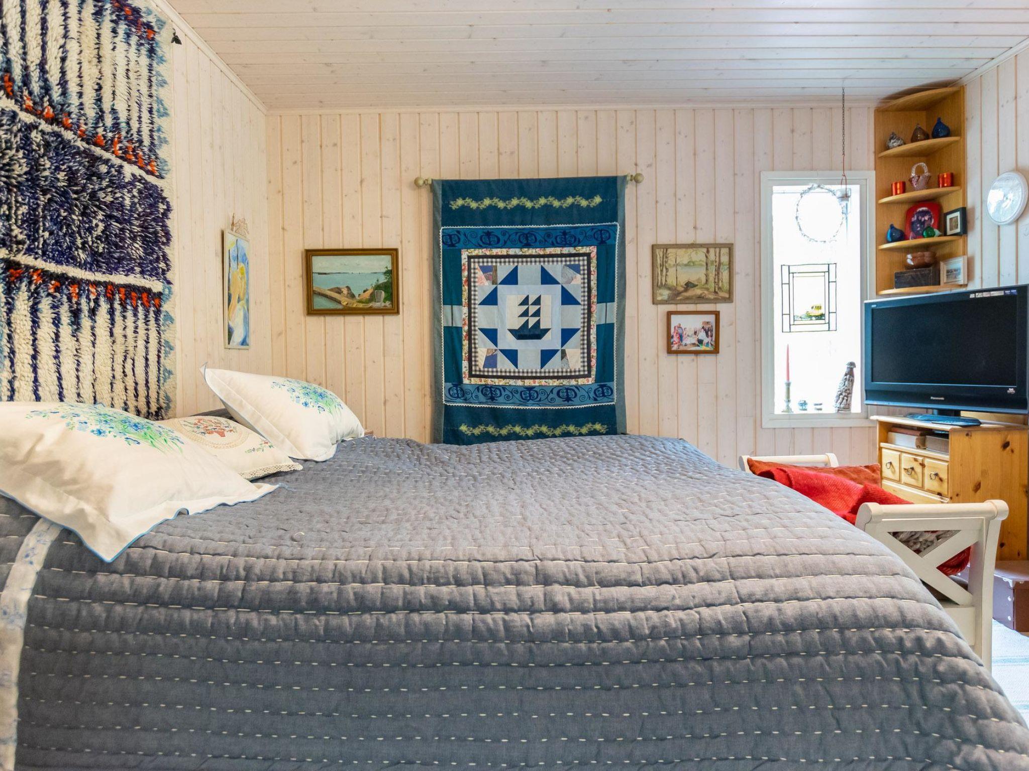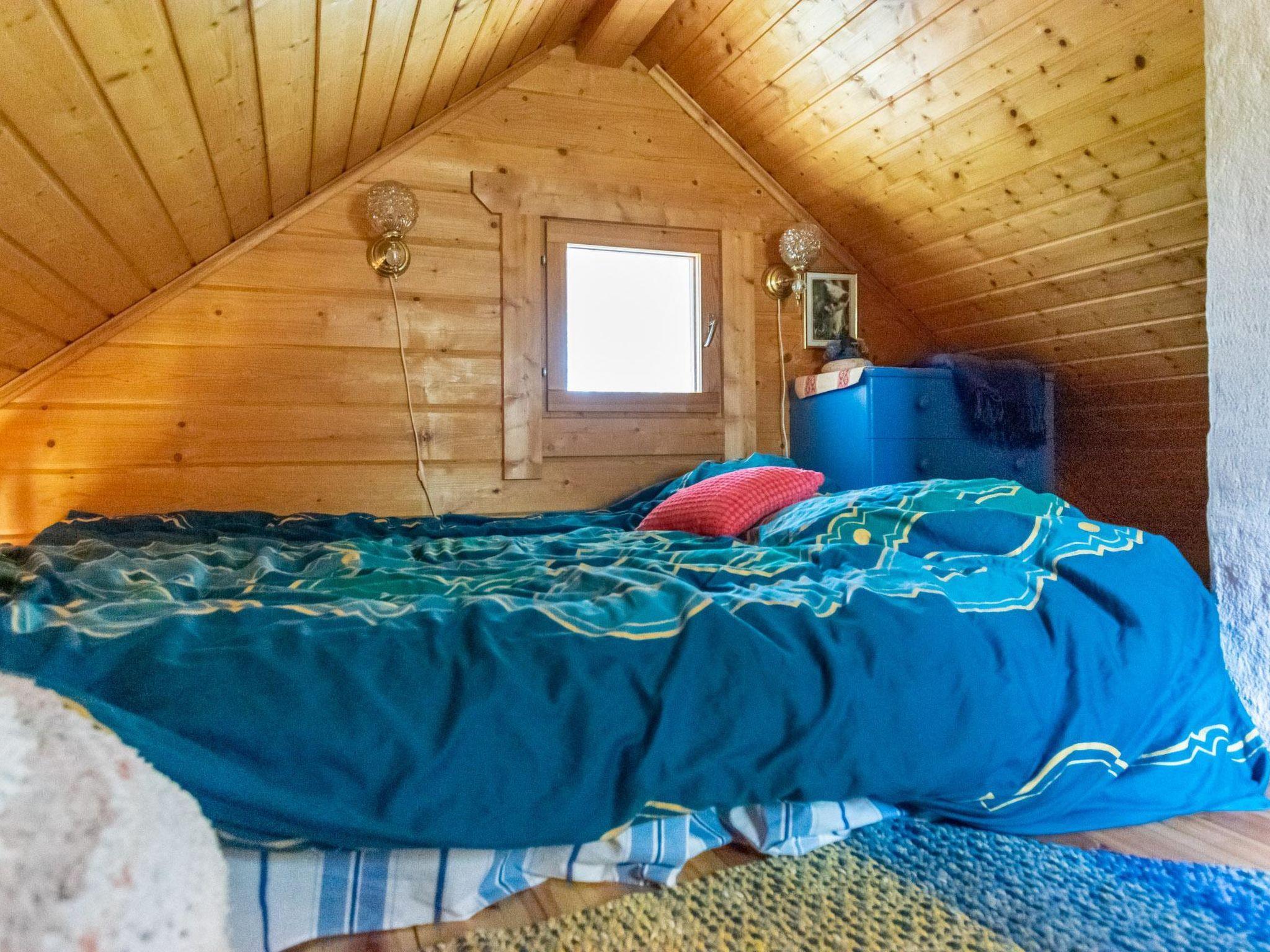 The lakeside sauna has a steam room with a wood-burning sauna stove and a shower. In the fireplace room, there's a small kitchen and a sleeping space for two in the loft (mattresses on the floor). Steep stairs from the fireplace room to the loft. The fireplace room is also equipped with an air source heat pump for heating and cooling.