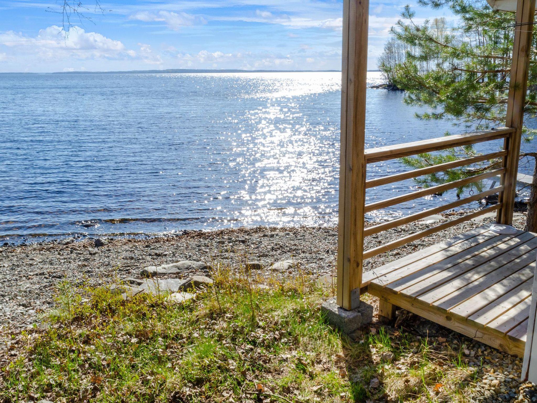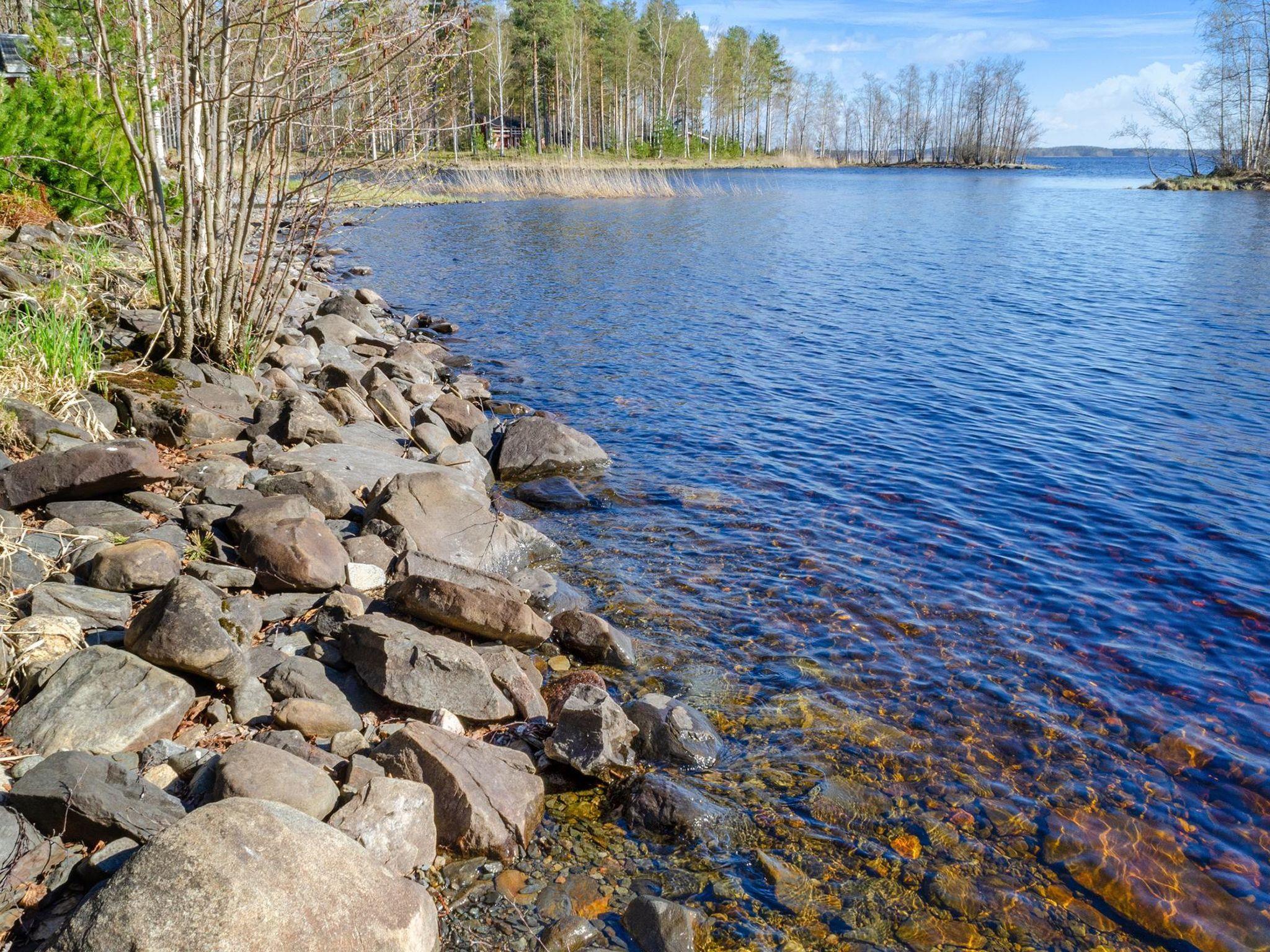 18 km to the north from Joensuu, lake Pyhäselkä 6 m (361,4 km²), shallow, gently deepening bottom with stones, beach opens to the southwest, 3-person canoe and pier.