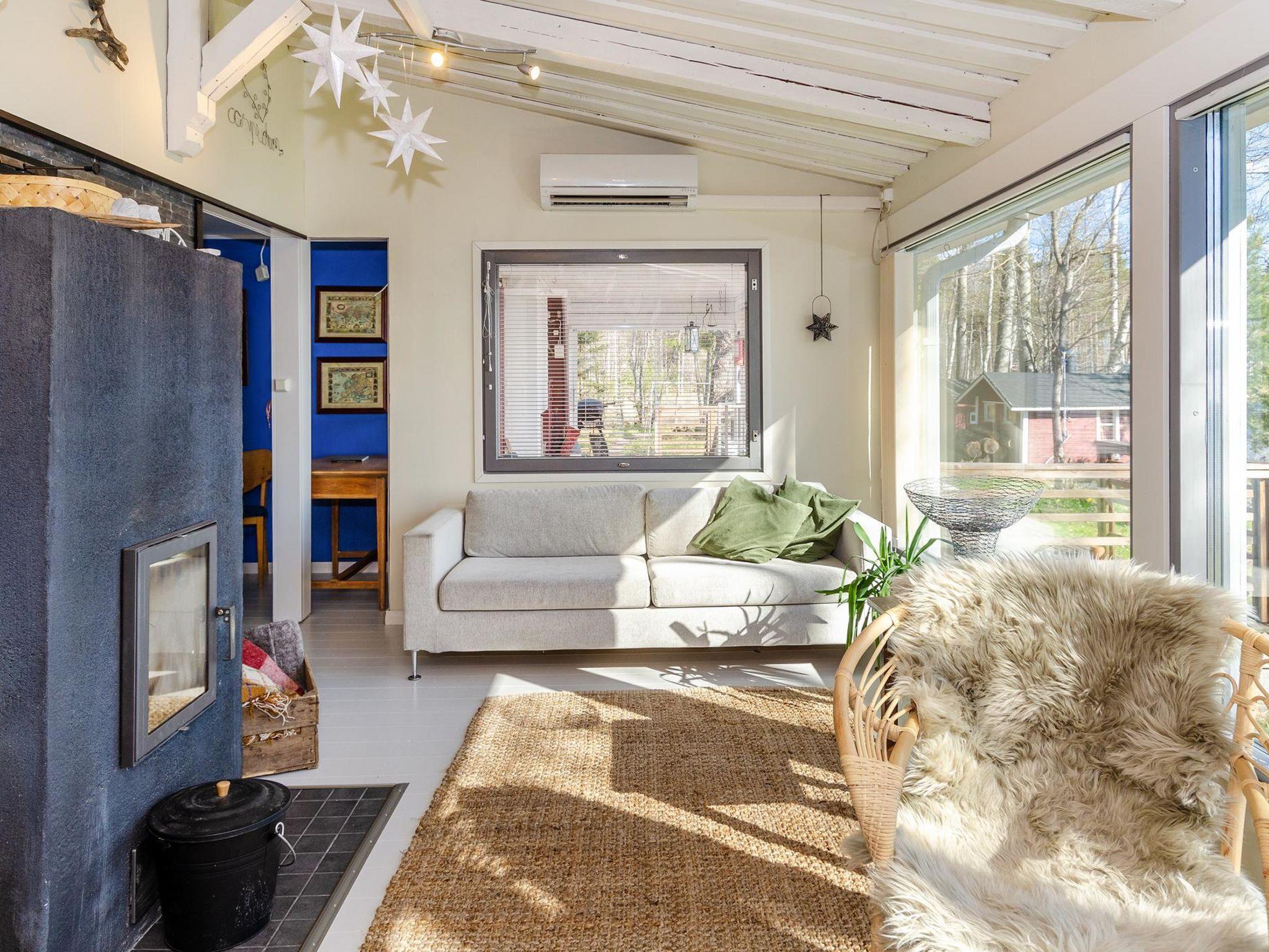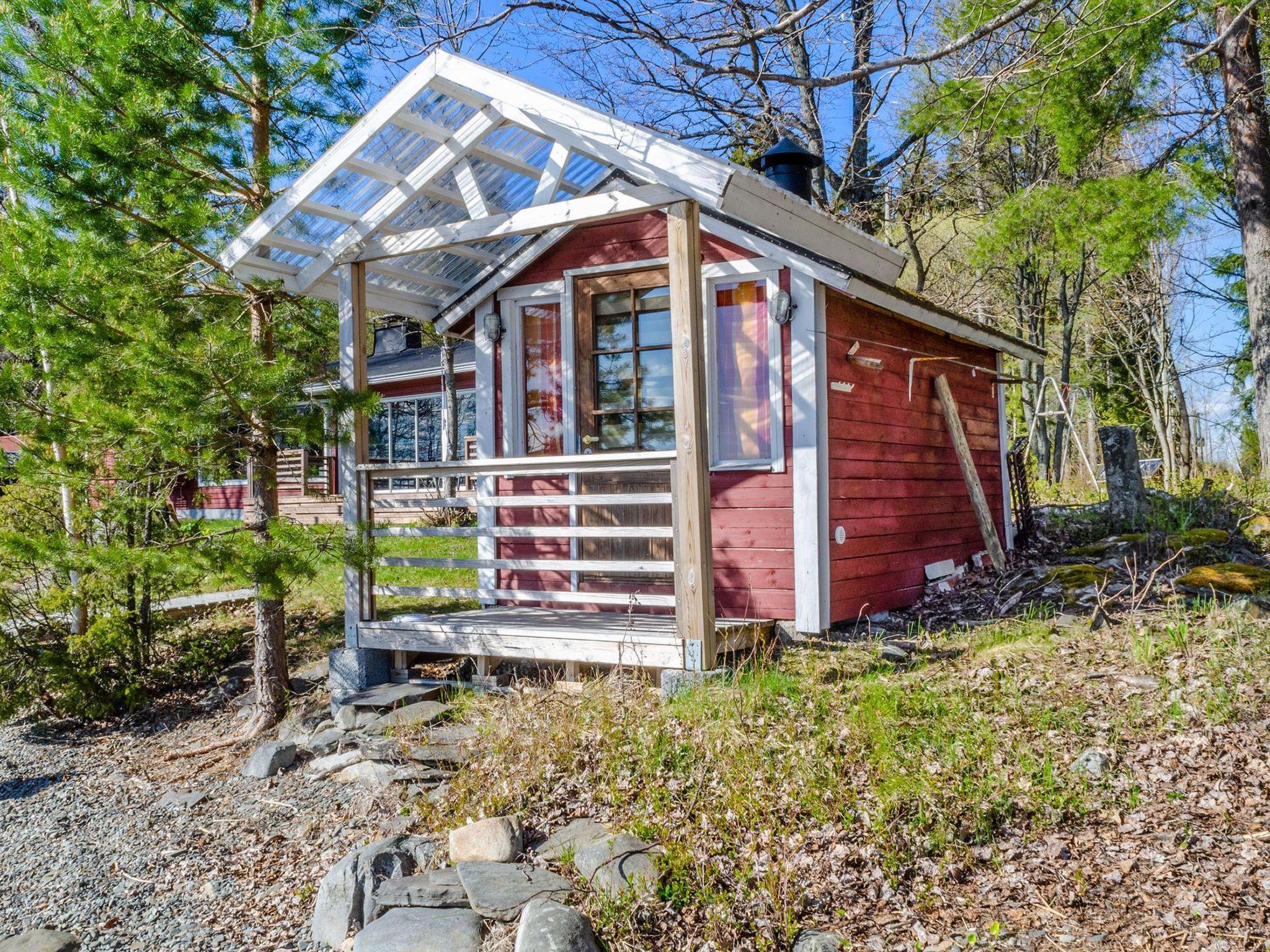 Wooden house, built in 1959, renovated in 2018. Living room/kitchen, bedroom with double bed, bedroom with 2 beds. Wood burning sauna, glazed terrace and extension terrace without glazing.