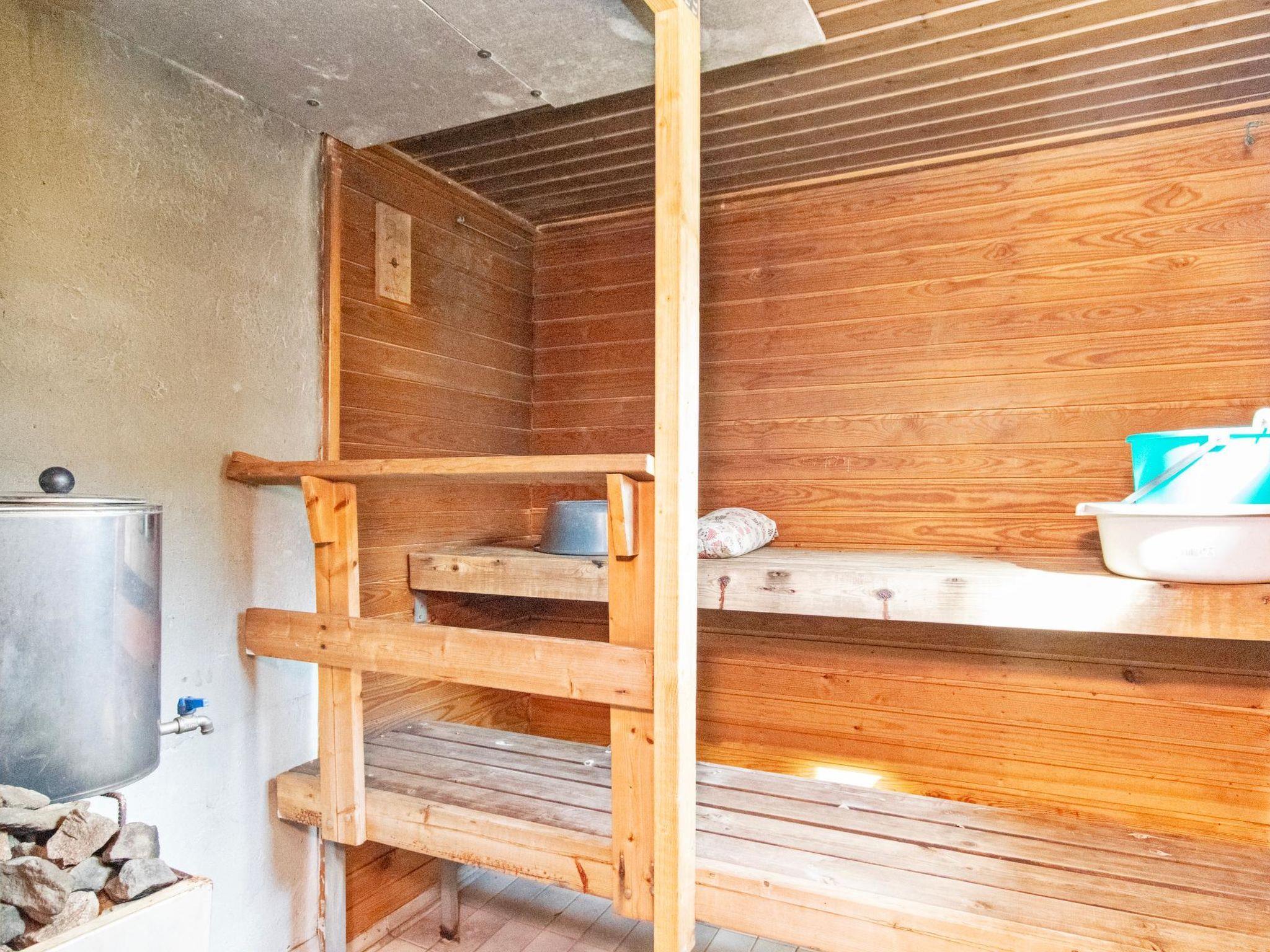 The lakeside sauna, built in 1978, includes a dressing room and a wood-burning sauna stove with a water heater tank. Water must be carried from the lake. The sauna is available year-round. There is also a cooking hut.