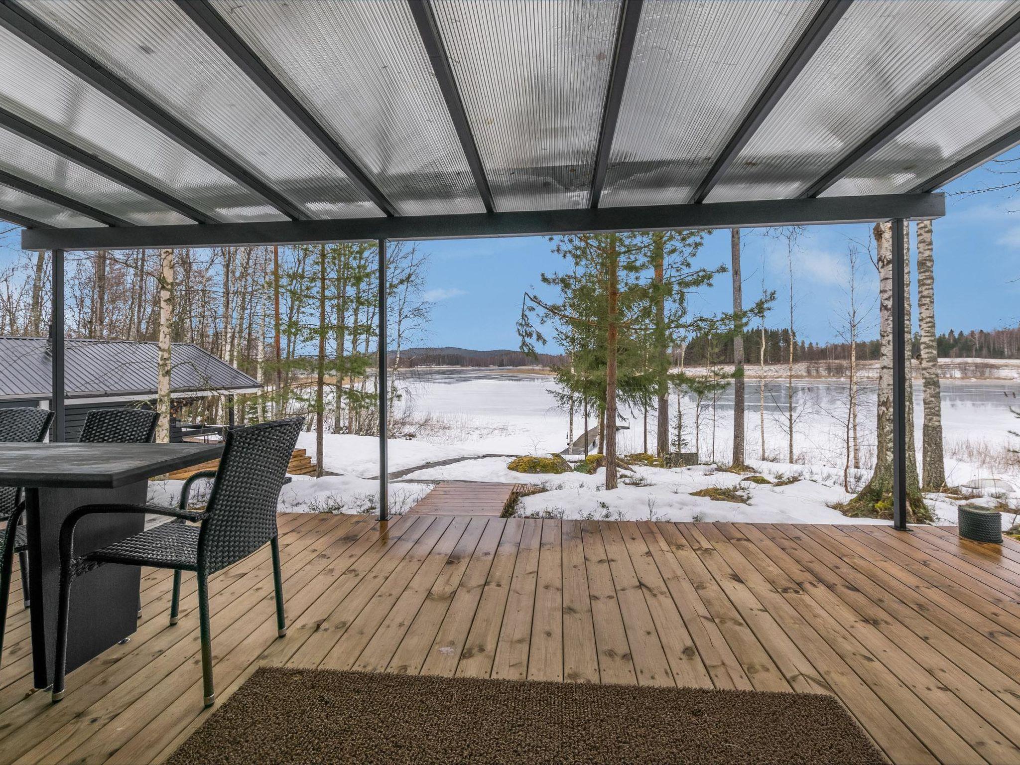 The two sofas in the cabin's living area are sofa beds, which convert into extra beds of 140 x 200 cm and 160 x 200 cm. The covered porch has furniture for 8 people and a spacious gas grill. The main cottage's terrace is glazed.