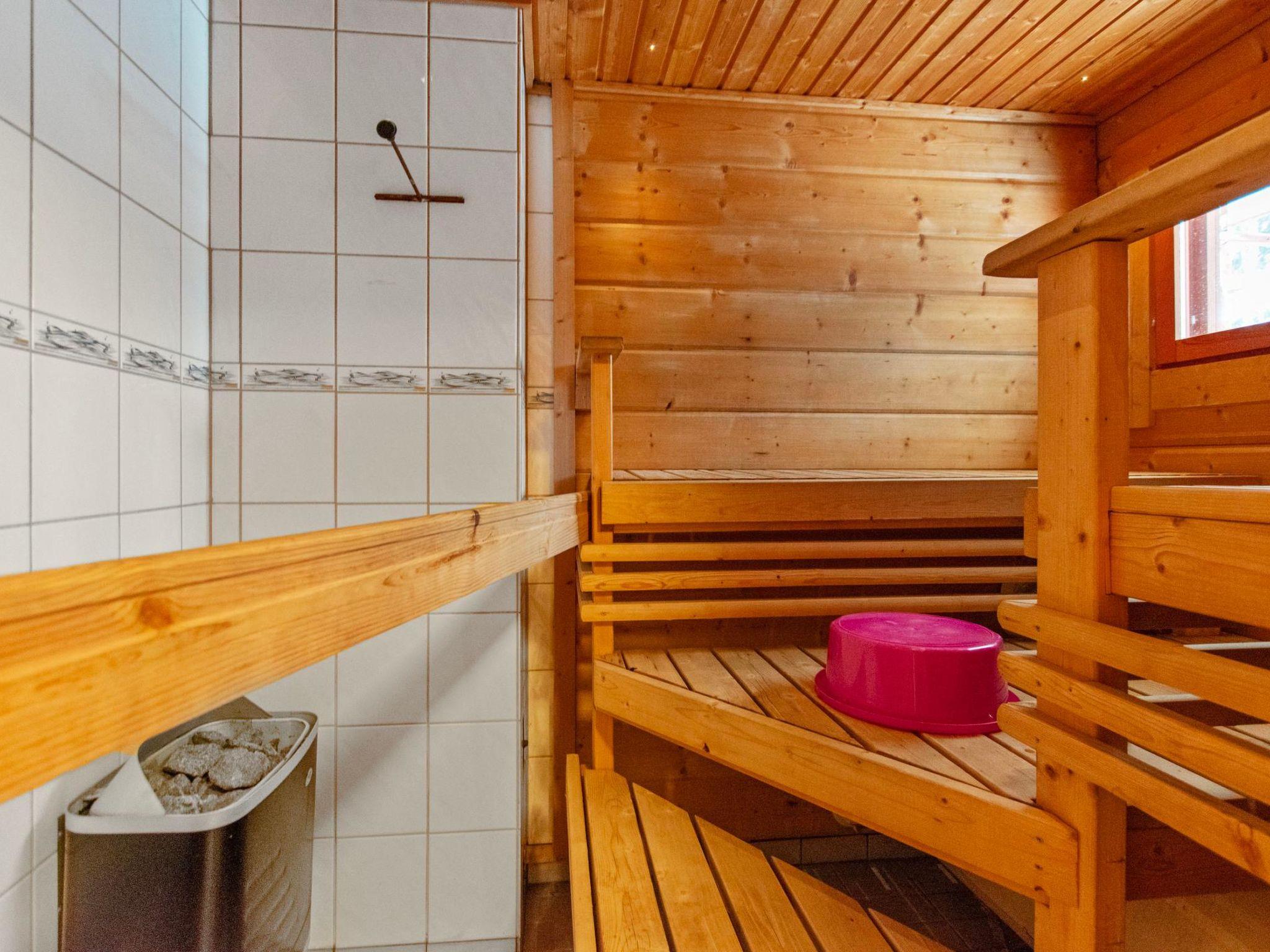 The cabin features an electric sauna, a washroom with a shower cubicle and WC, and a washing machine. A grill hut is located near the shore.