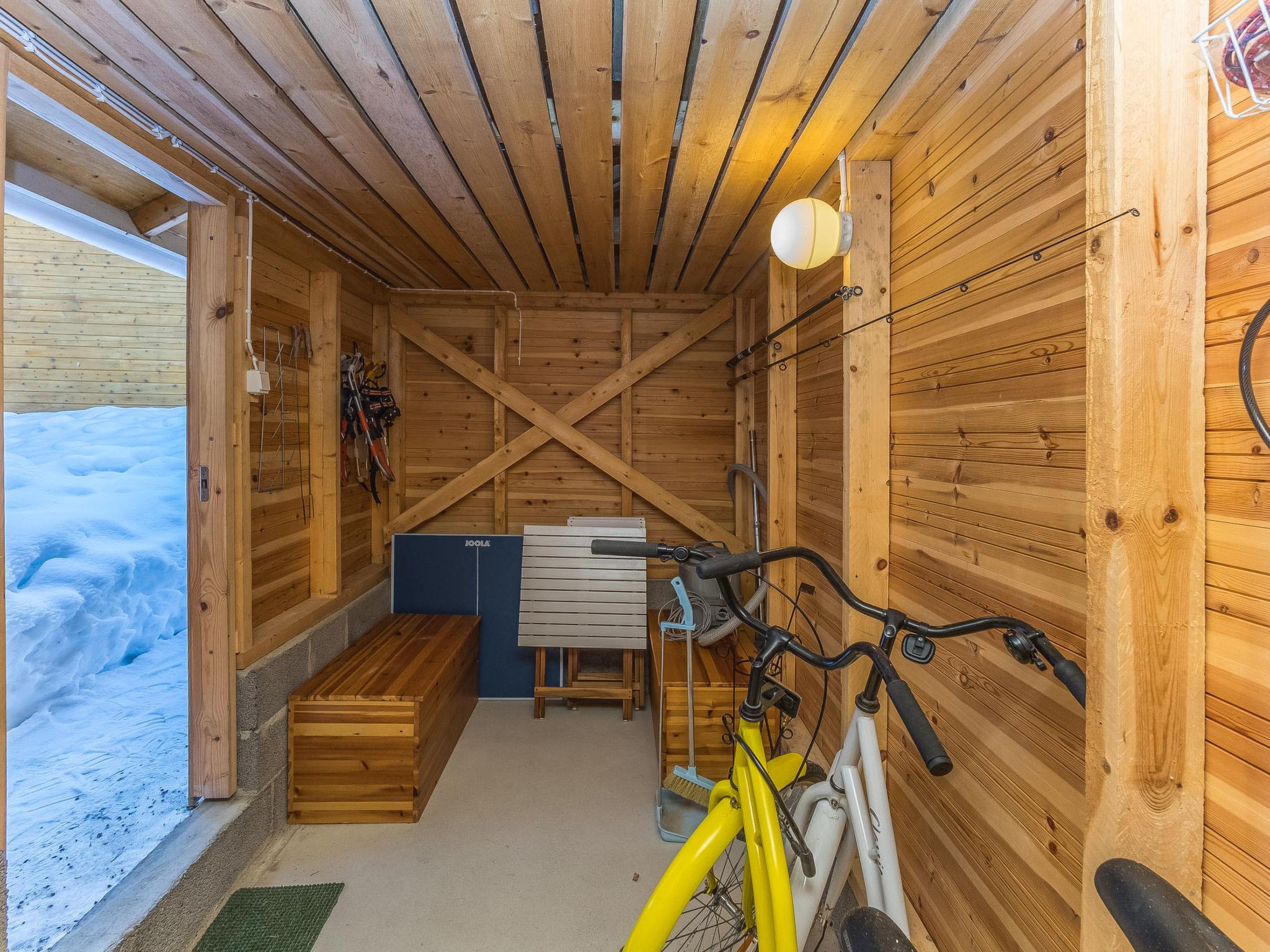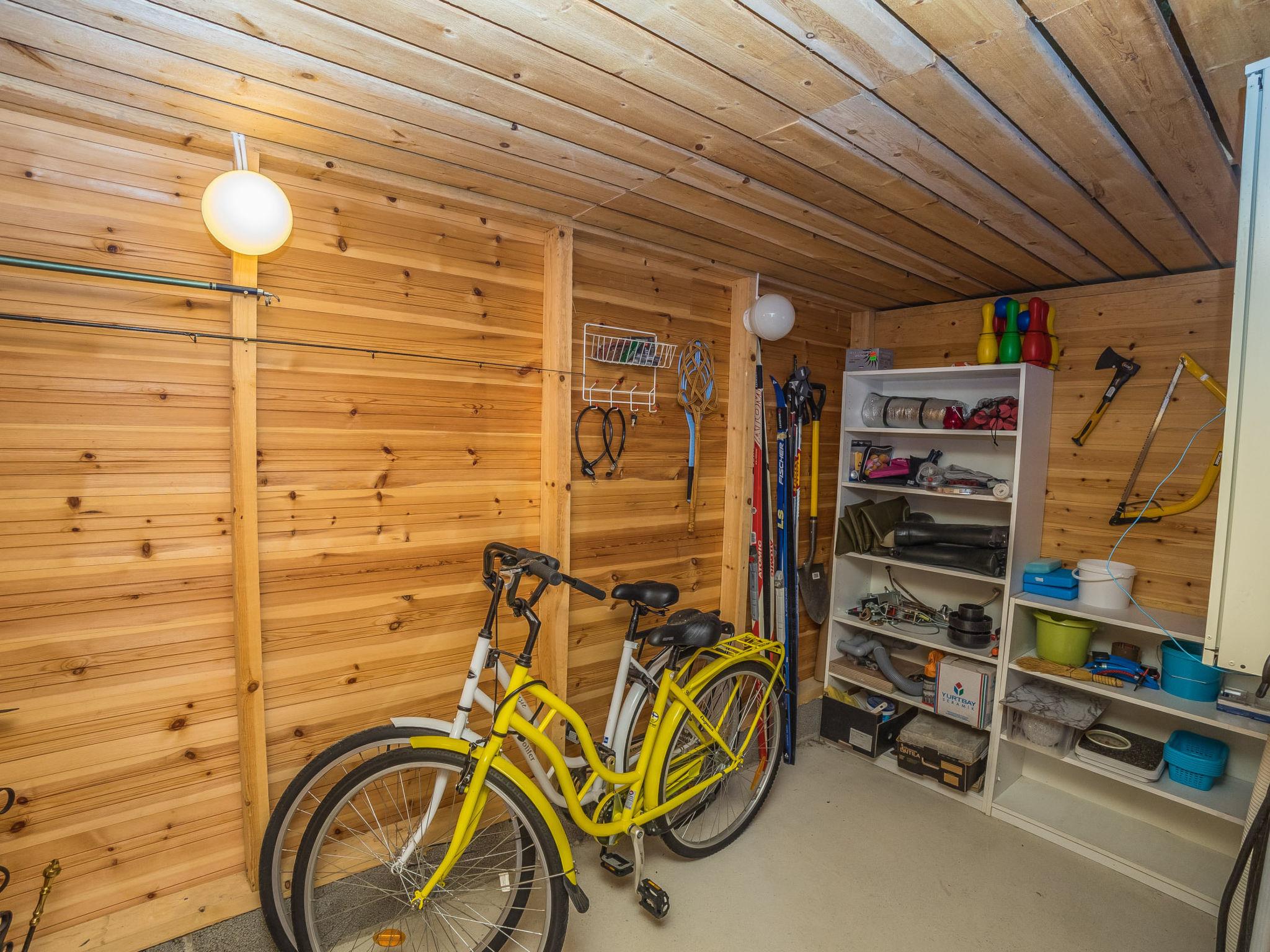 Outside, there is a carport and a storage room that holds some outdoor equipment available for guest use, such as a sled and a kick-sled (availability may vary).