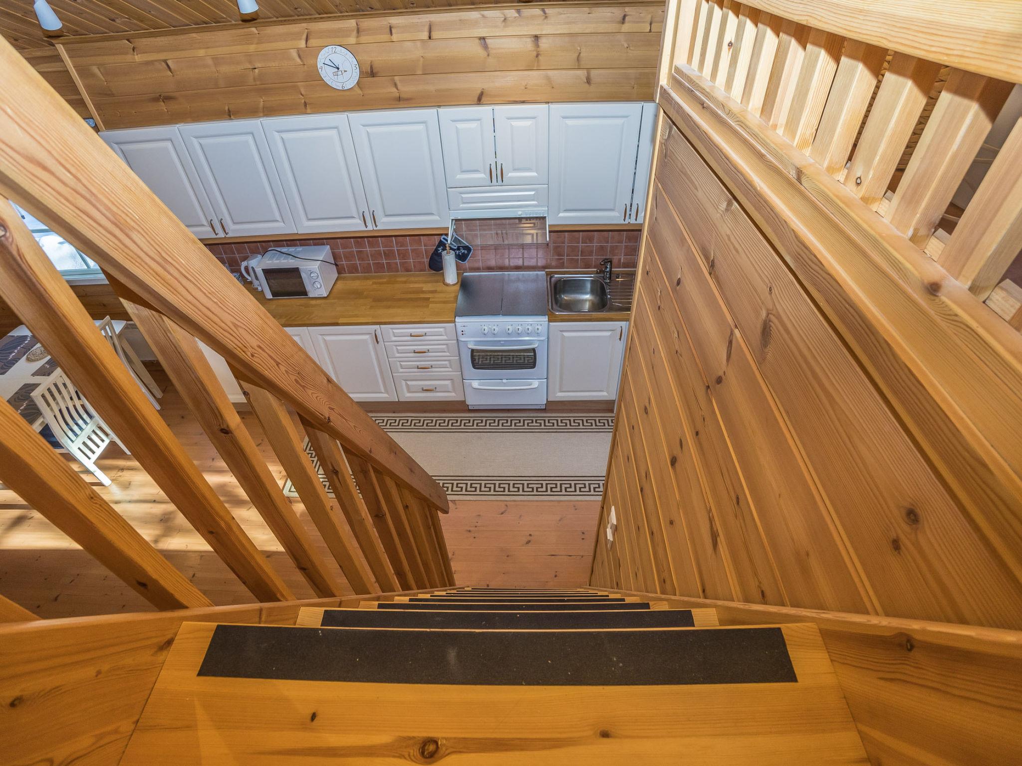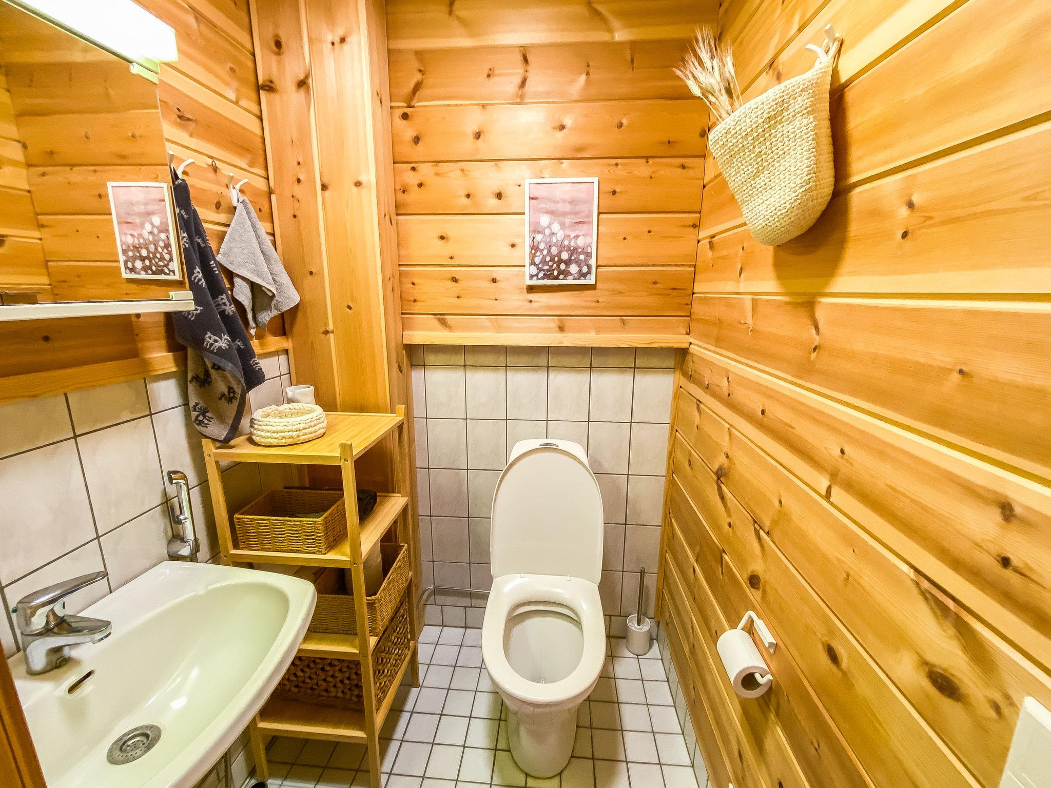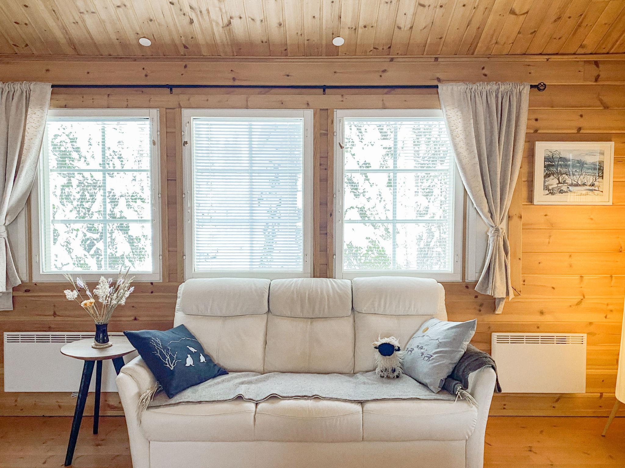 Log cabin built in 2002, located near Lake Jerisjärvi in a peaceful setting. The living area is spacious and connects to an open-plan kitchen equipped with basic cooking facilities. The cabin includes a separate indoor WC, a washroom, and a sauna. The cabin features one bedroom with a 160 cm wide double bed and a low loft with two 90 cm wide mattresses.